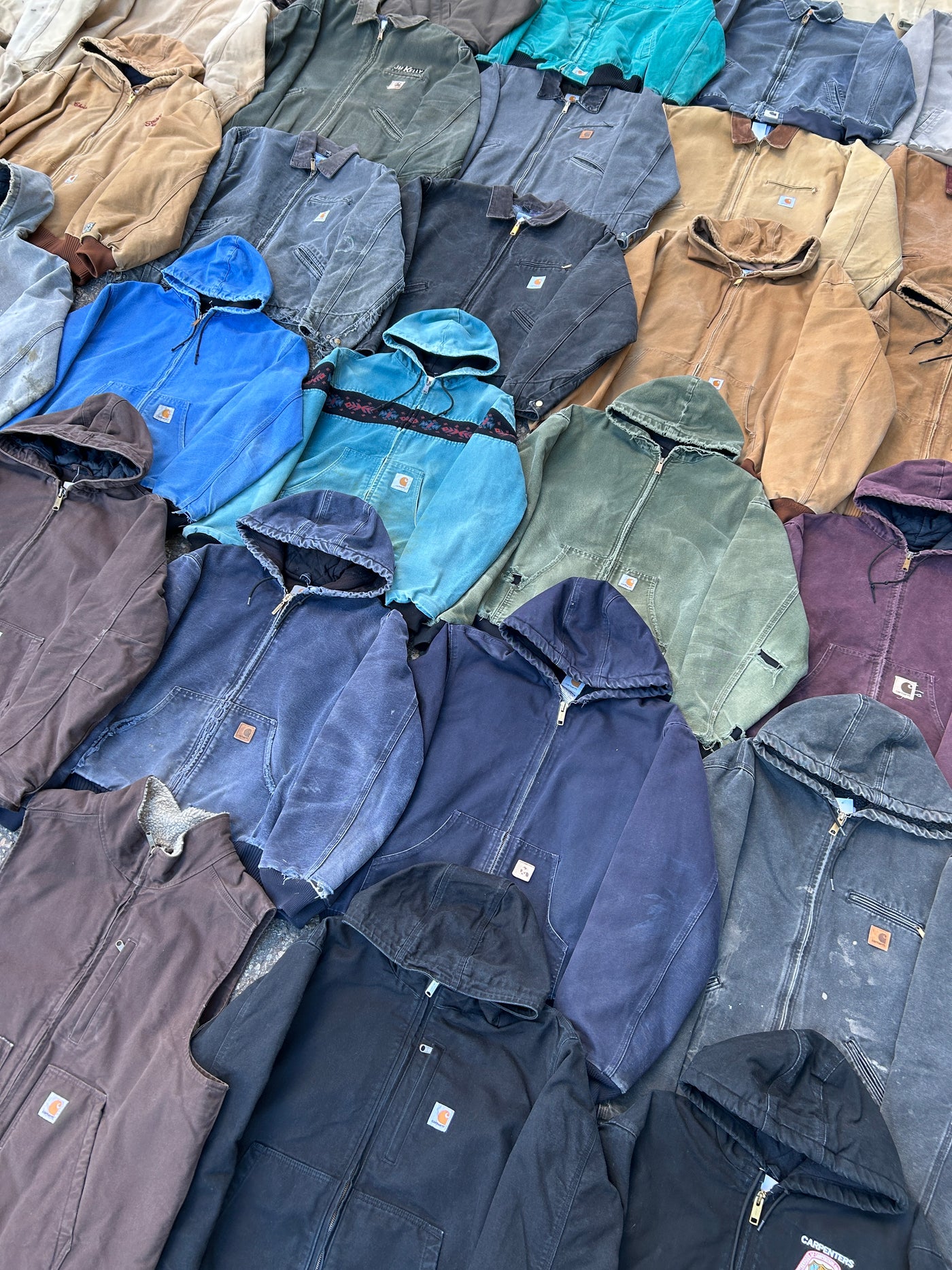 Vintage Carhartt Active Faded Navy Hooded Work Jacket J04 NVY