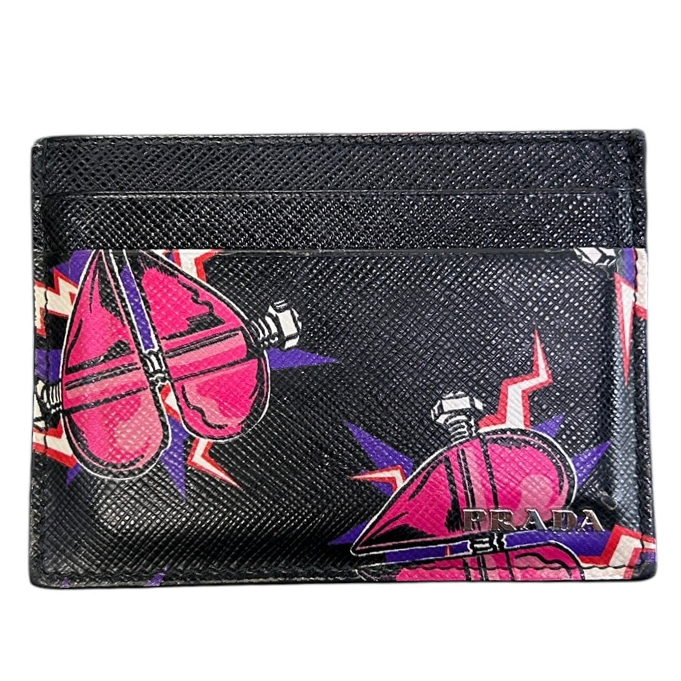 Prada Frankenstein Heats Black Saffiano Leather Card Holder