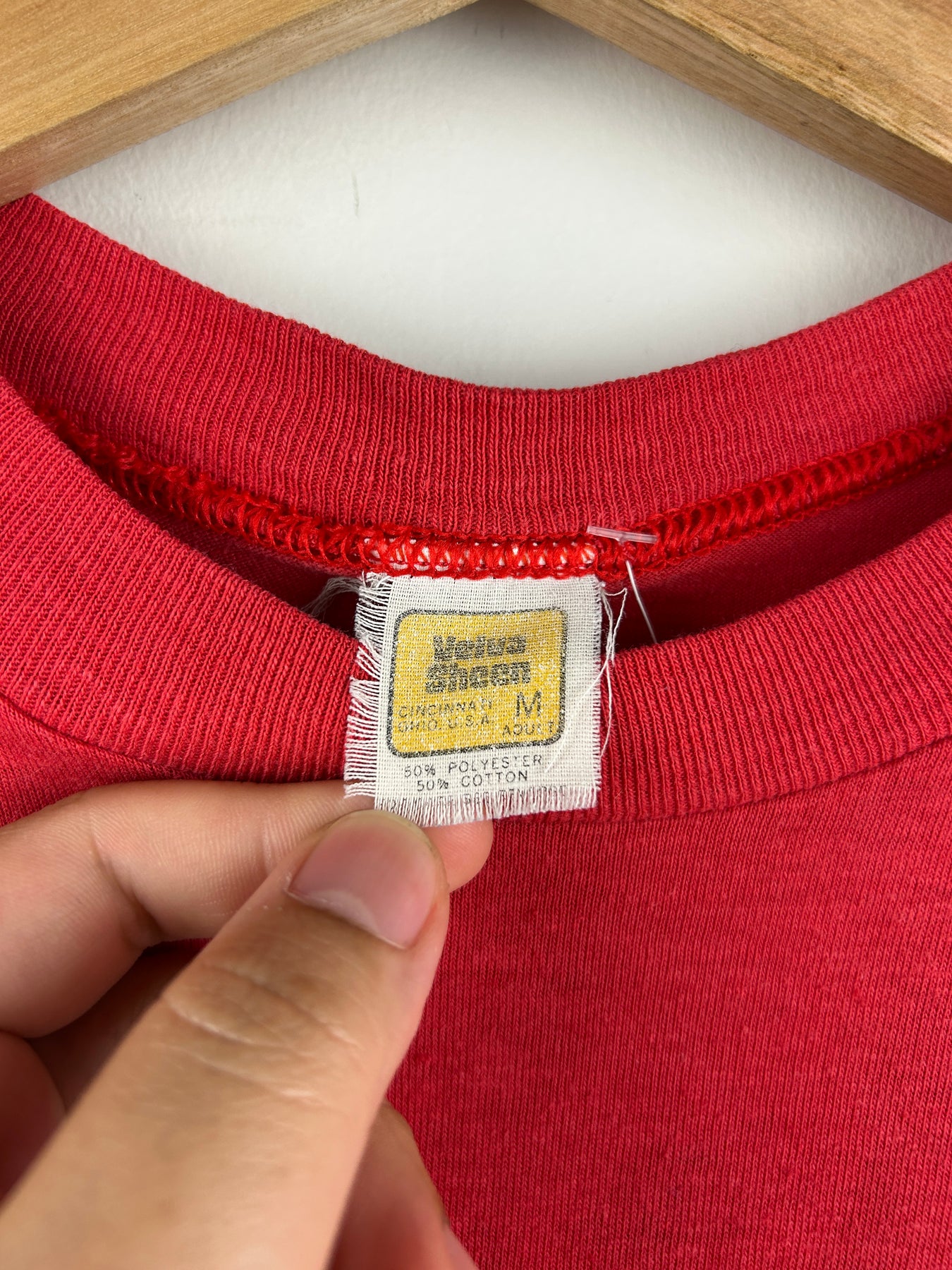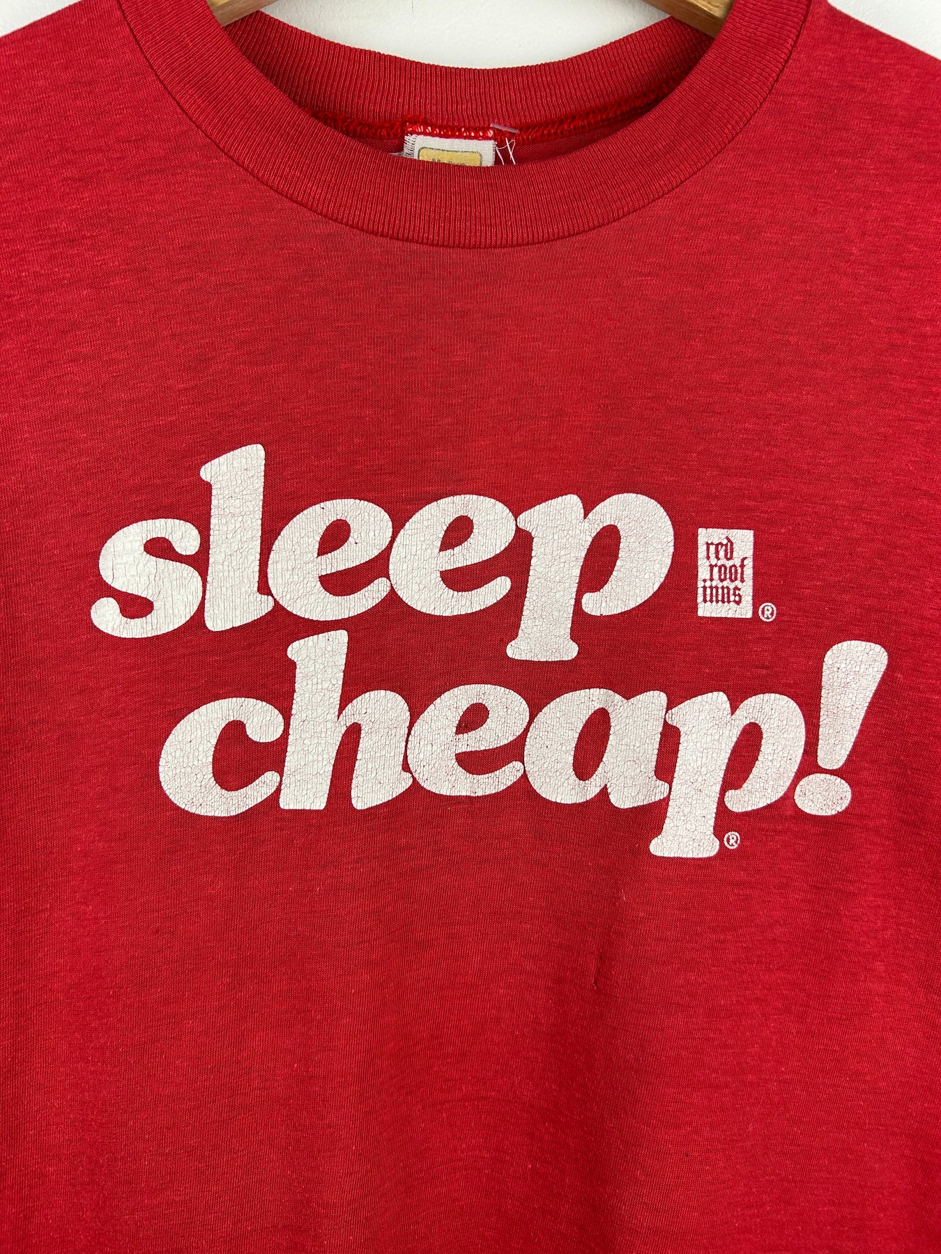 Vintage 70s Velva Sheen Red Roofs Inns Sleep Cheap Red Tee