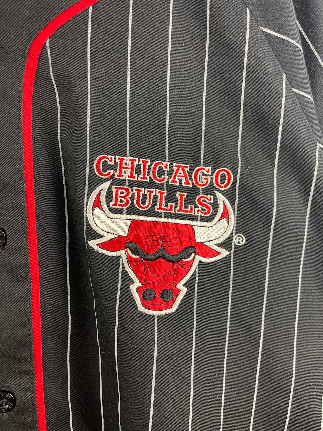 Vintage 90s NBA Starter Chicago Bulls Pinstripe Black Baseball Jersey