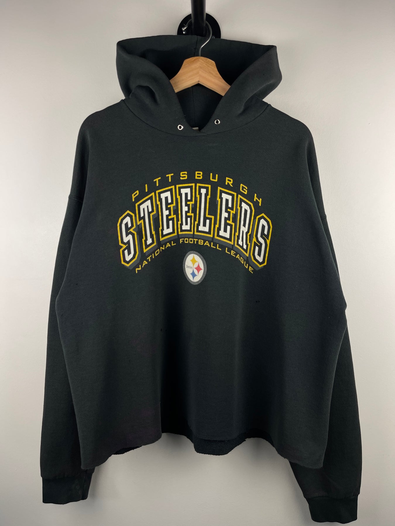 Vintage 90s NFL Pittsburgh Steelers Cropped Black Hoodie