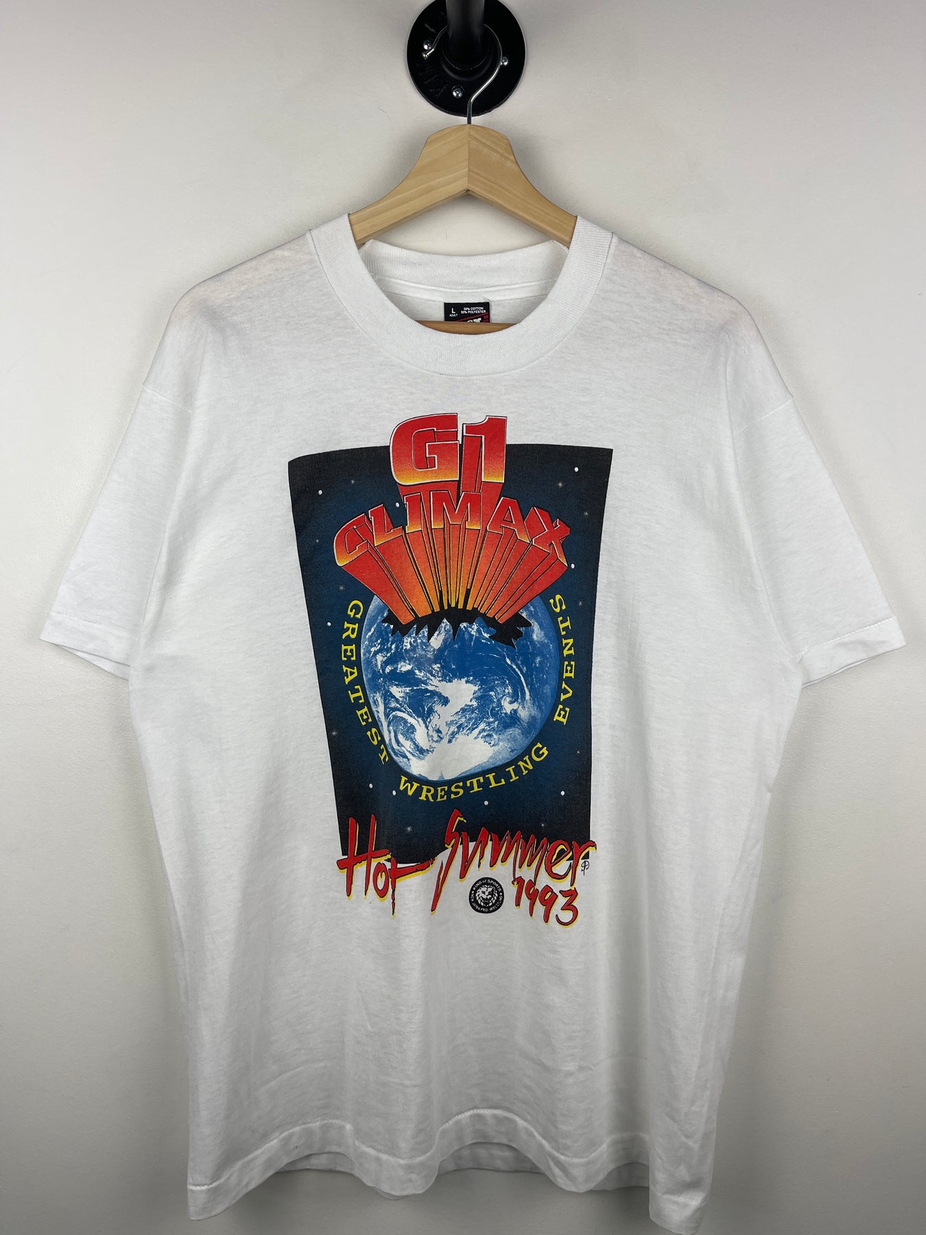 Vintage 90s NJPW G1 Climax Hot Summer Japan Wrestling White Tee