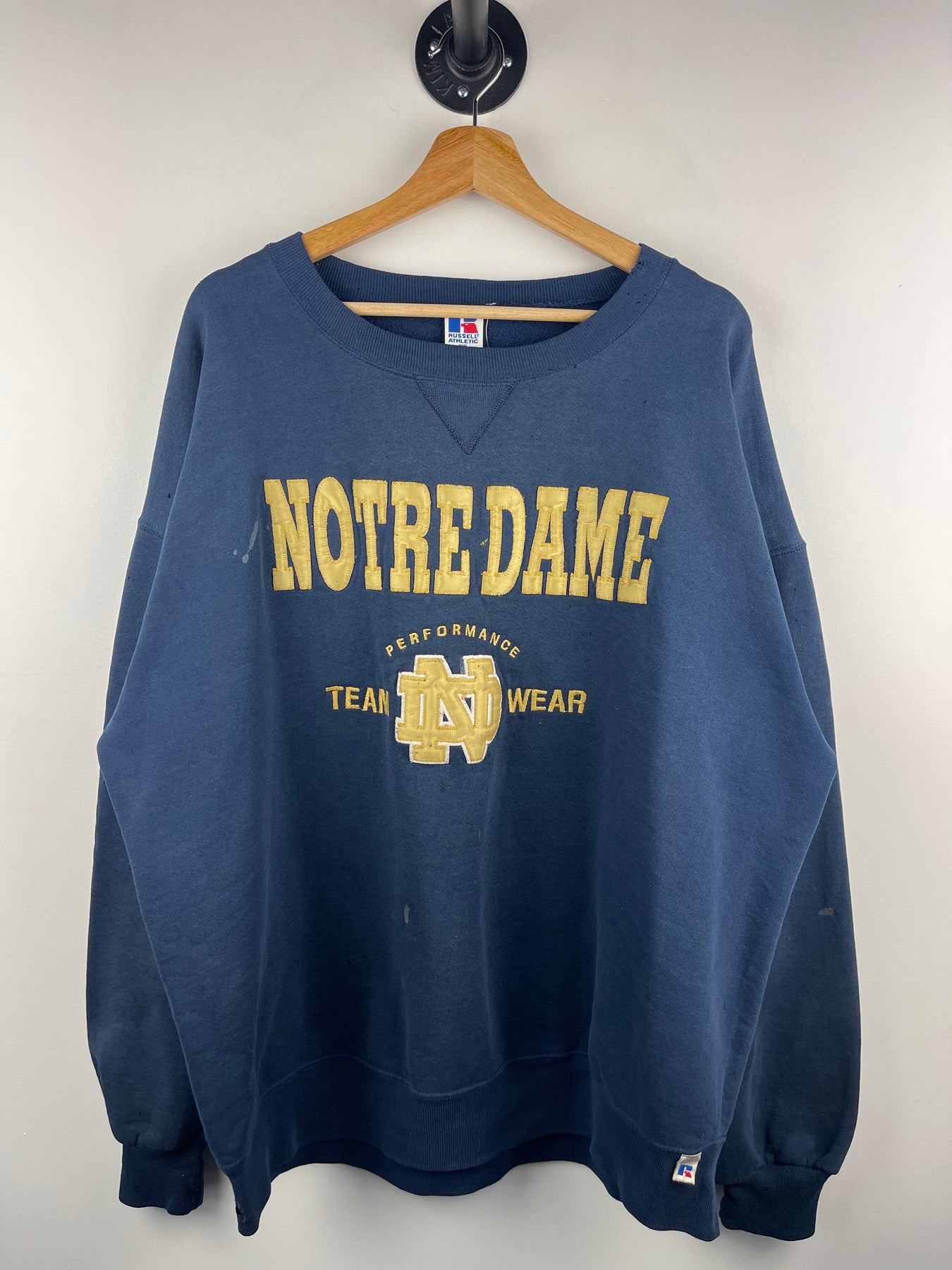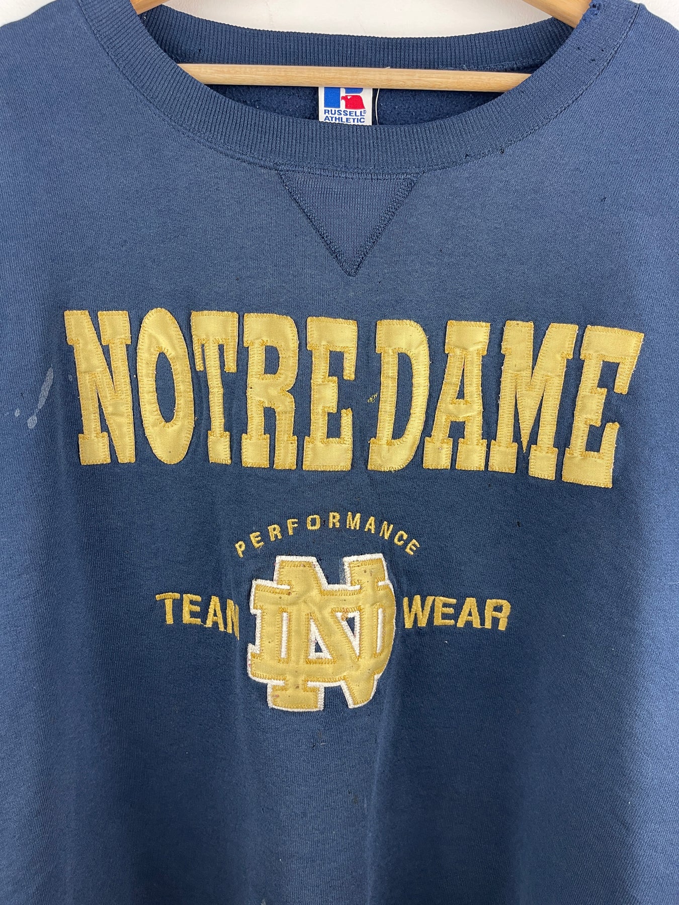 Vintage 90s Russell Athletic Notre Dame Team Wear Embroidered Navy Crewneck