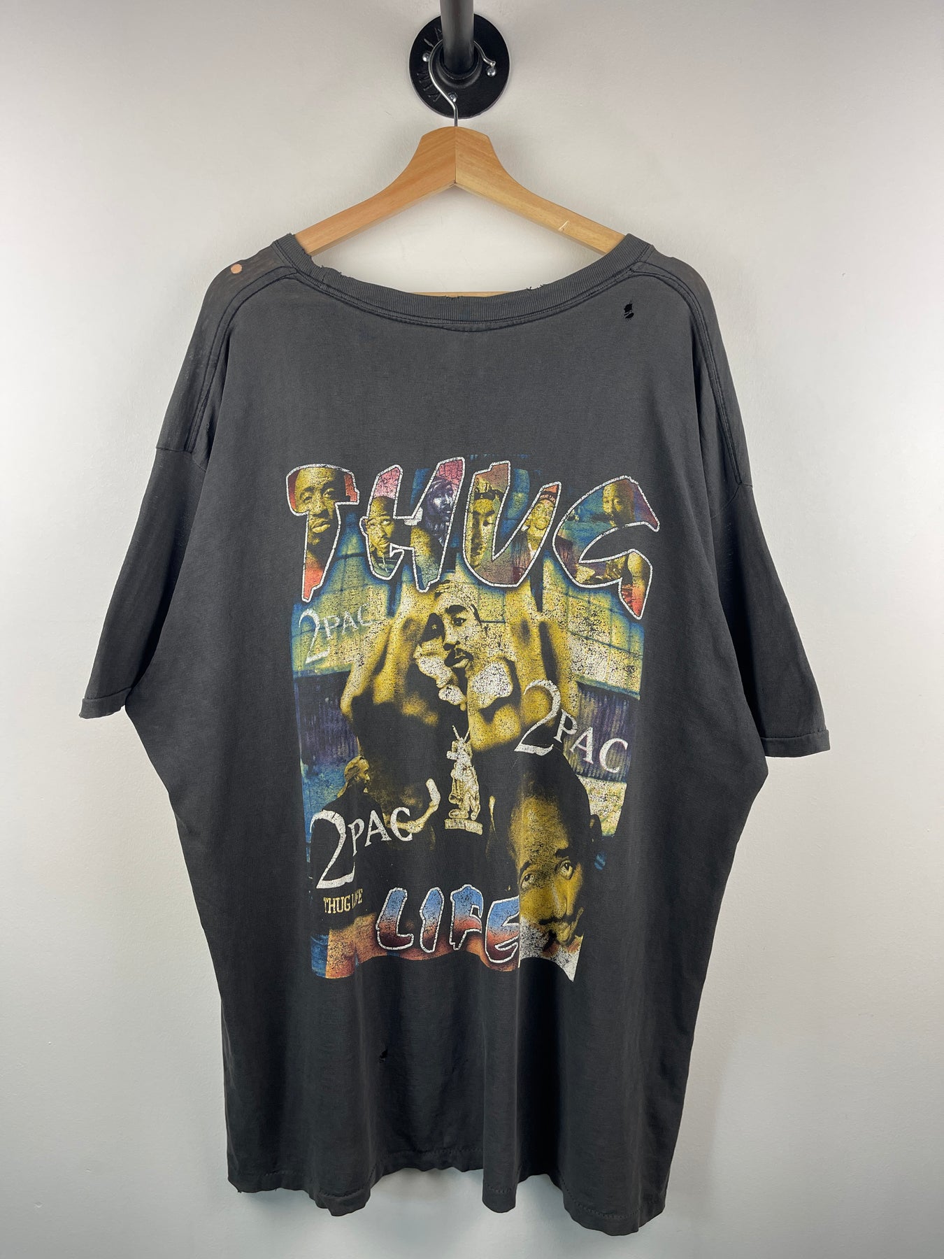 Vintage 90s Tupac Shakur 2Pac Thug Life Black Rap Tee