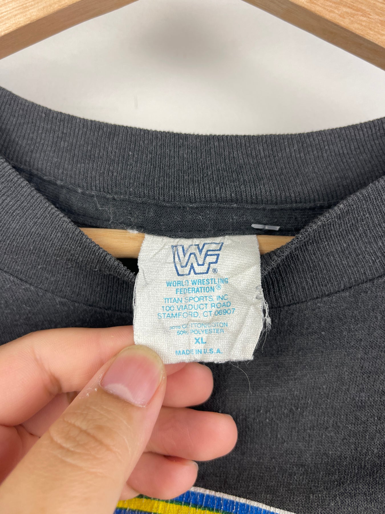 Vintage 90s WWF Hulk Hogan Wrestle Mania VII 7 Superstars And Stripes Black Tee