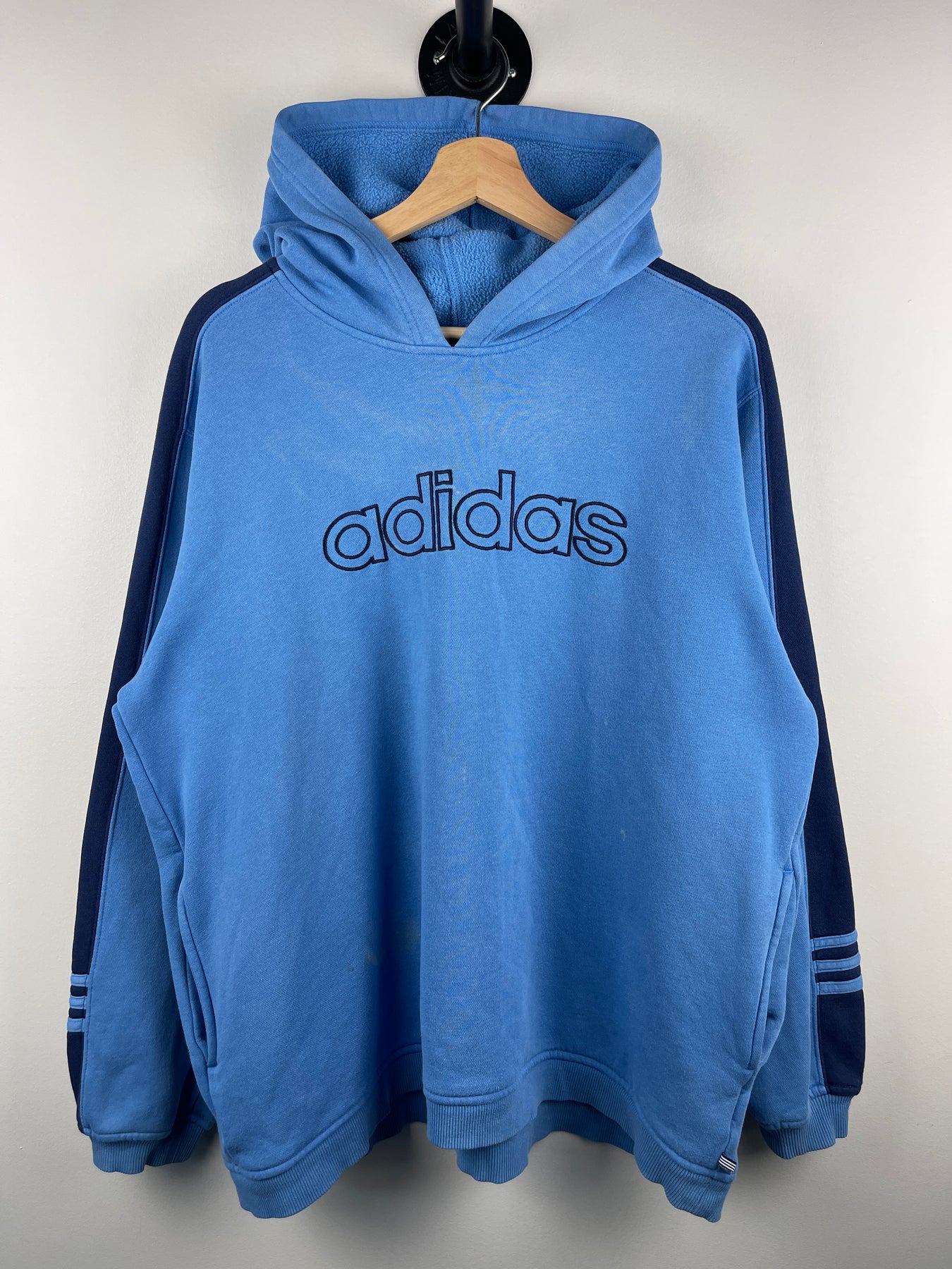 Vintage Adidas Spellout Embroidered Baby Blue Hoodie