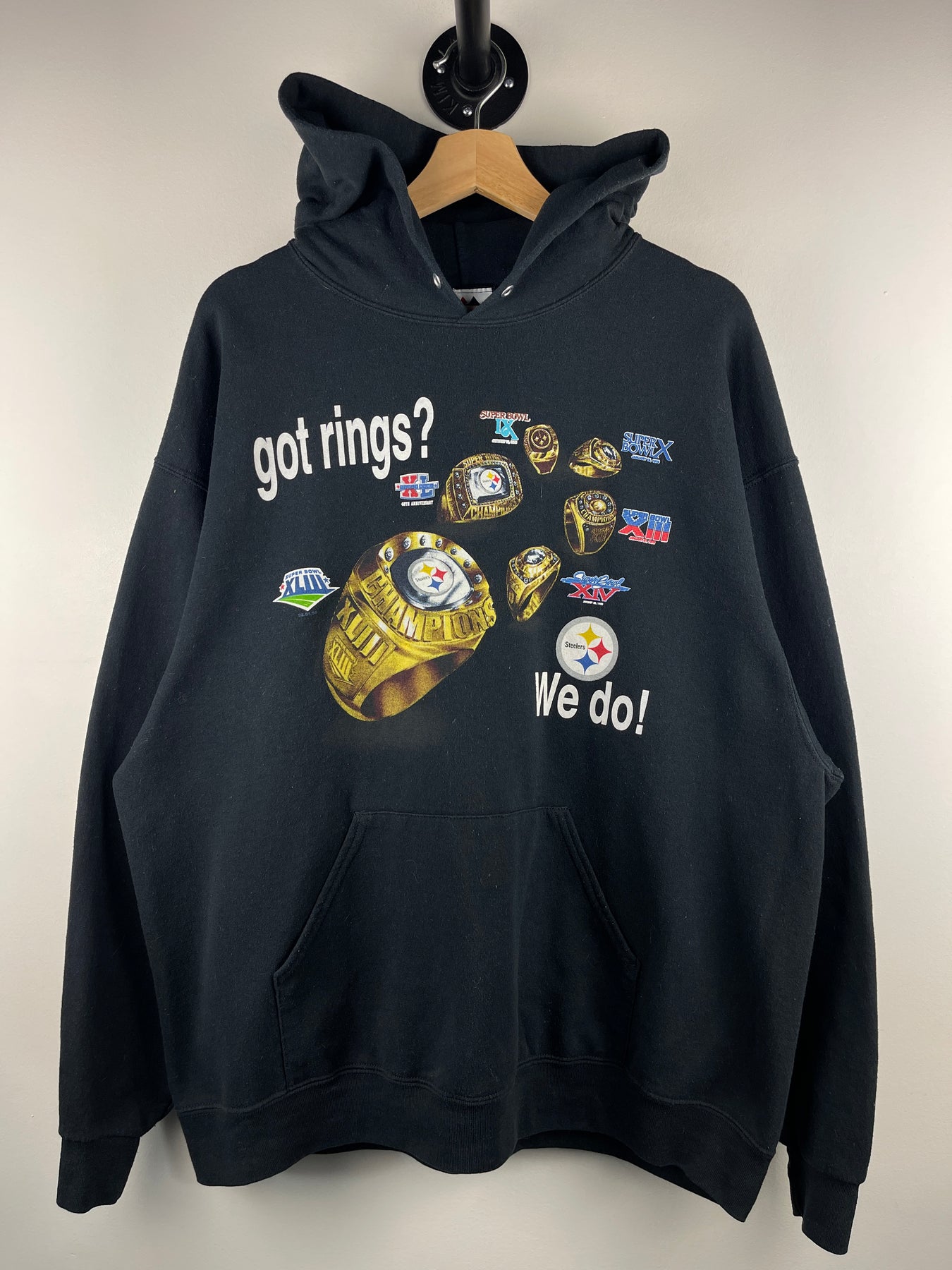 Vintage NFL Majestic Pittsburgh Steelers Rings Black Hoodie