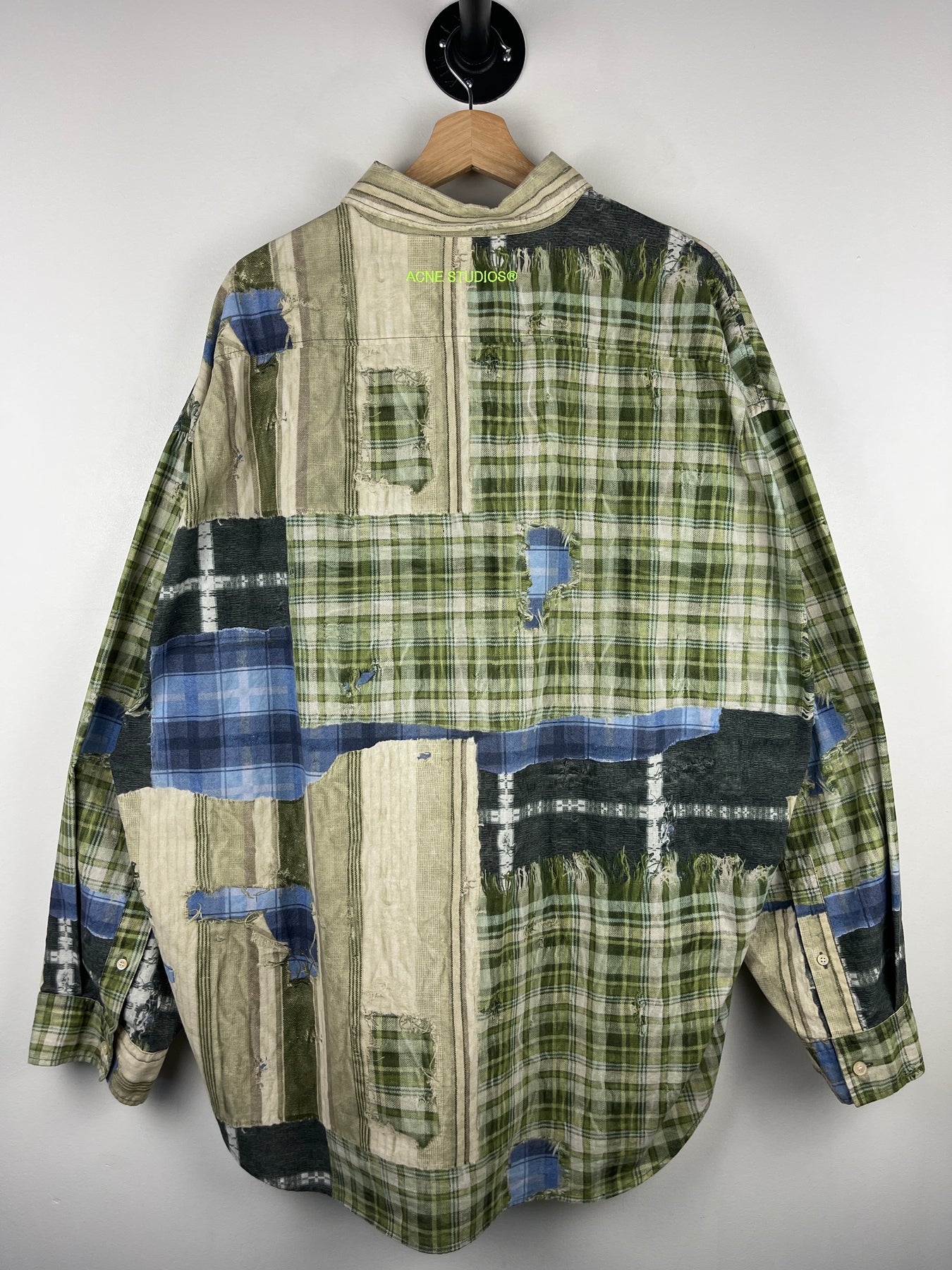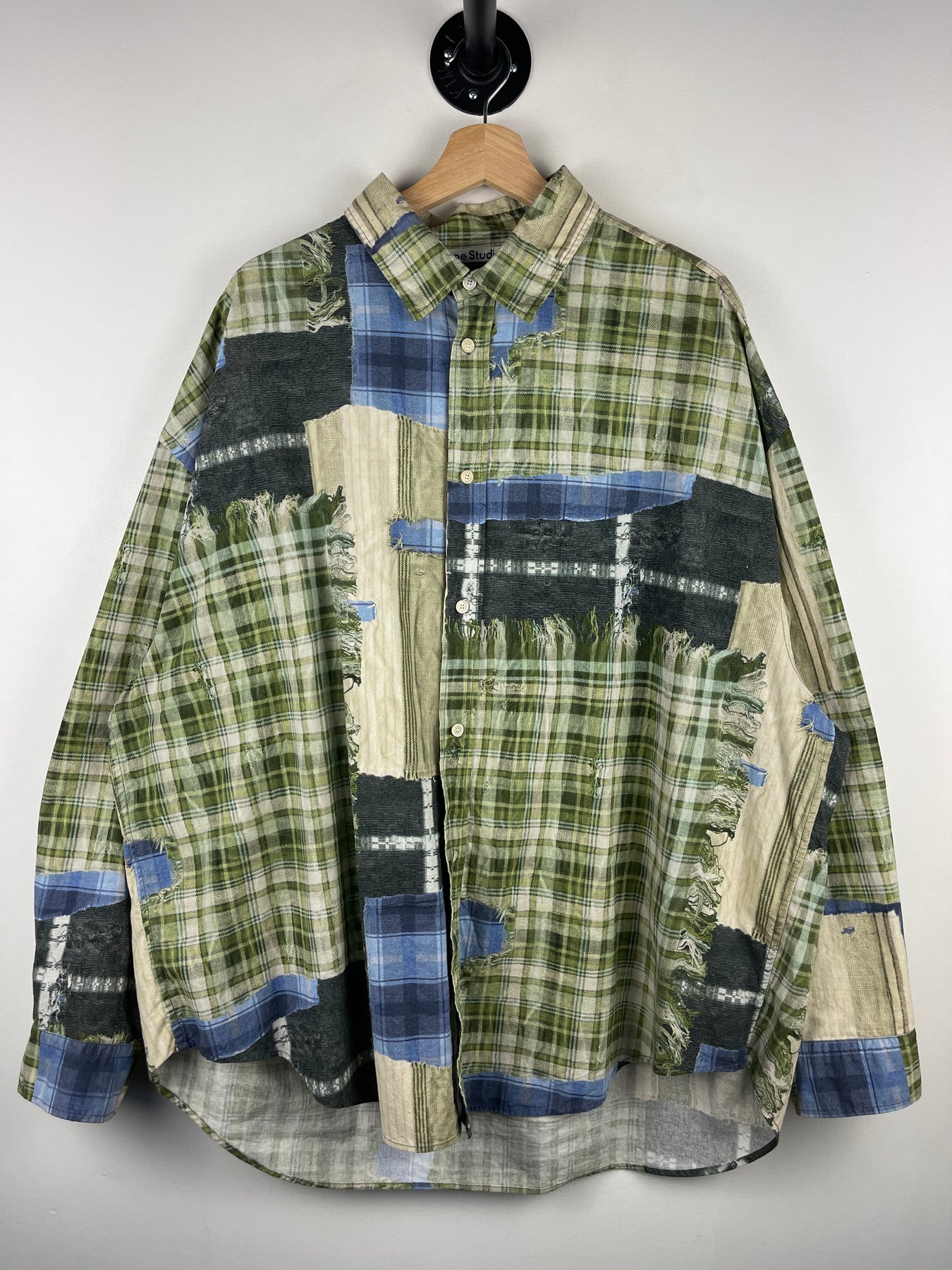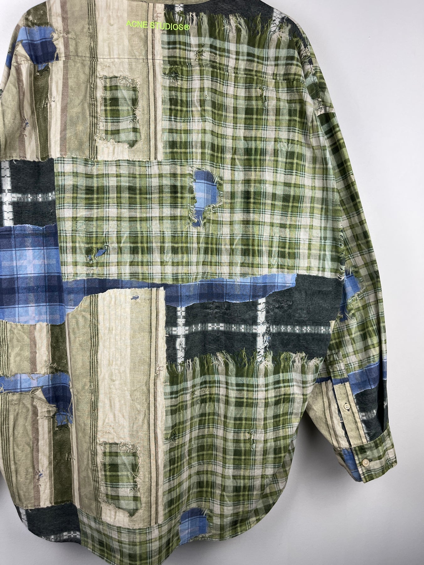 Acne Studios Patchwork Printed Green Oversized Long Sleeve Flannel