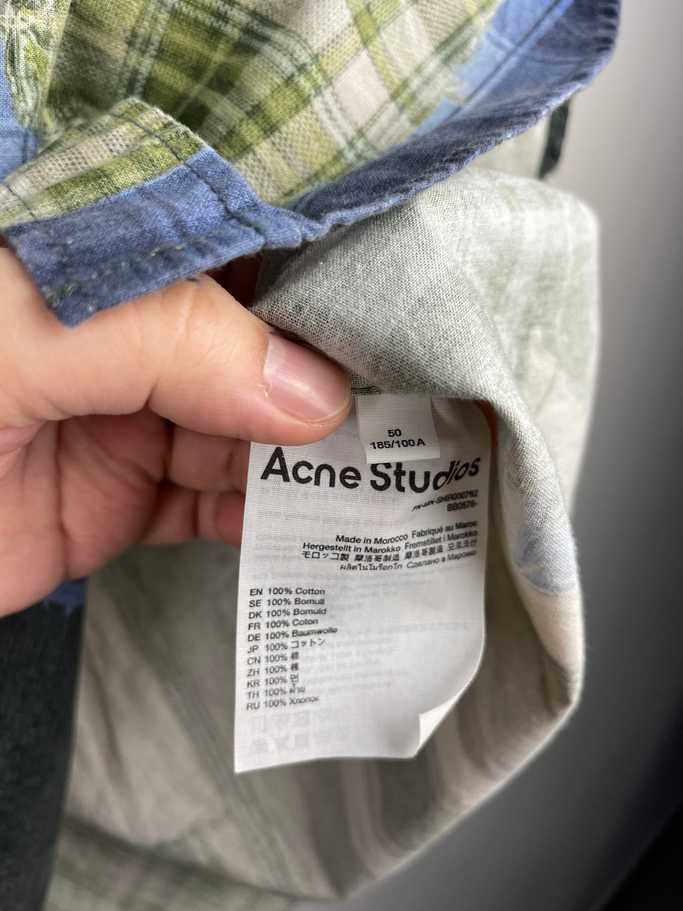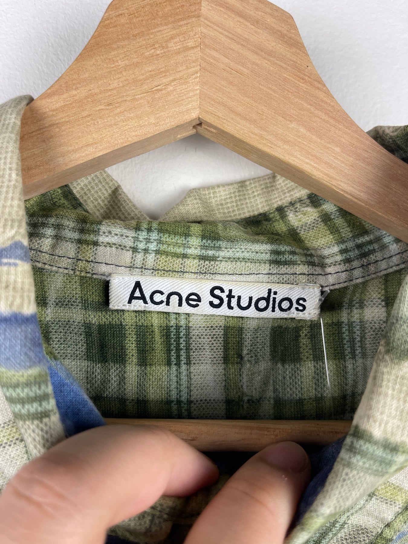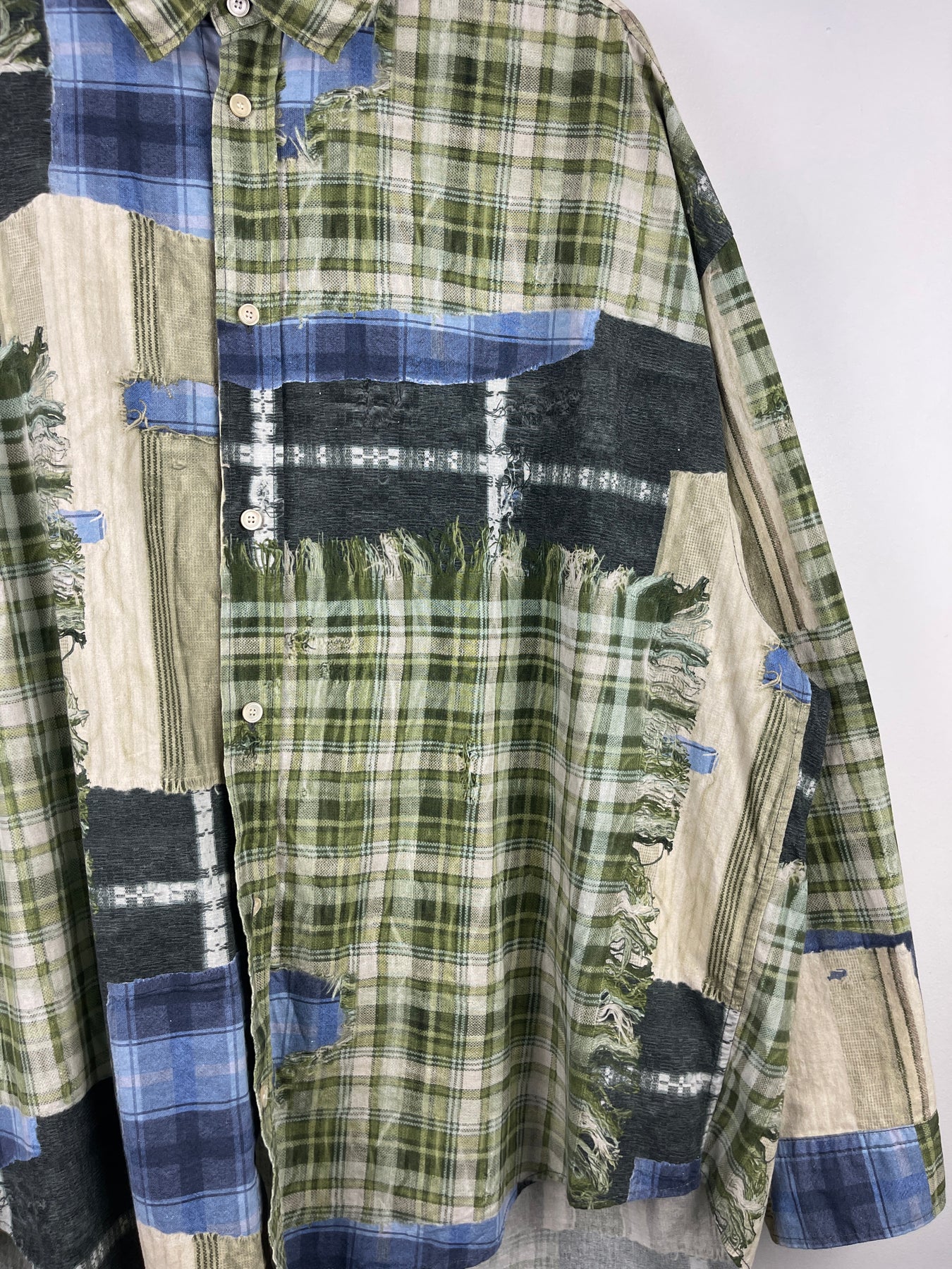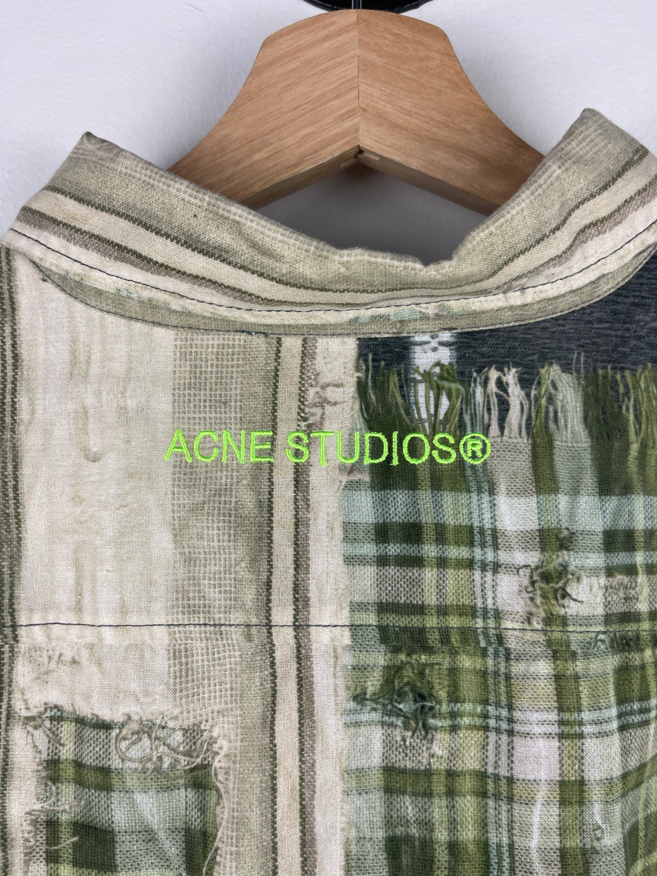 Acne Studios Patchwork Printed Green Oversized Long Sleeve Flannel