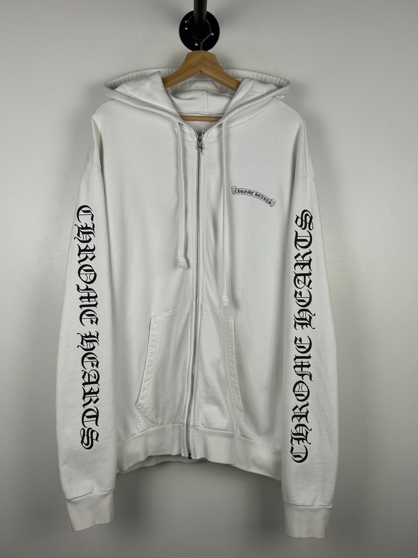 Chrome Hearts Scroll Rhodium Dagger White Zip Up Hoodie