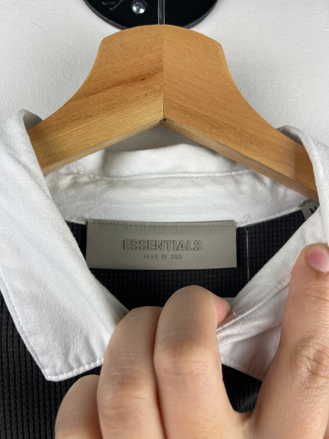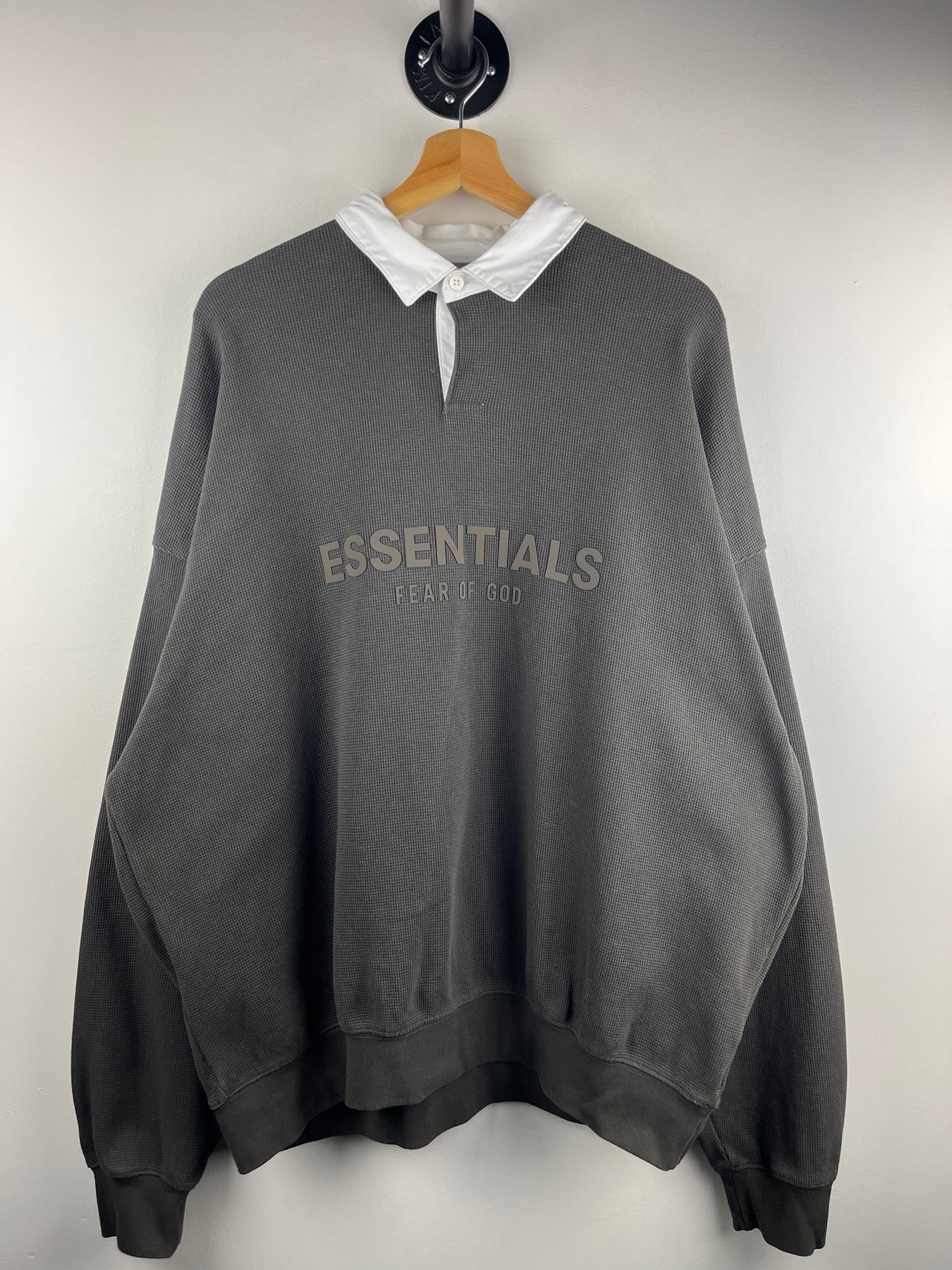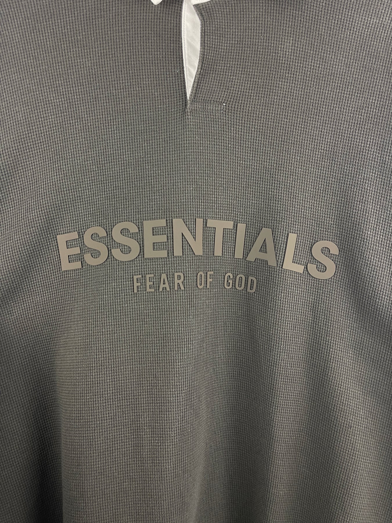 Fear Of God Essentials Off Black Waffle Henley Rugby Crewneck