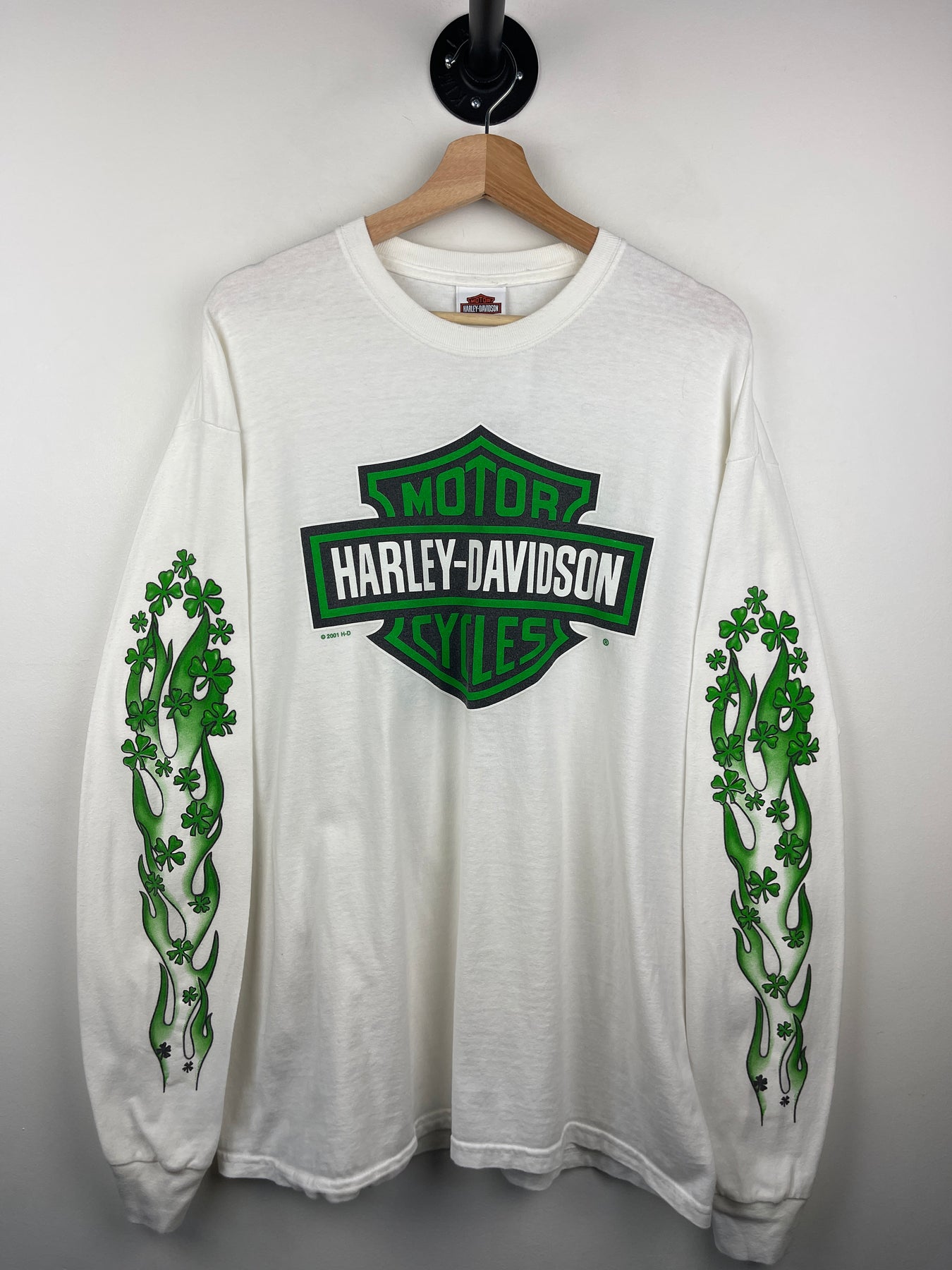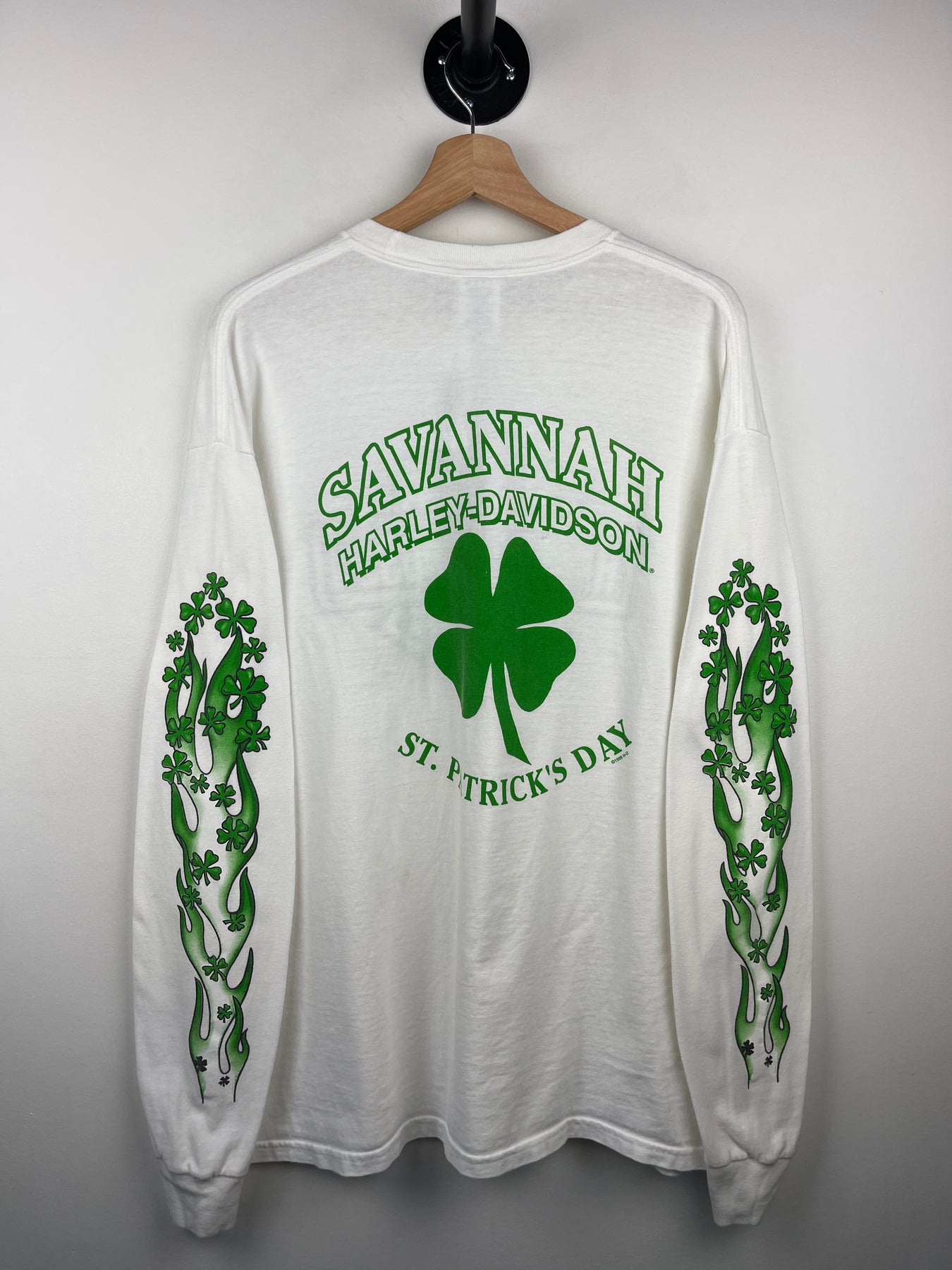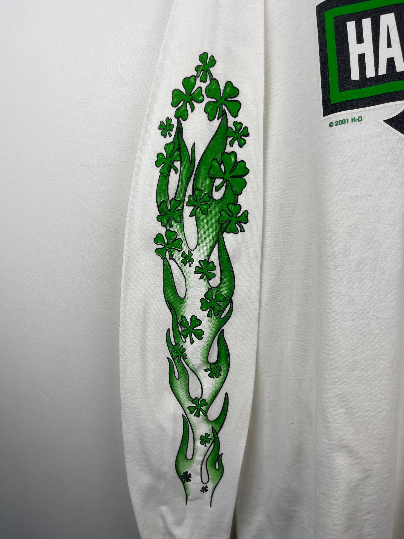 Vintage 2001 Harley Davidson Clover Flames St Patrick's Day Savannah White Long Sleeve