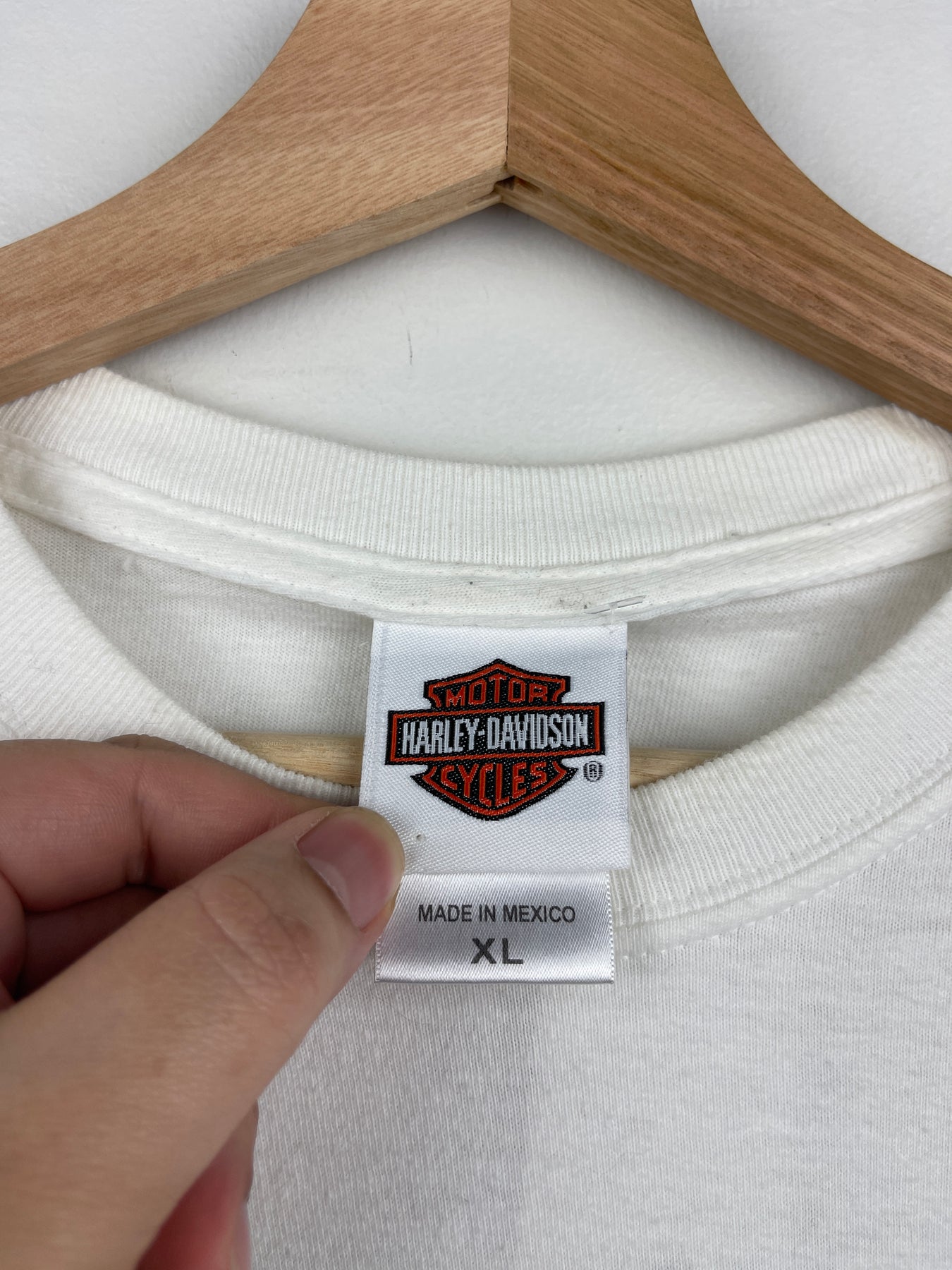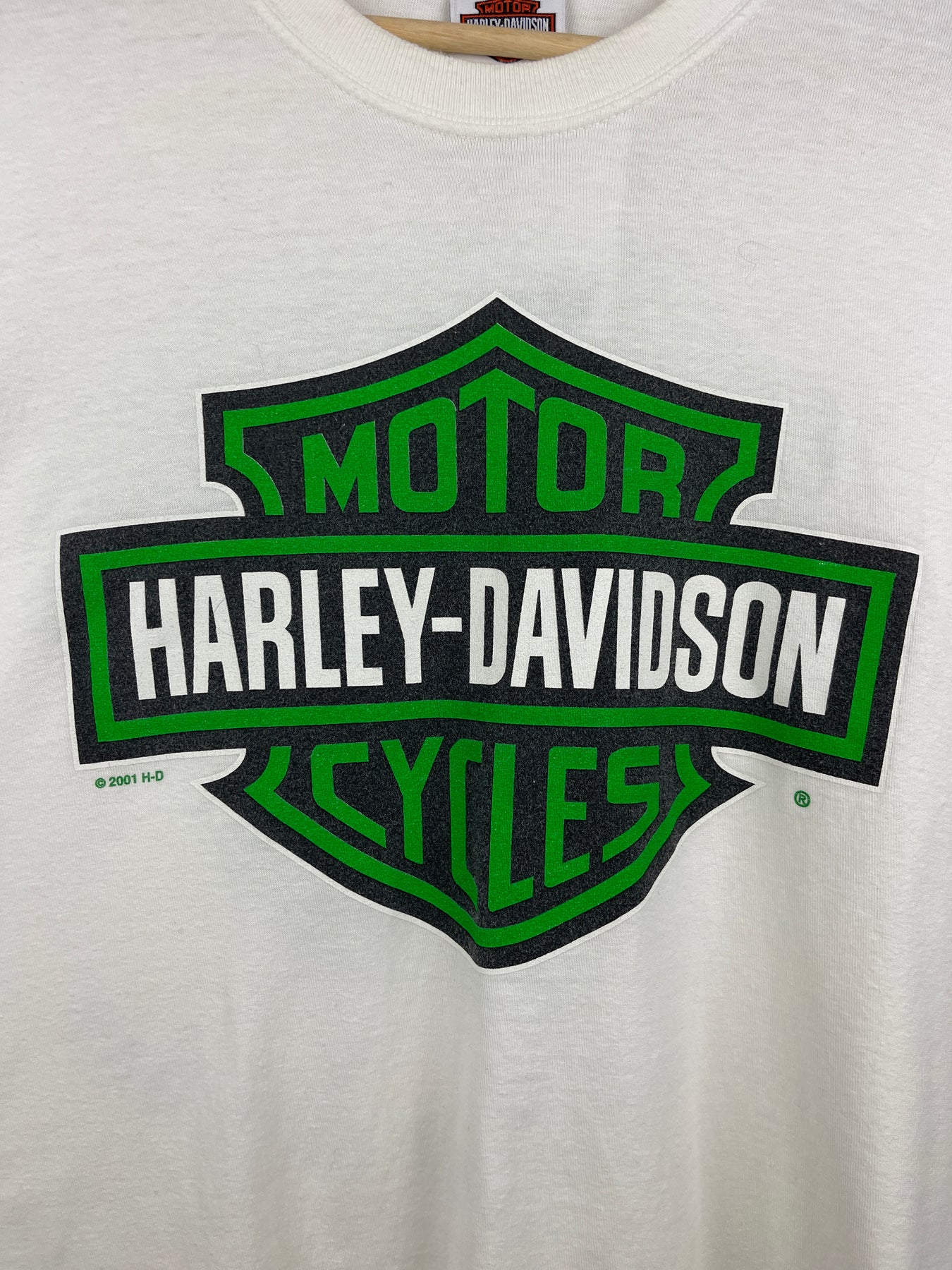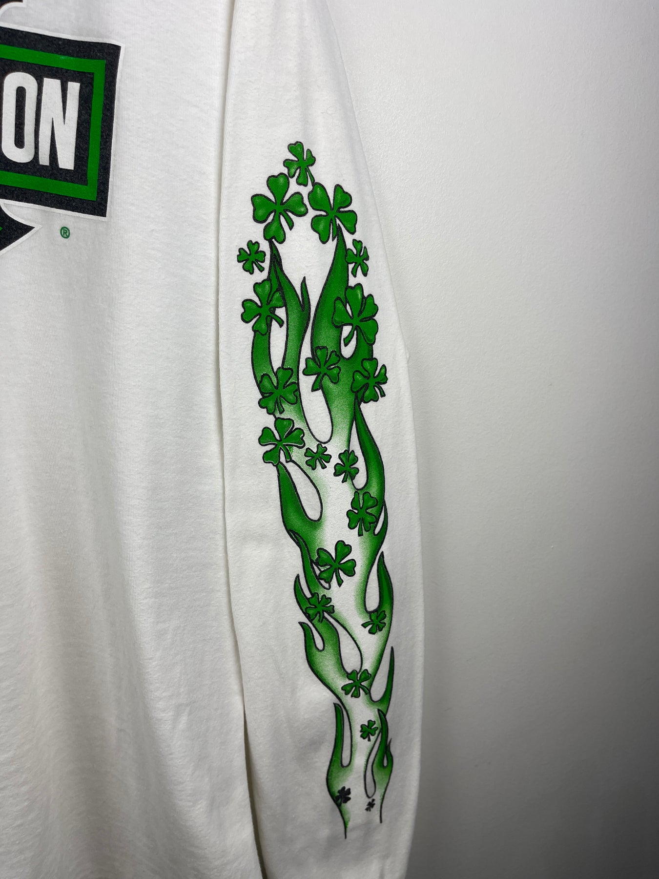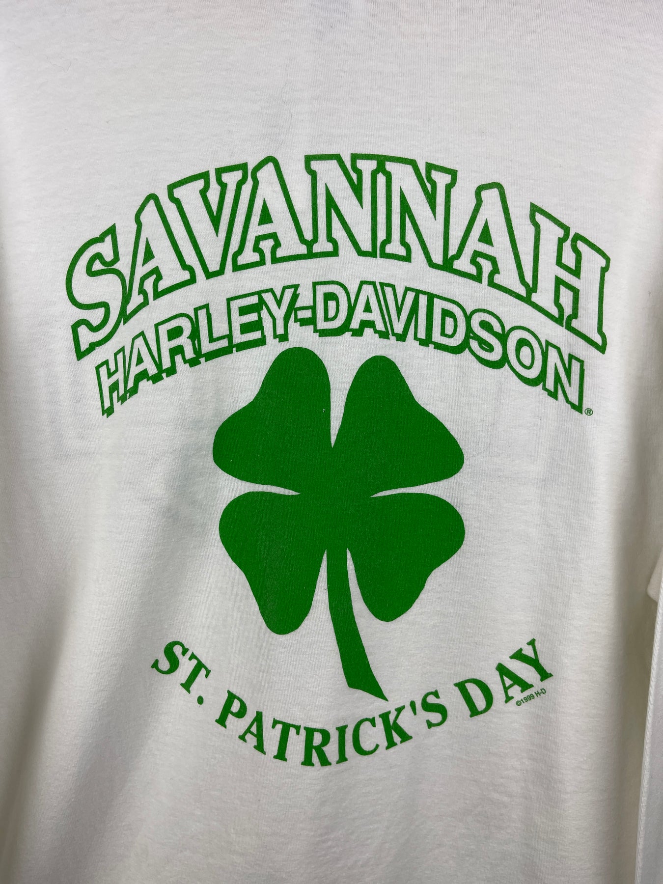 Vintage 2001 Harley Davidson Clover Flames St Patrick's Day Savannah White Long Sleeve