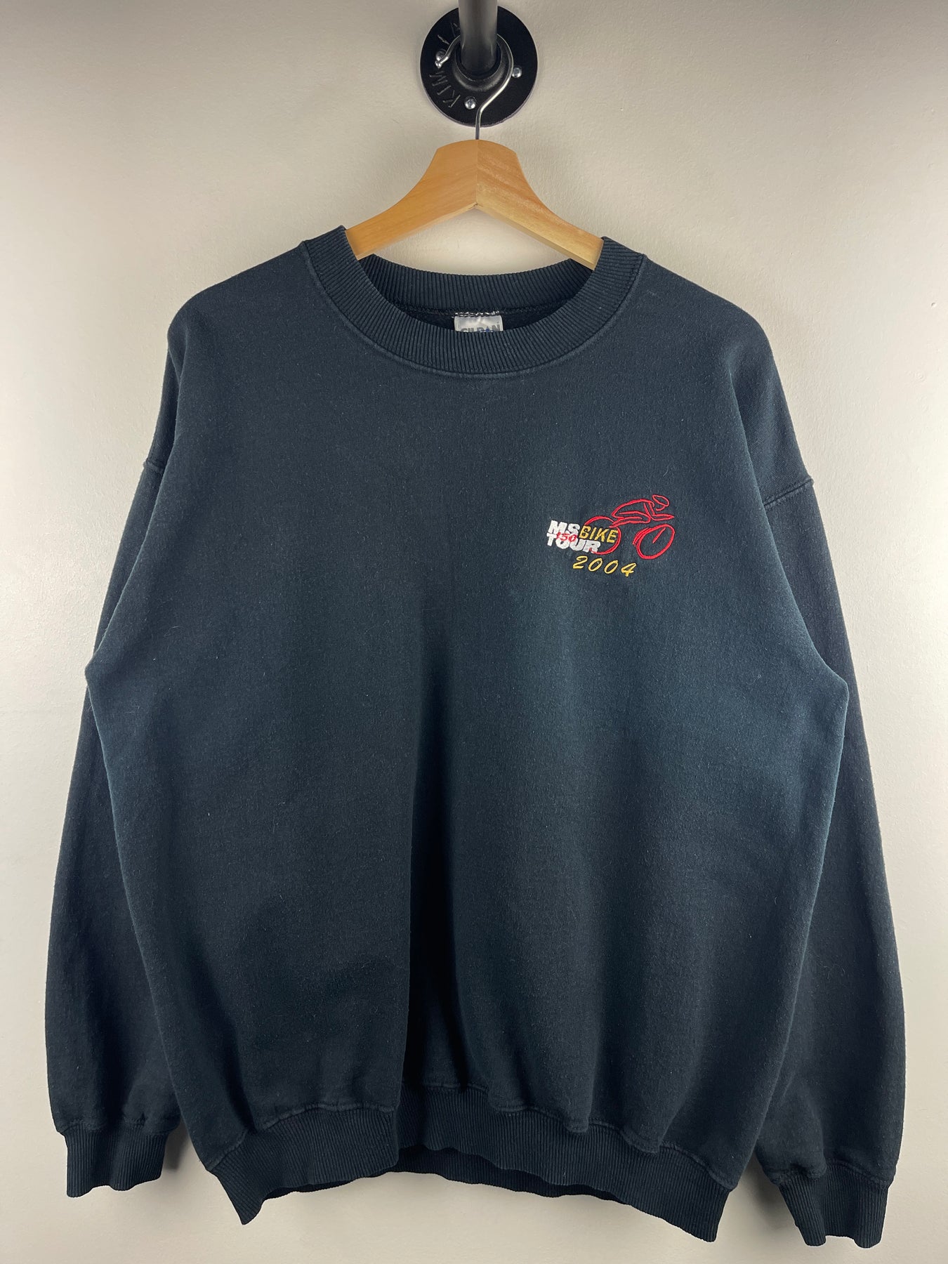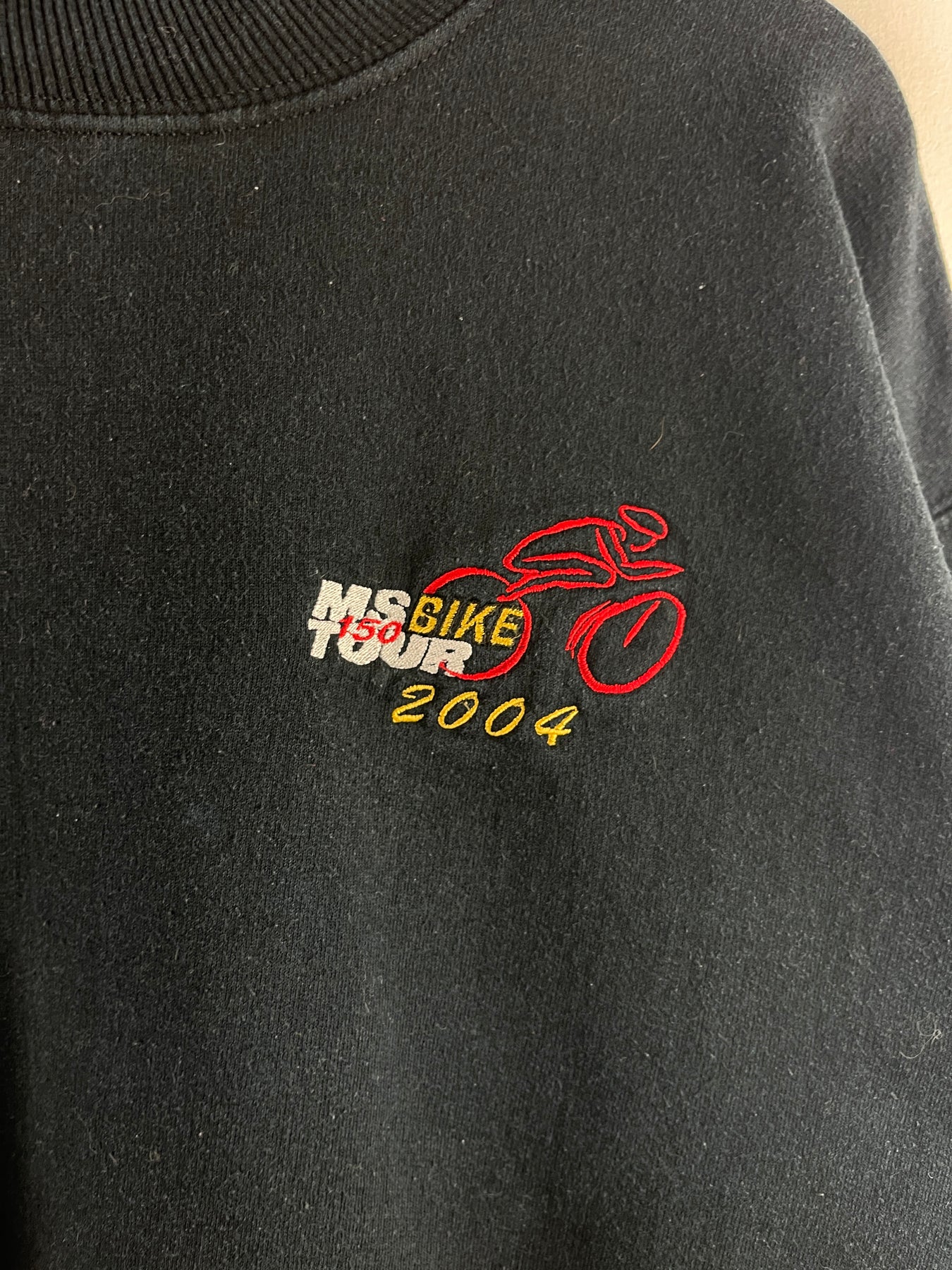 Vintage 2004 MS Bike Tour Cycling Embroidered Black Crewneck