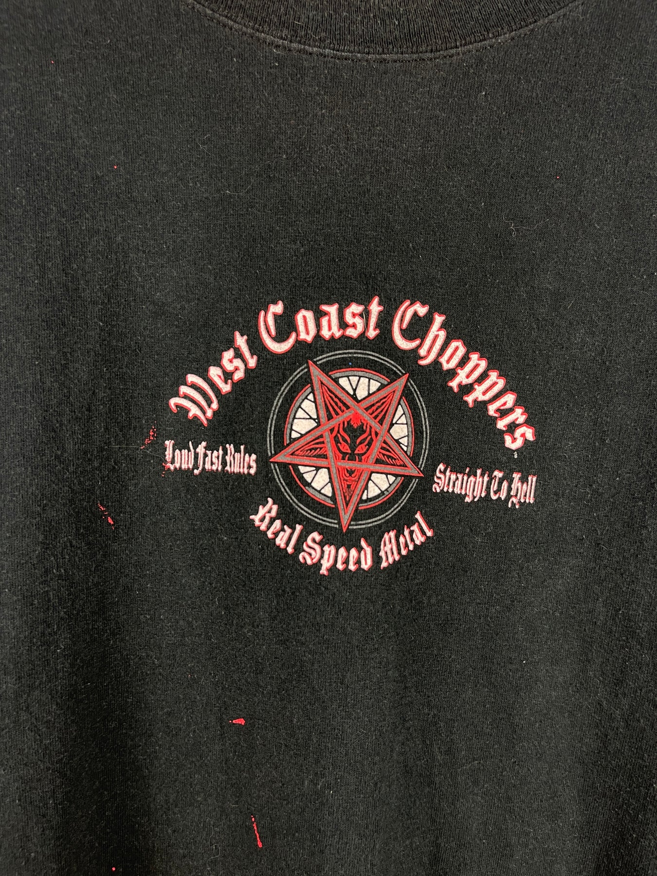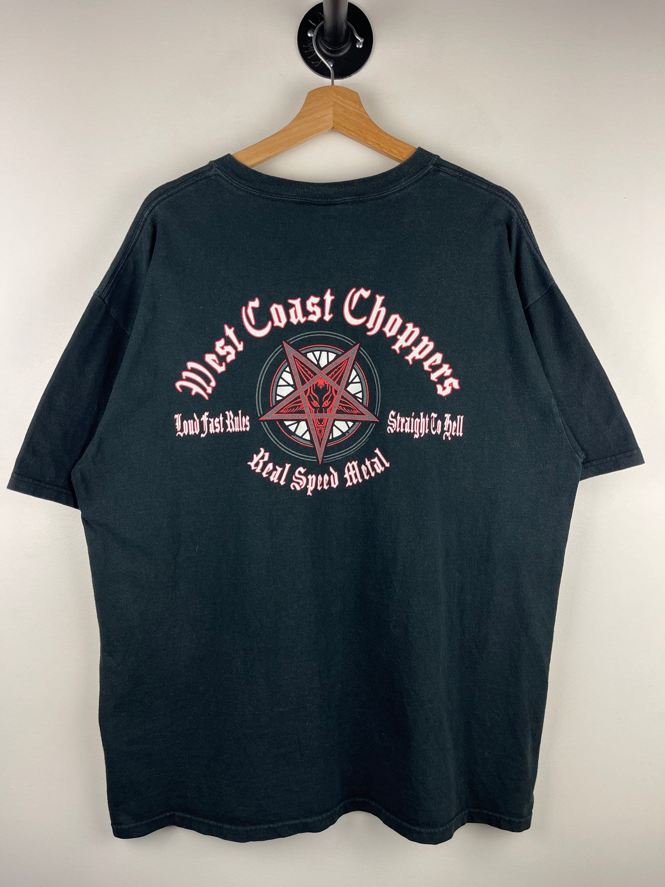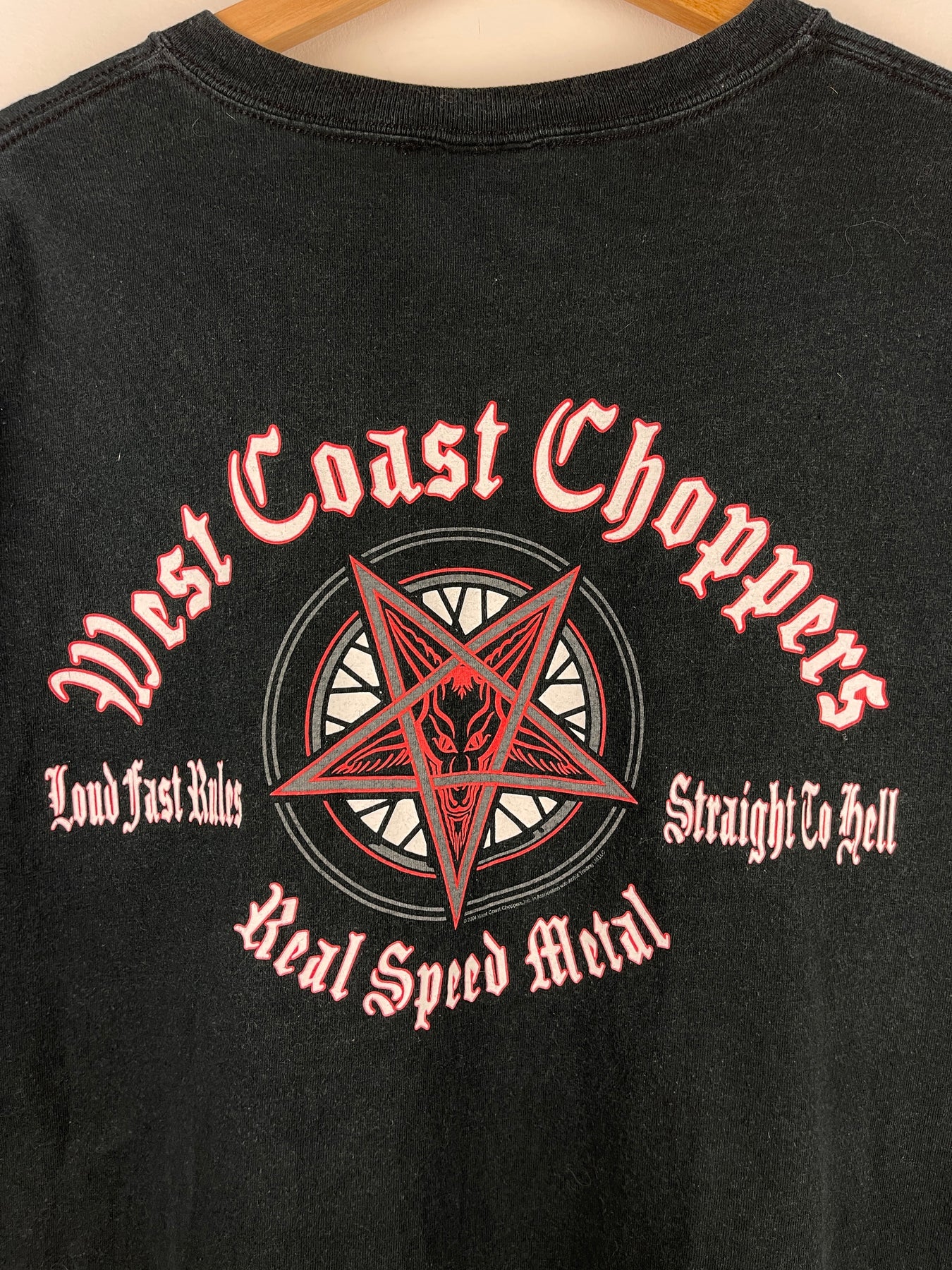 Vintage 2004 West Coast Choppers Real Speed Metal Pentagram Black Tee
