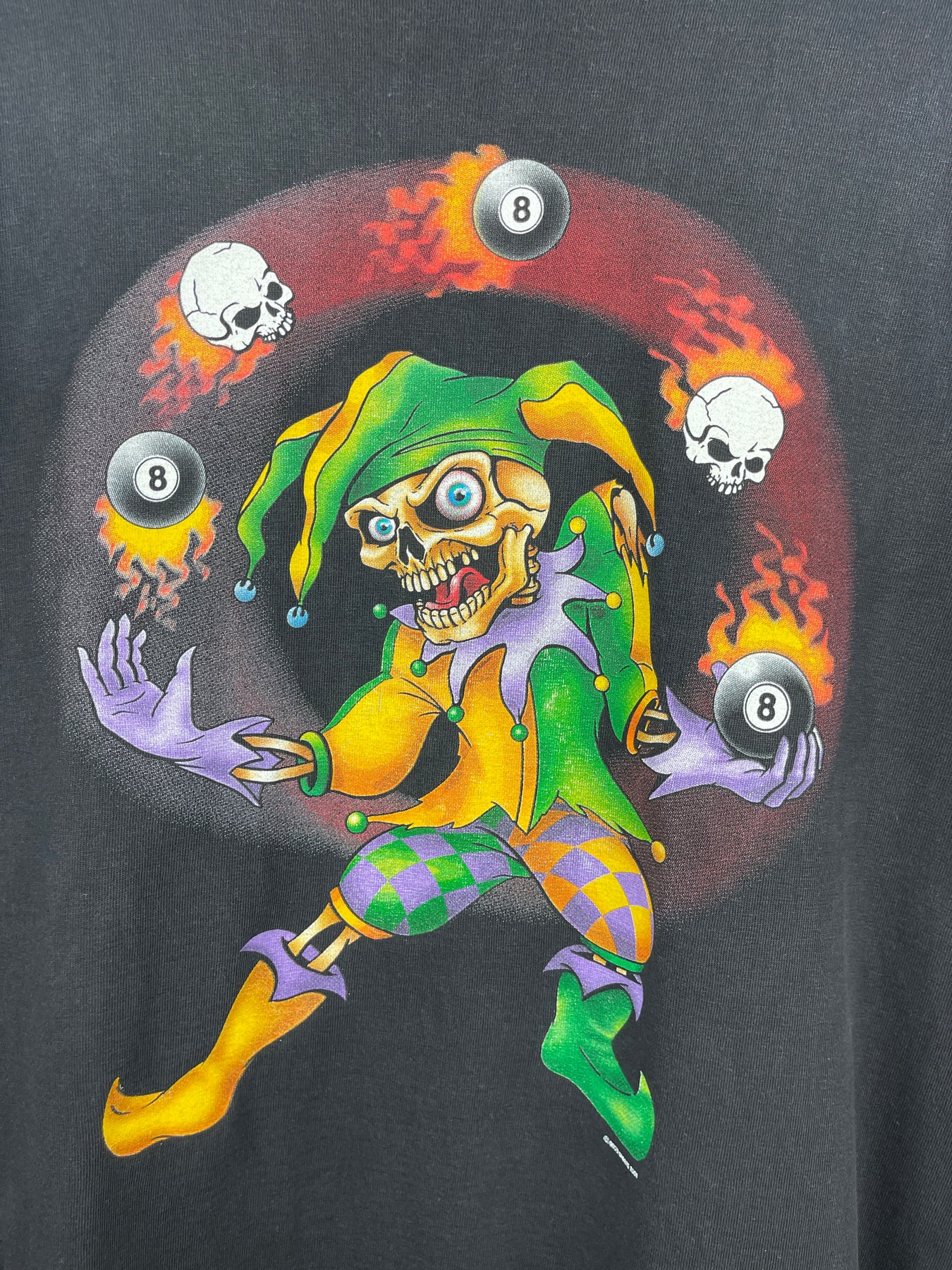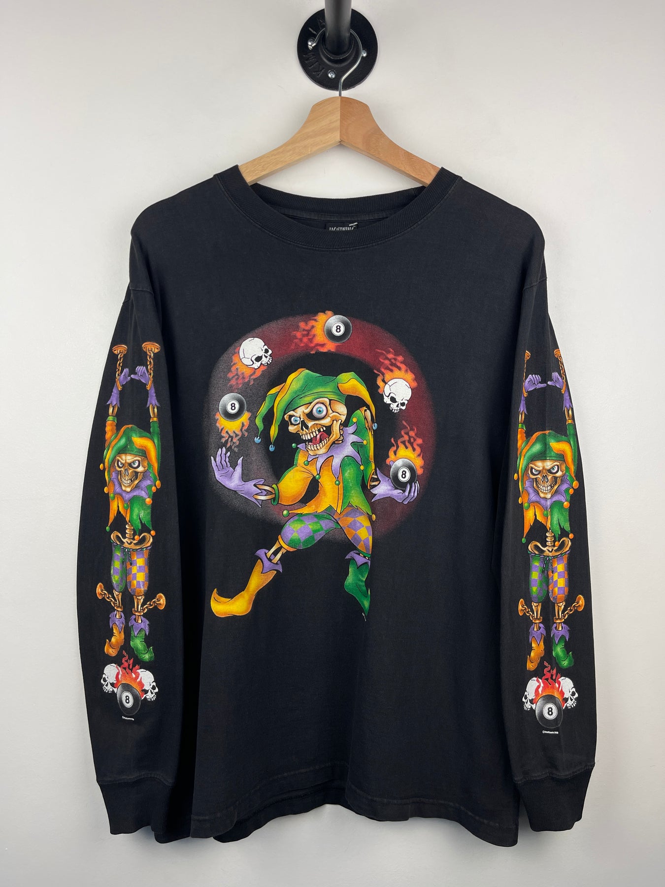 Vintage 2005 Jester 8 Ball Flames Laconia Weirs Beach Biker Black Long Sleeve