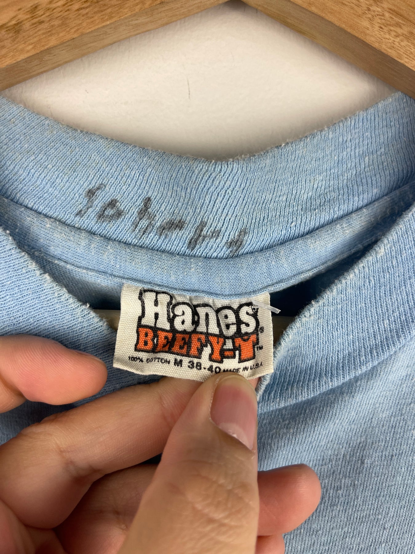 Vintage 70s Wente Bros Grey Riesling Wine Baby Blue Tee