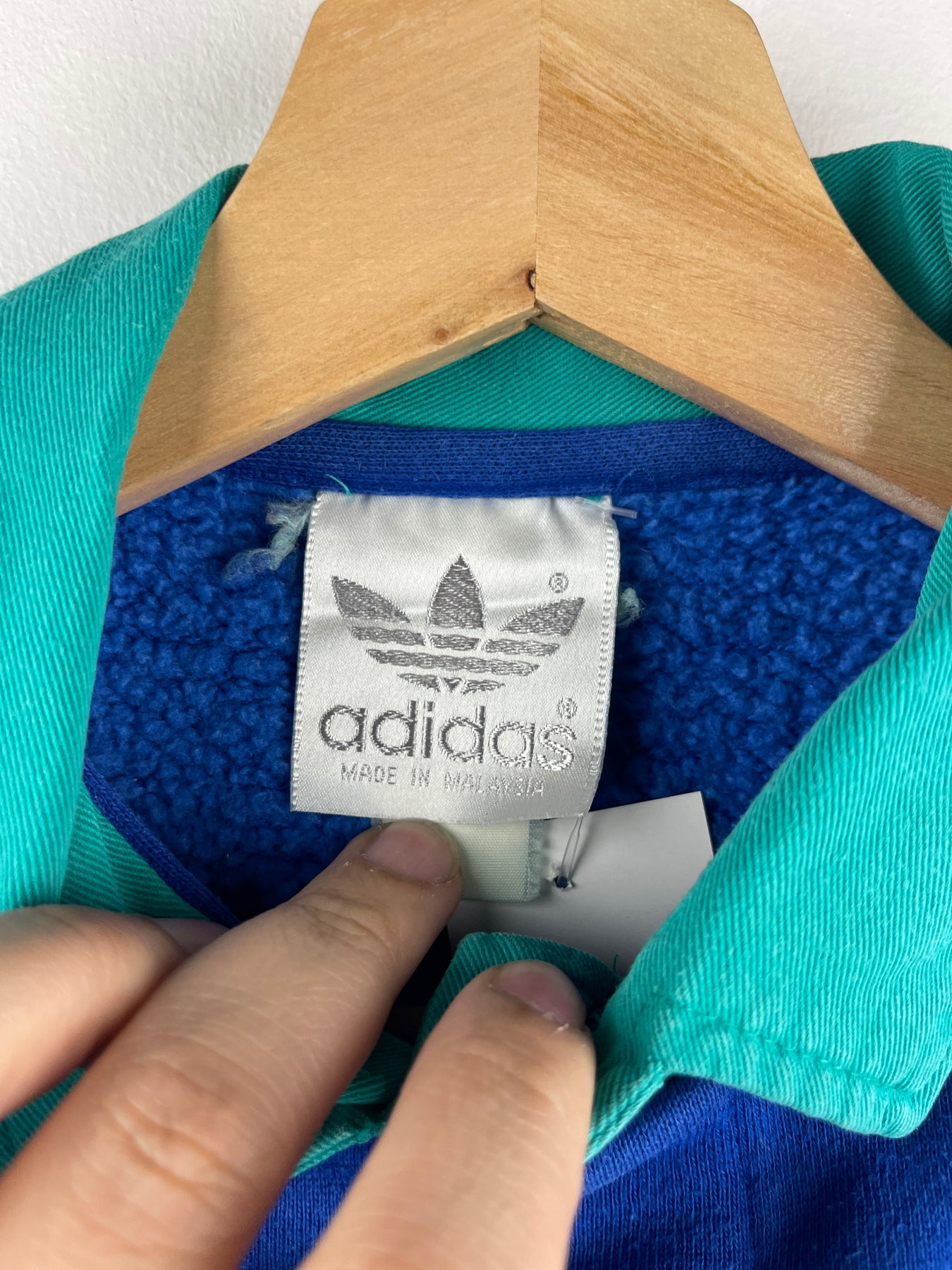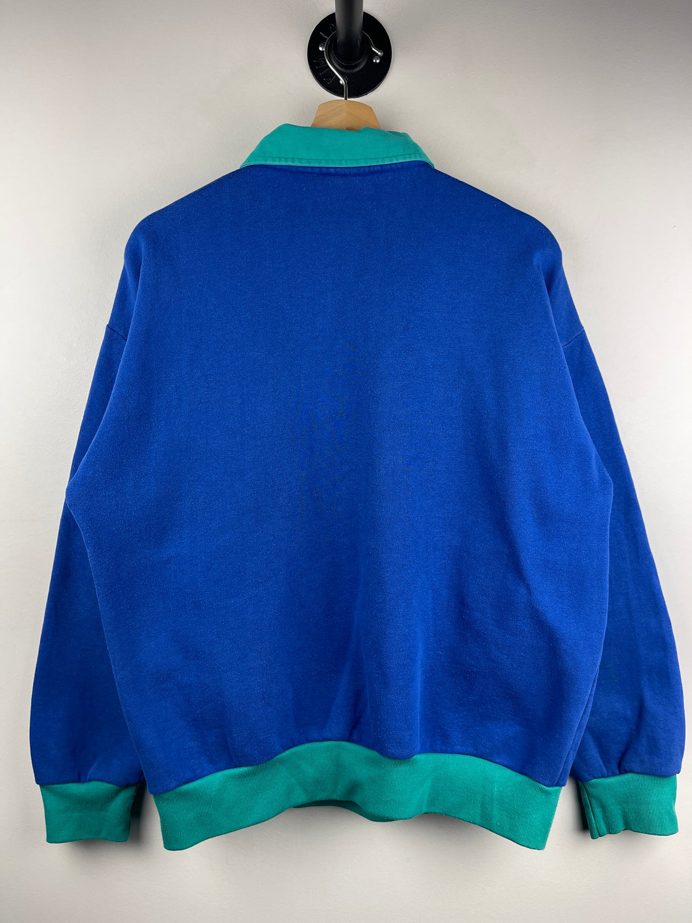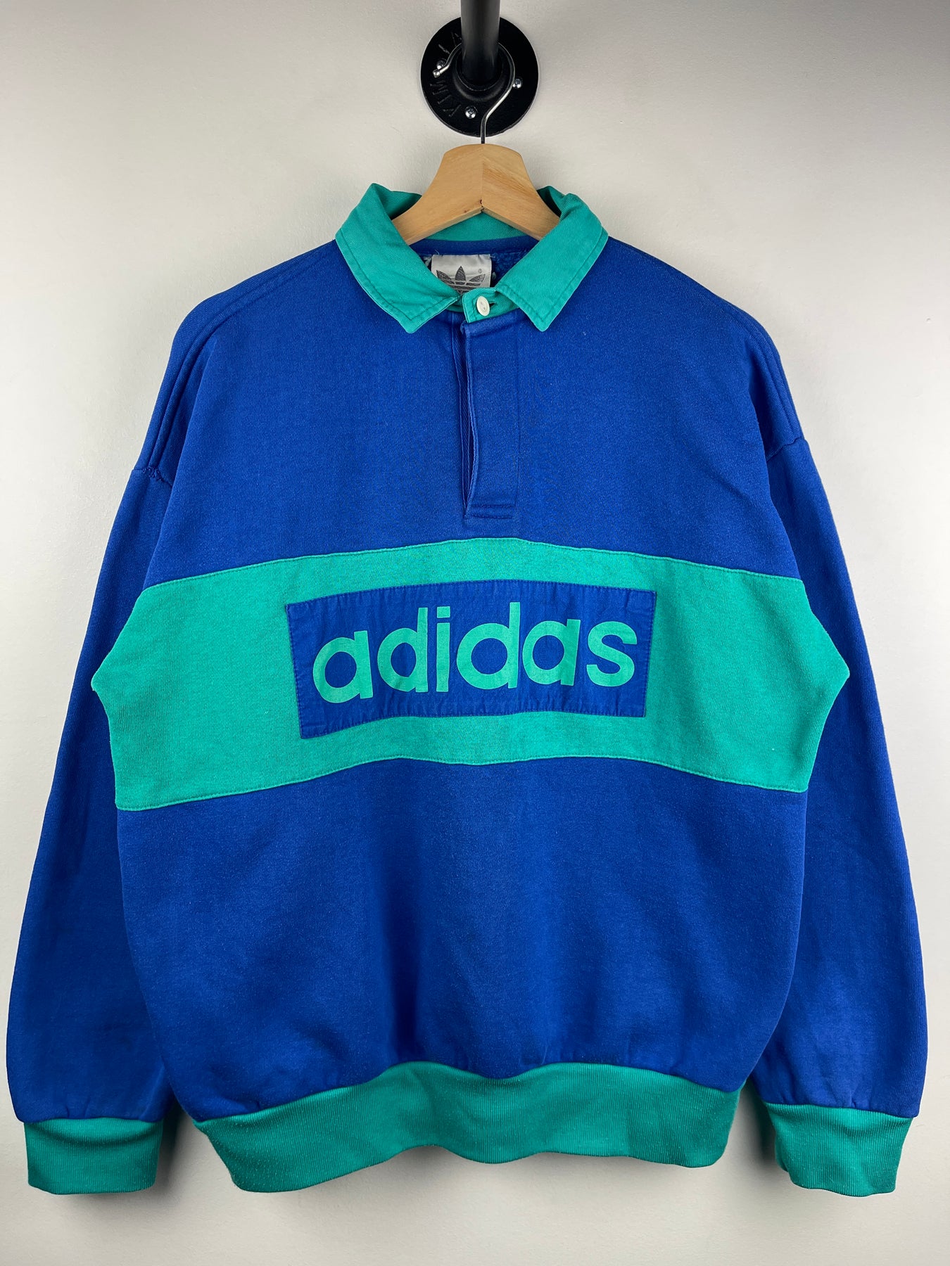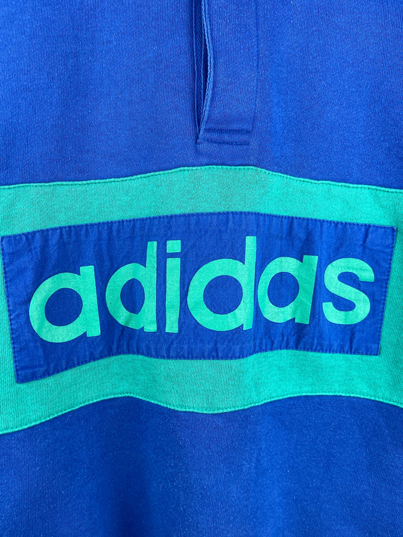 Vintage 80s Adidas Blue & Green Rugby Crewneck