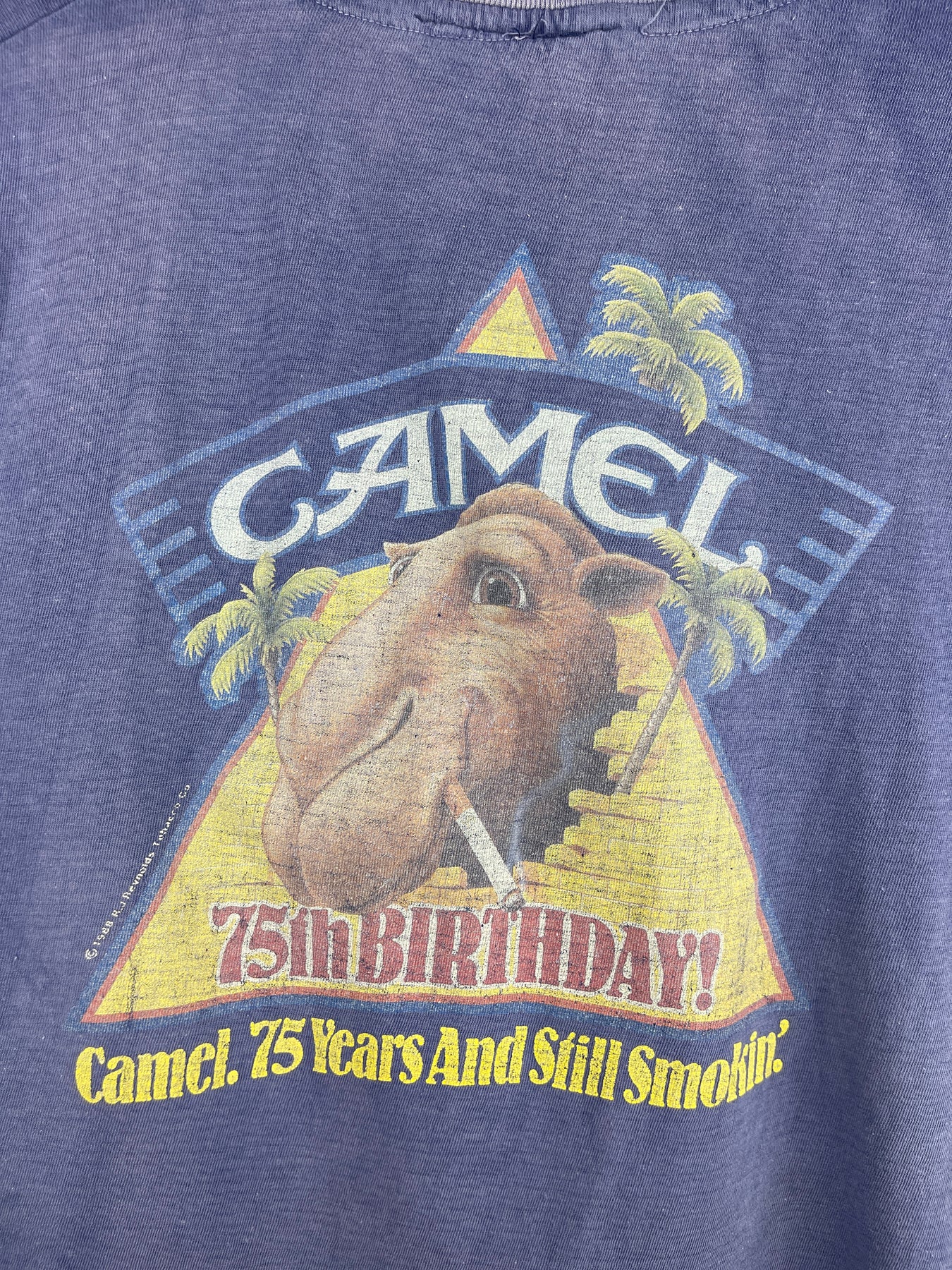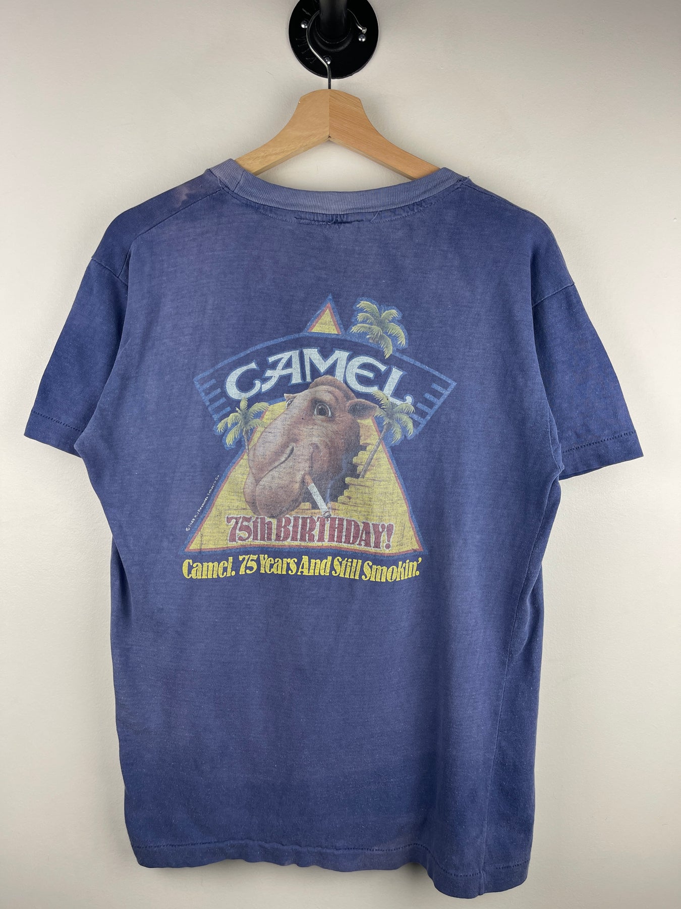 Vintage 80s Camel Smokes 75th Birthday Faded Navy Pocket Tee