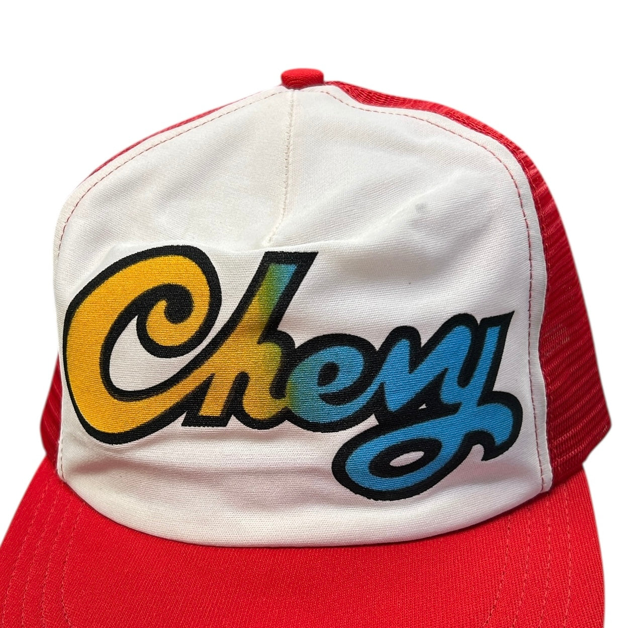 Vintage 80s Chevrolet Chevy Script Red Trucker Snapback Hat