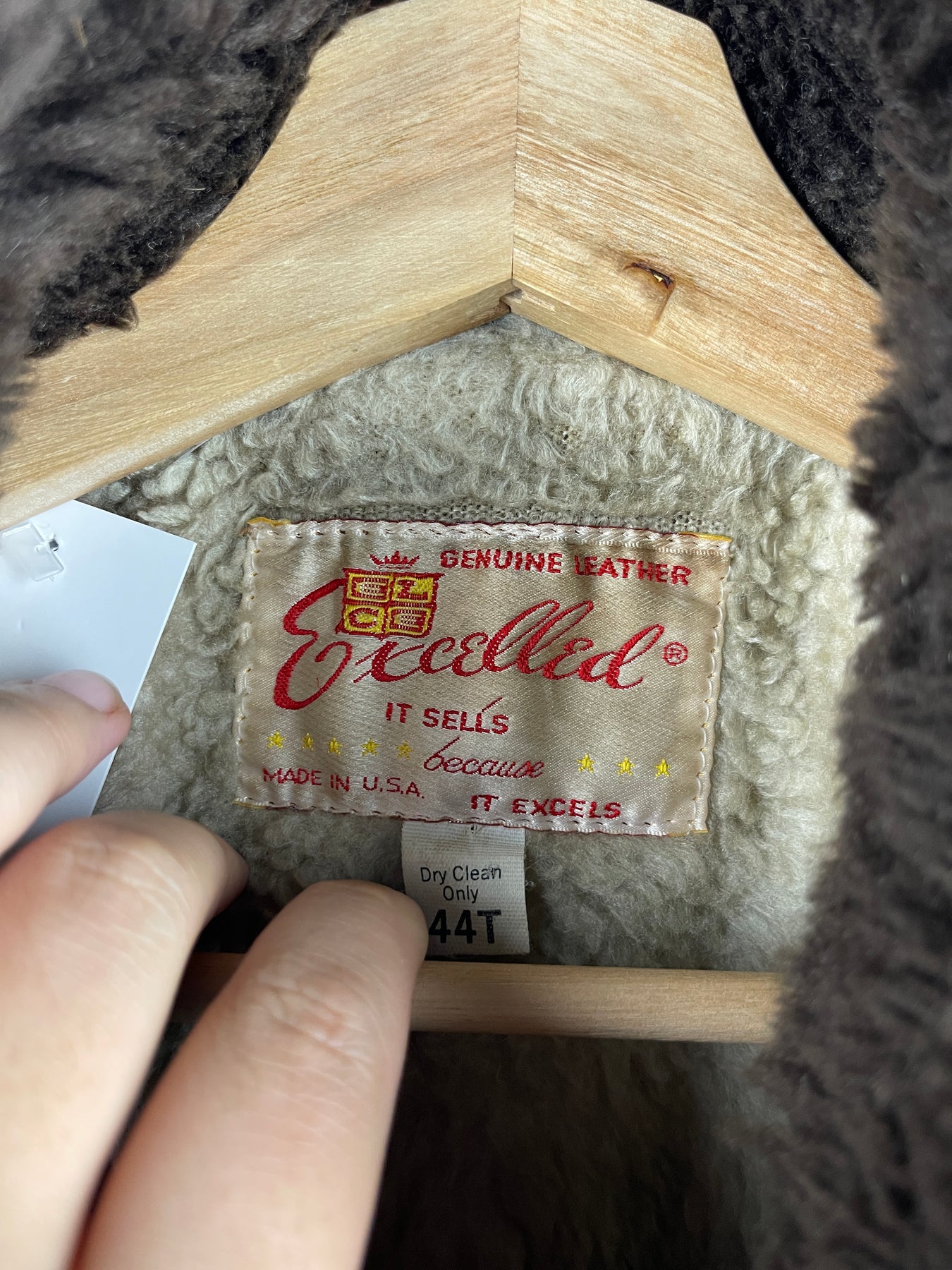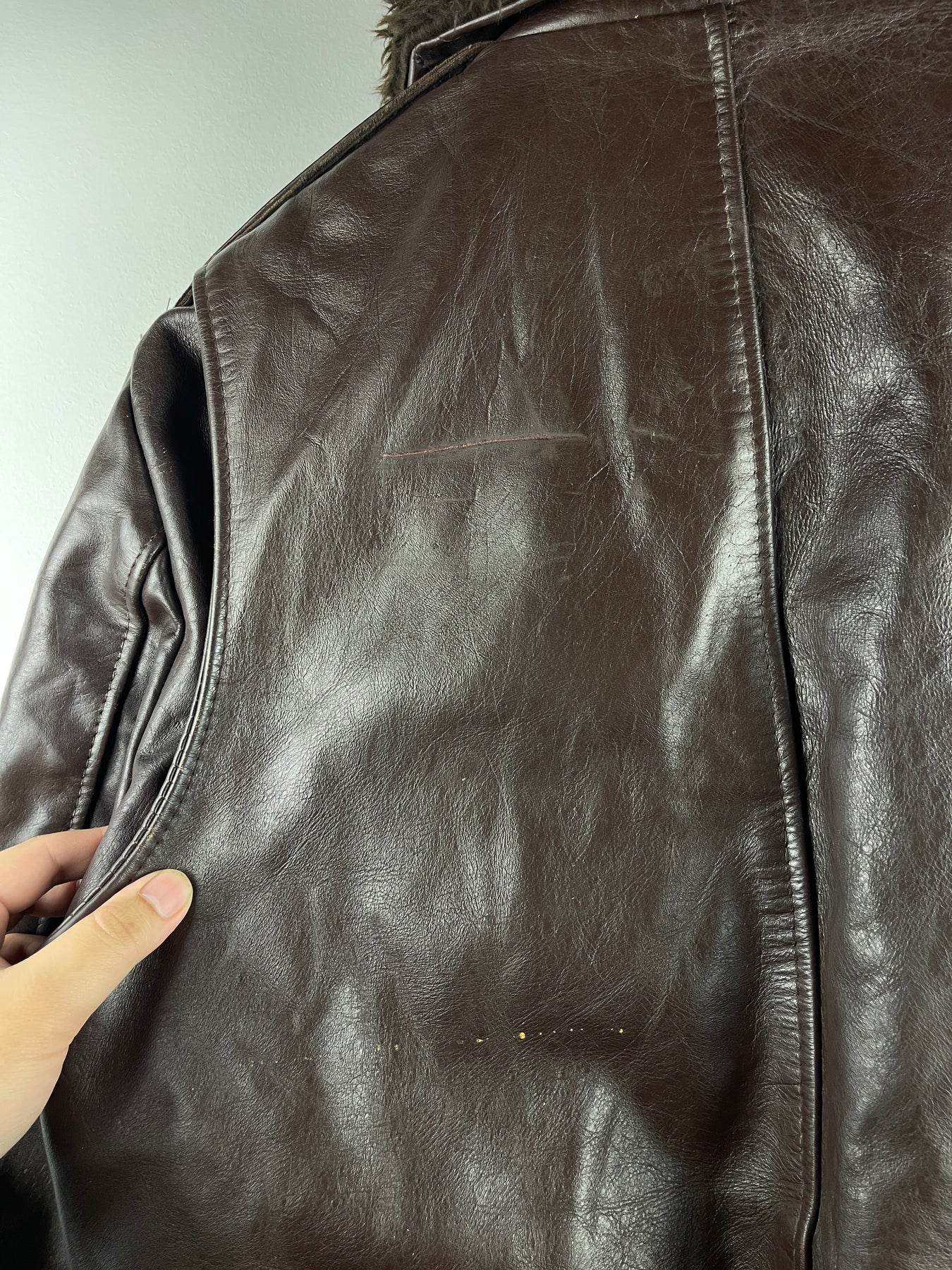 Vintage 80s Excelled Flight Bomber Fur Collar Brown Leather Jacket