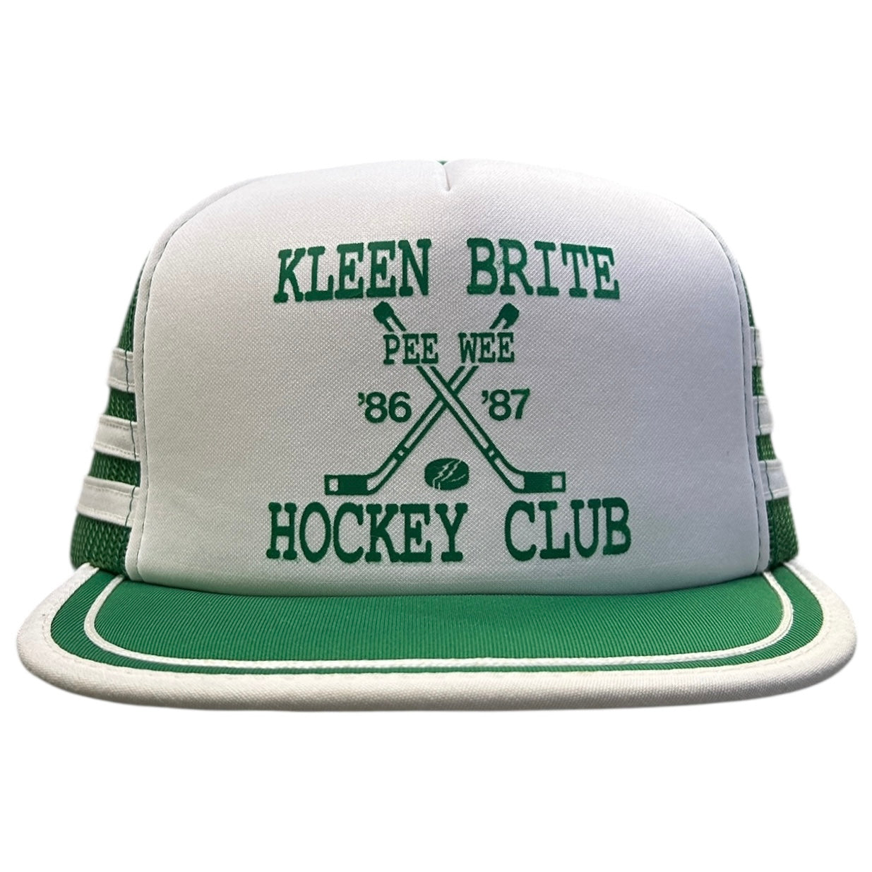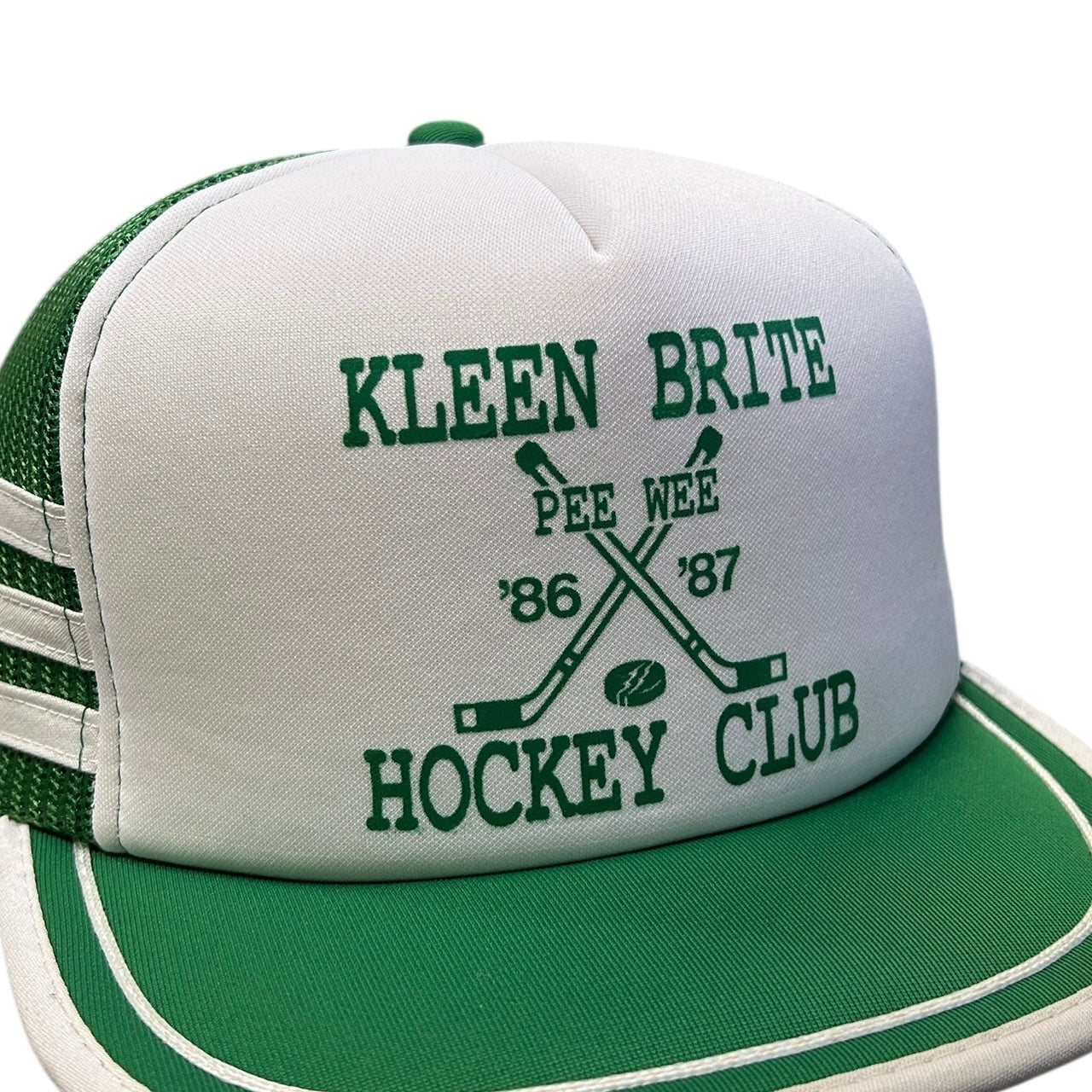 Vintage 80s Kleen Brite Pee Wee Hockey Glub Green 3 Stripe Trucker Snapback Hat