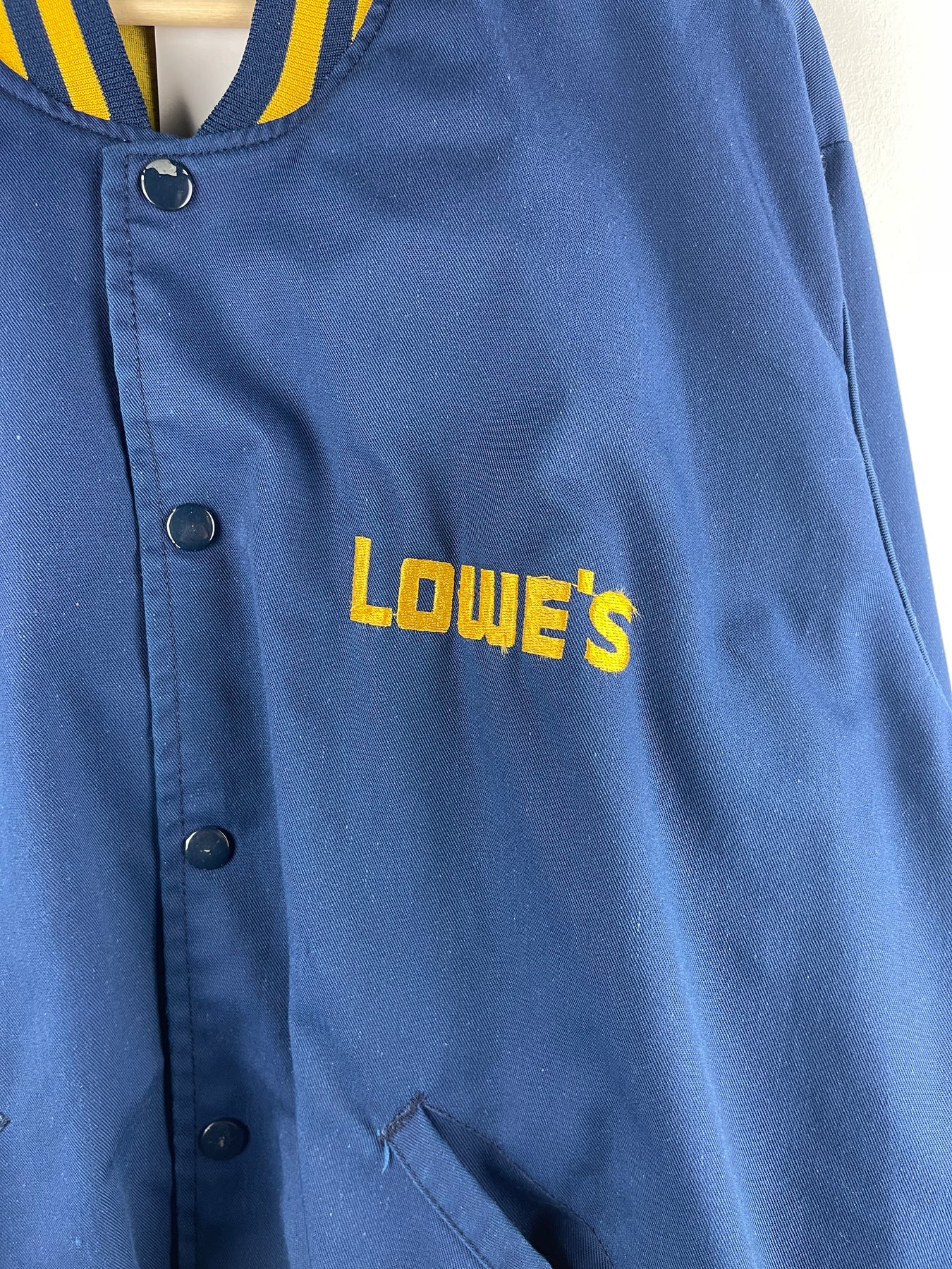 Vintage 80s Lowe's Navy & Yellow Varsity Bomber Jacket