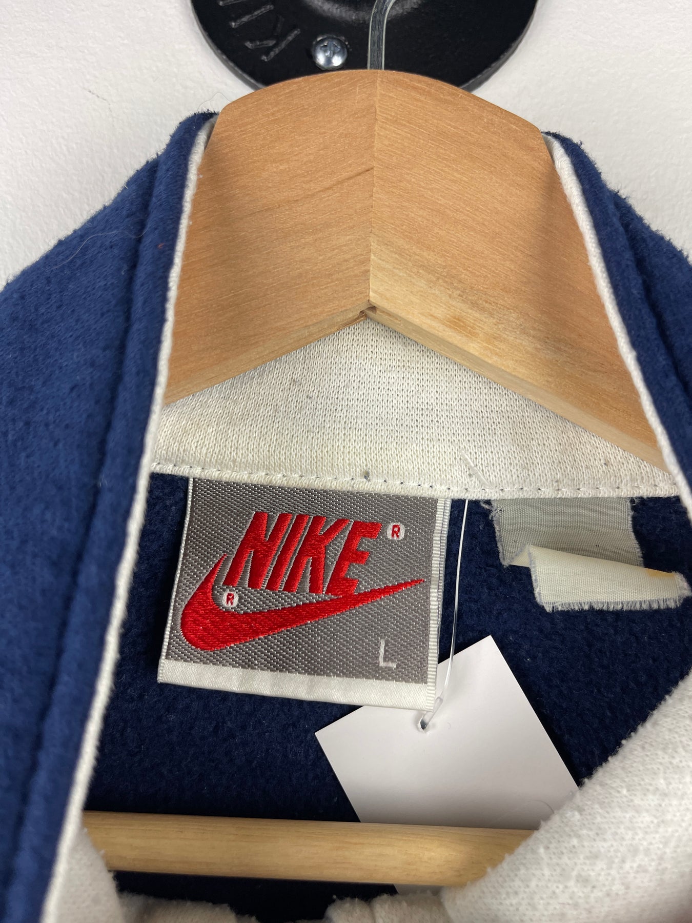 Vintage 80s Nike Spellout Navy & Grey Zip Up Sweater