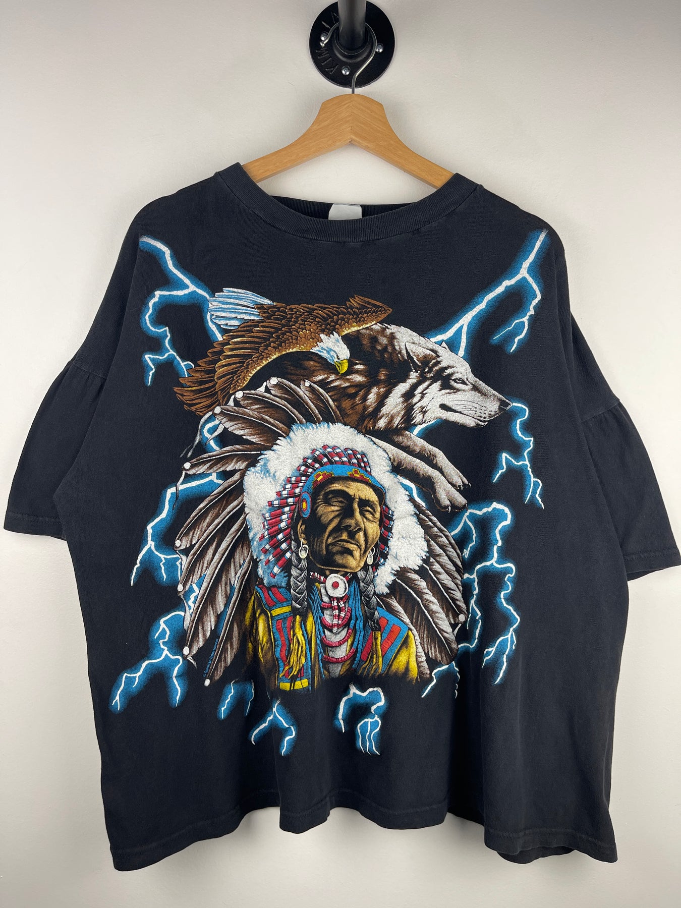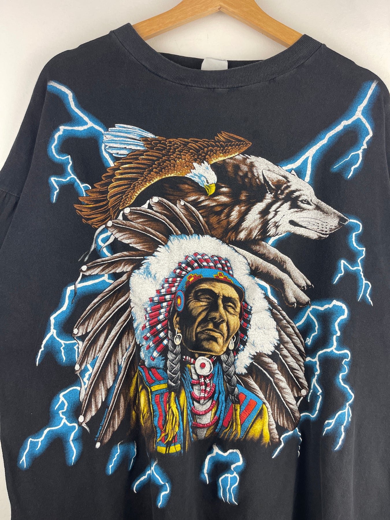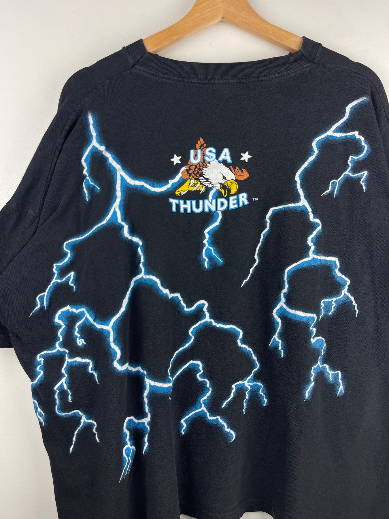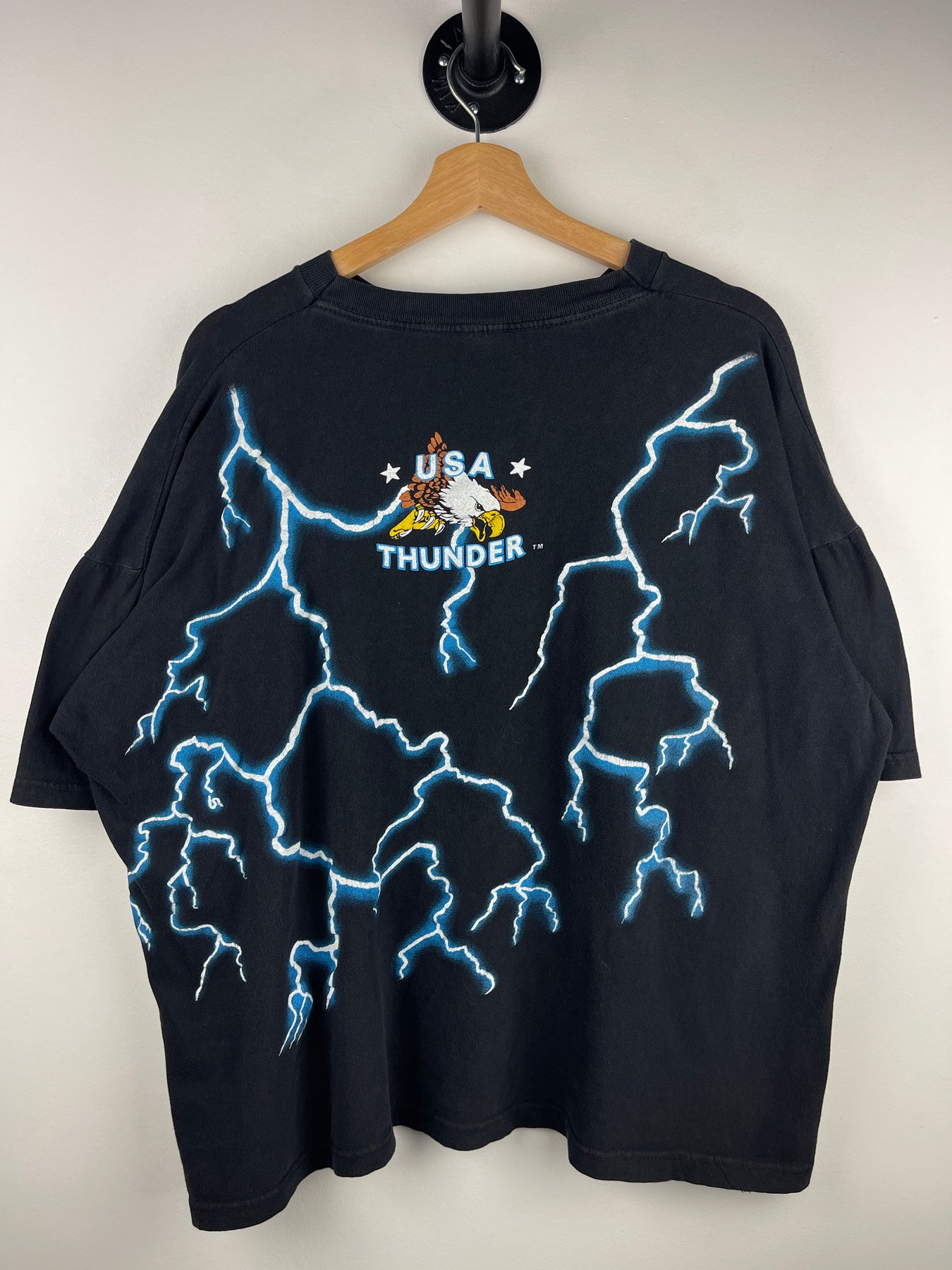 Vintage 90s American Thunder Lightning Eagle Wolf Black Tee