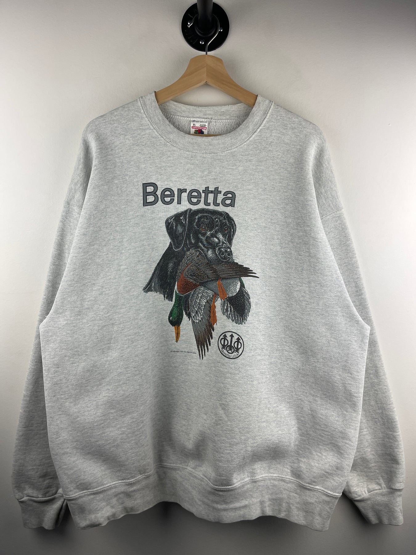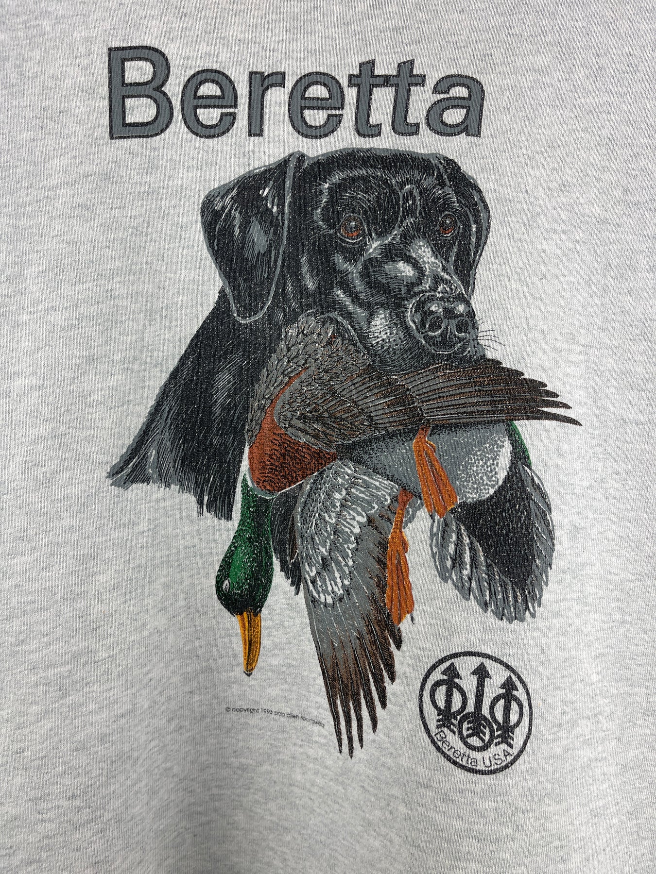 Vintage 90s Beretta Firearms Dog Hunting Grey Crewneck