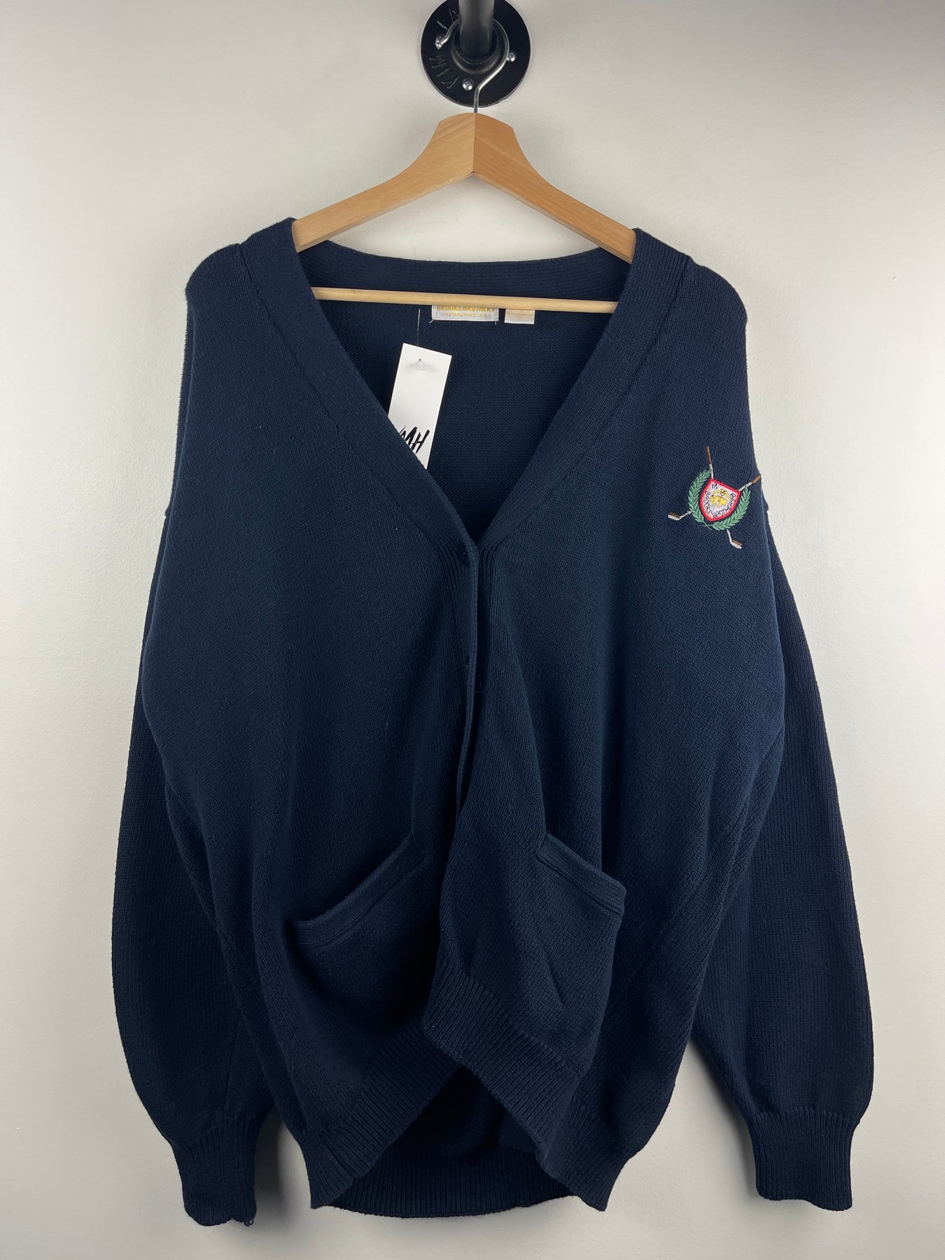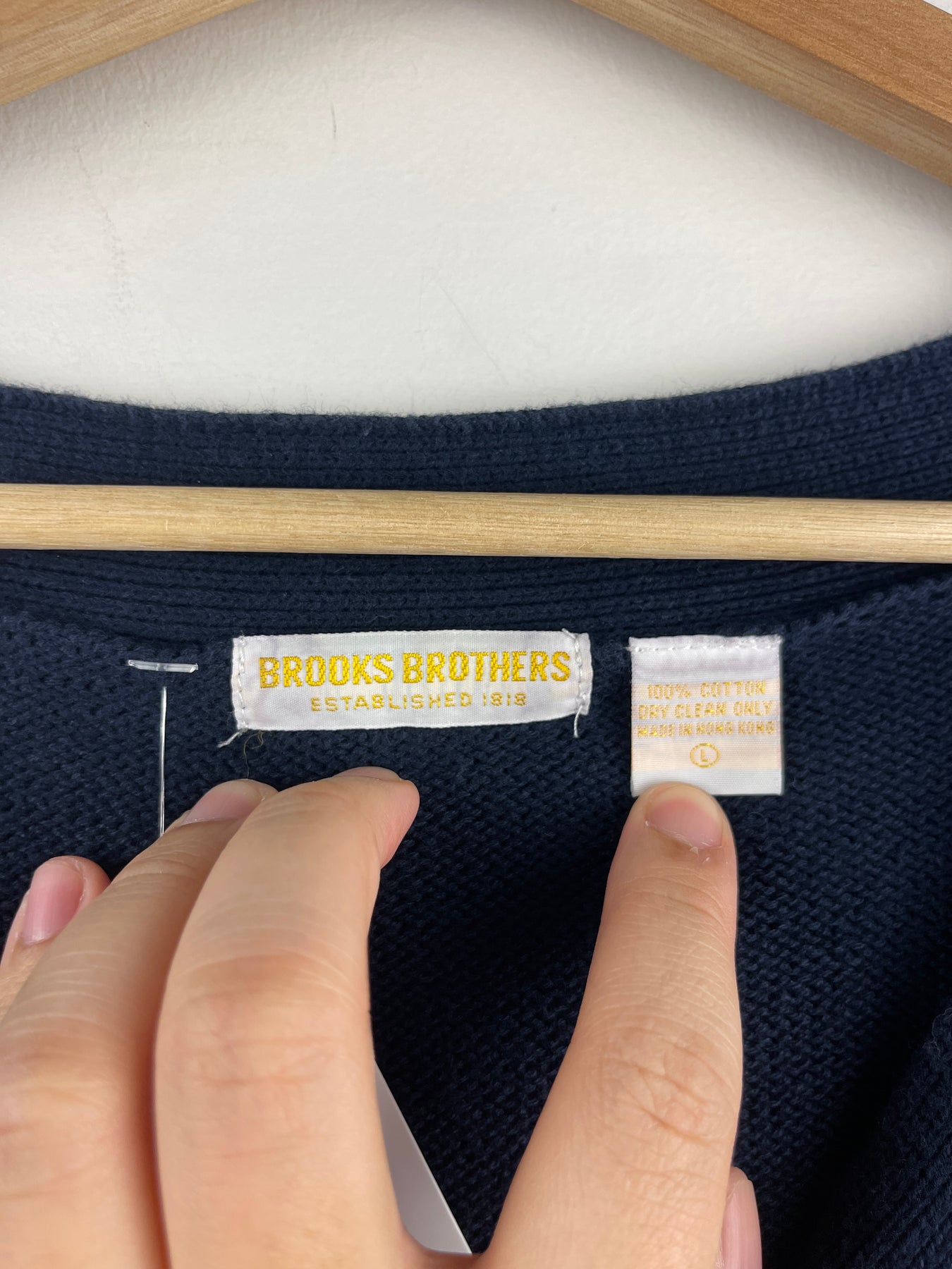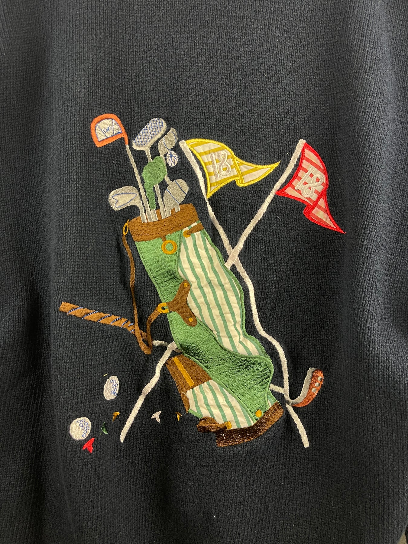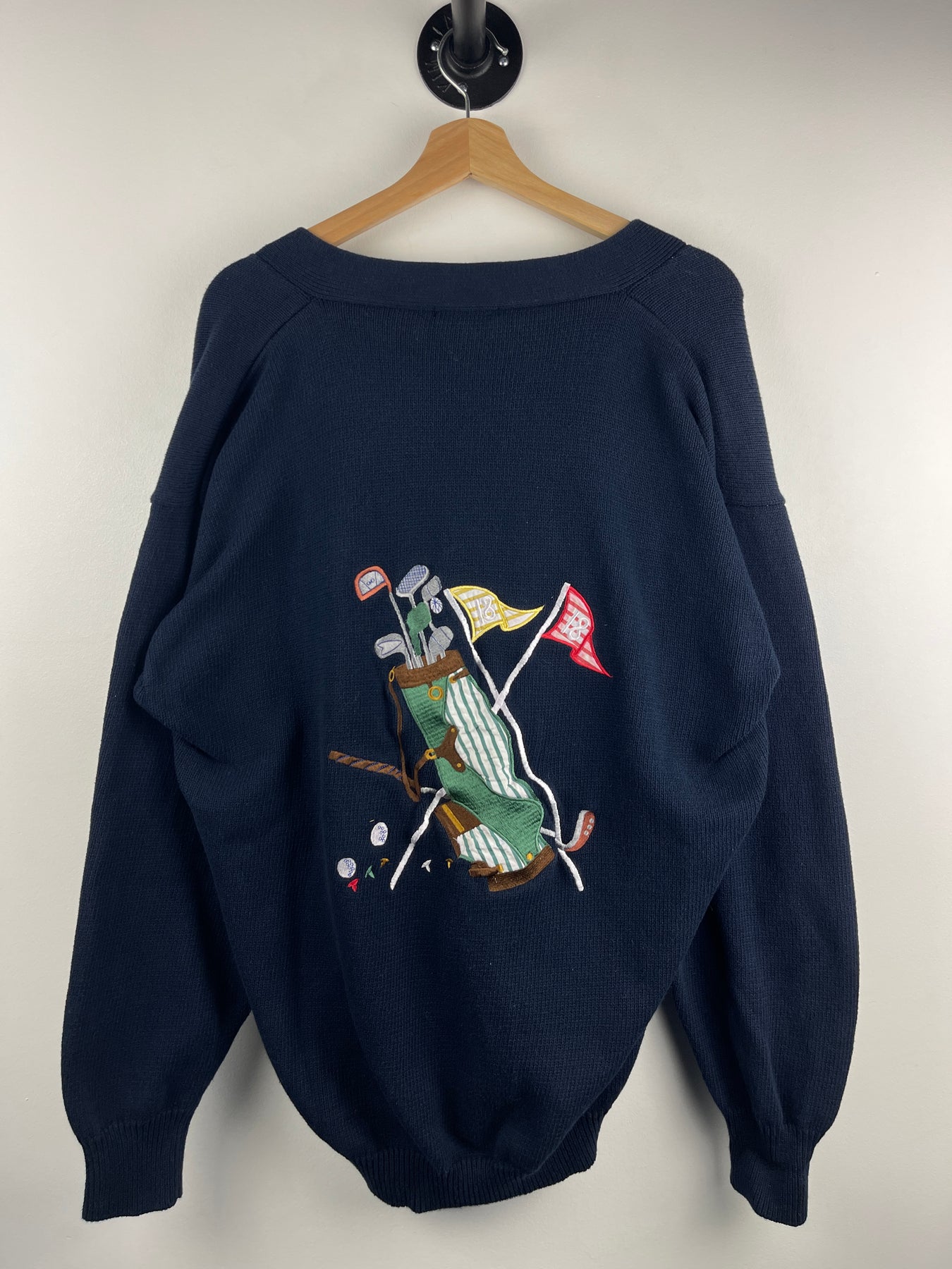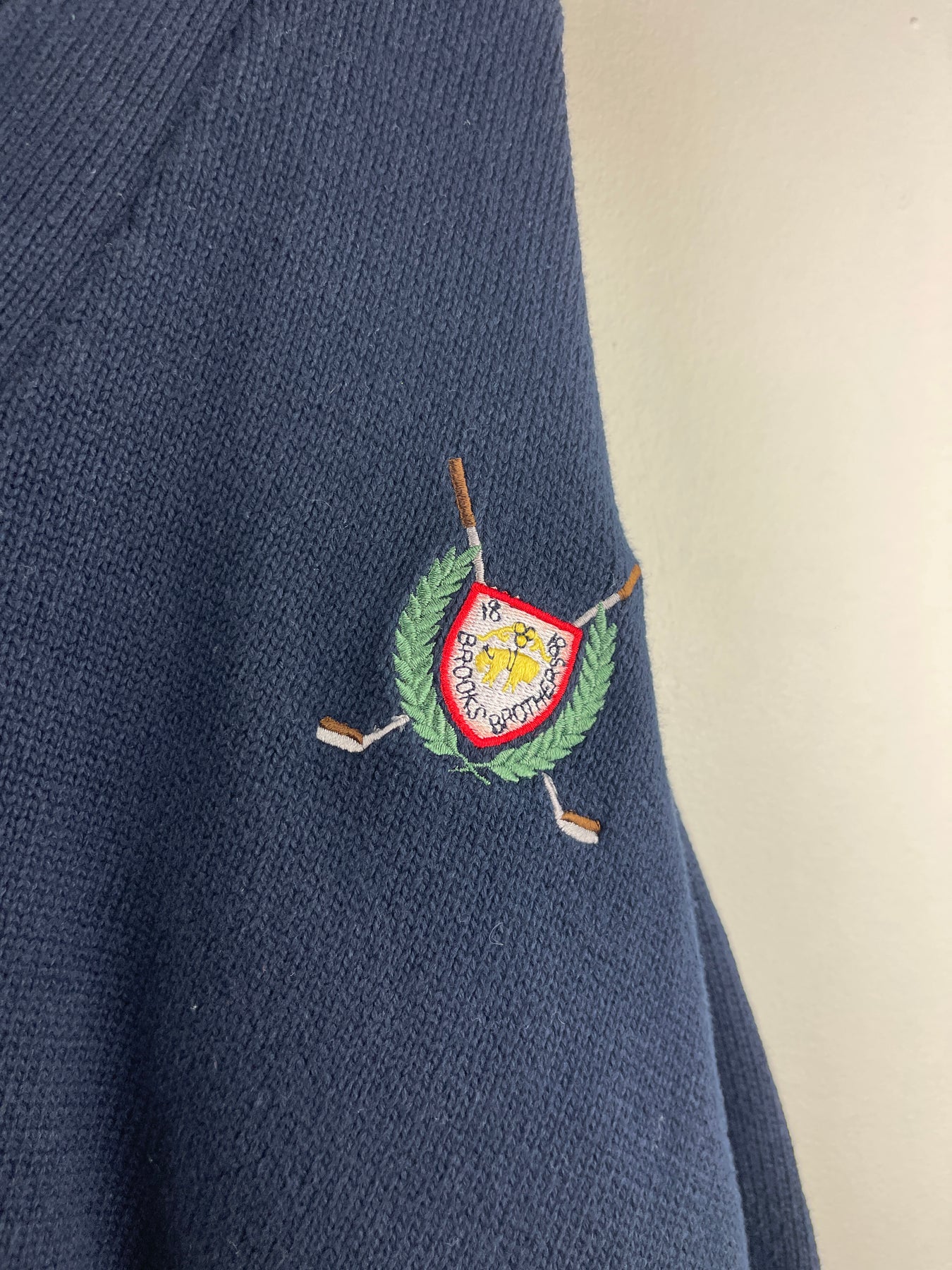 Vintage 90s Brooks Brothers Golf Bag Embroidered Navy Knit Cardigan Sweater