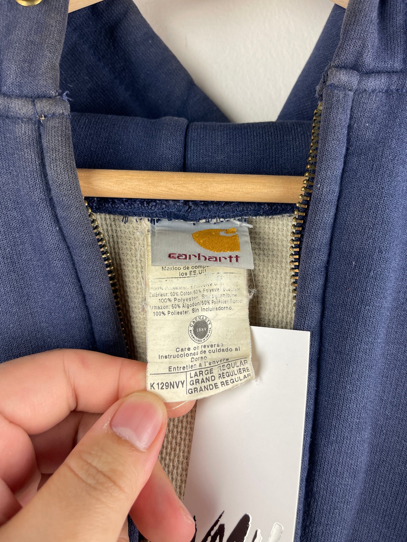 Vintage 90s Carhartt Thermal Lined Navy Zip Up Hoodie
