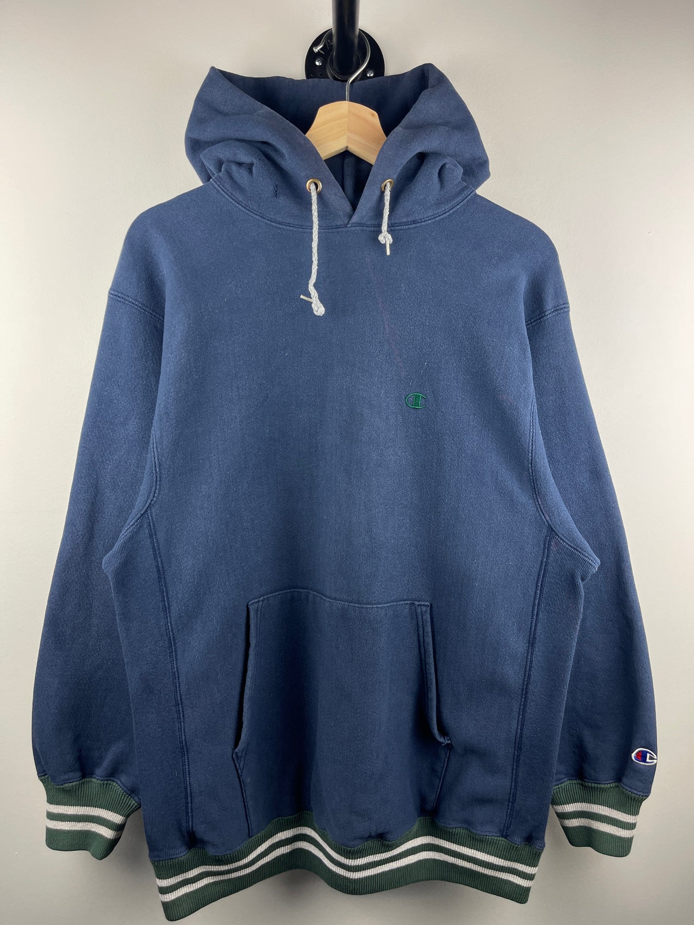 Vintage 90s Champion Reverse Weave Navy & Green Hoodie