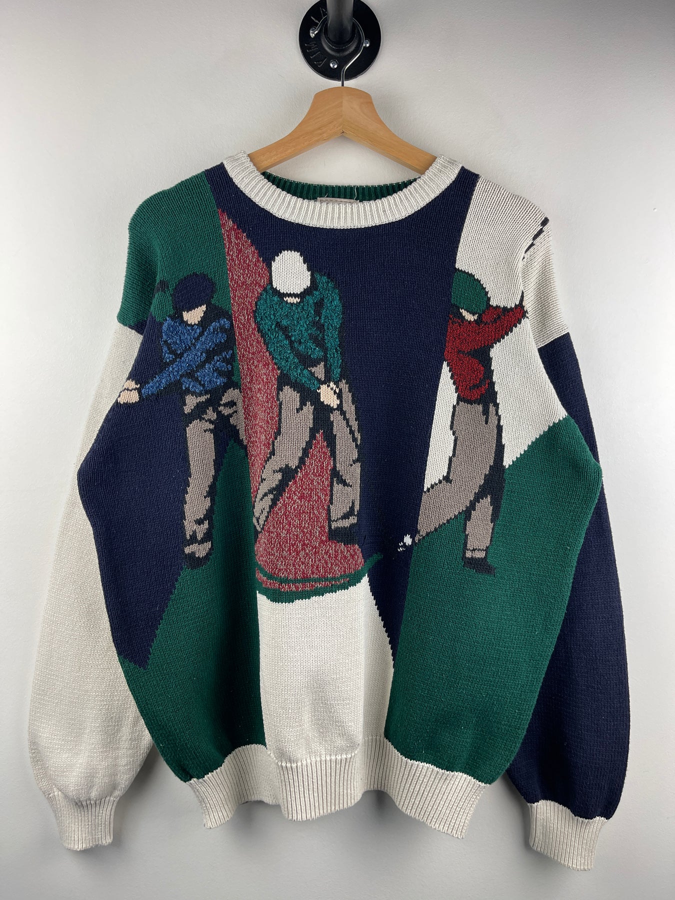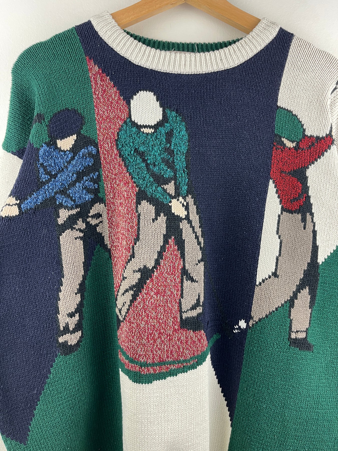 Vintage 90s Cotton Traders Golf Players Multi Colour Knit Sweater