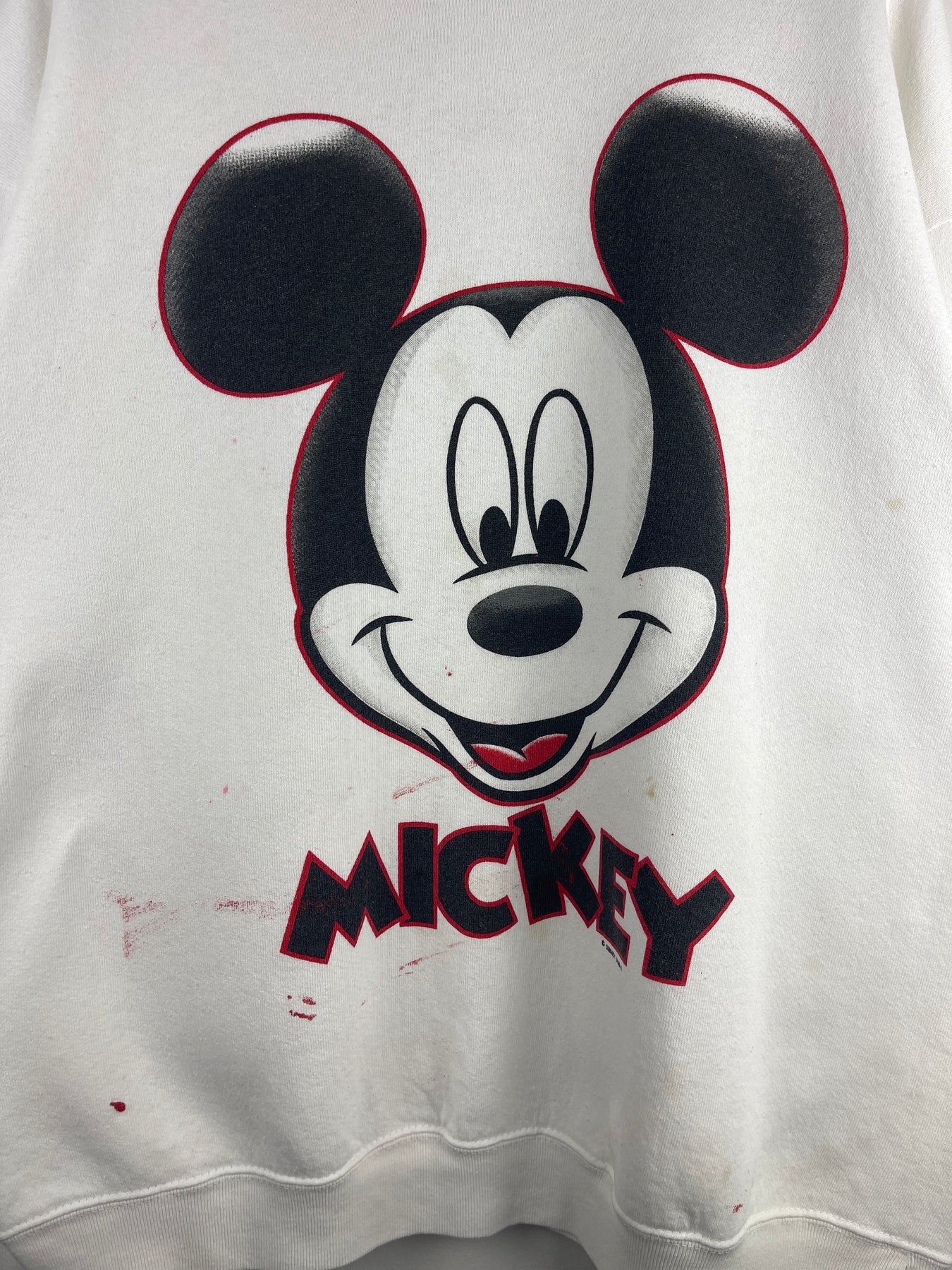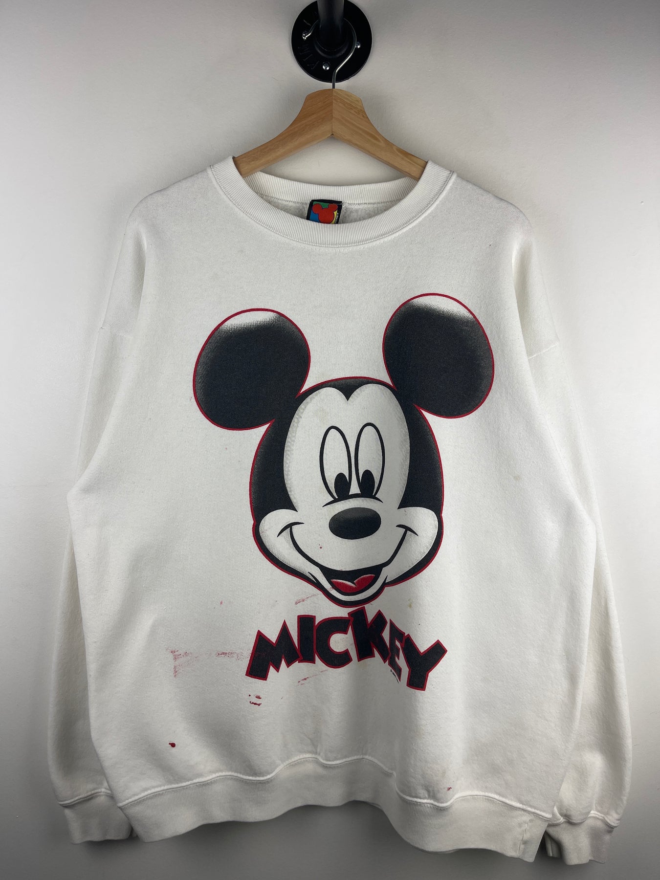 Vintage 90s Disney Mickey Mouse Big Face White Crewneck