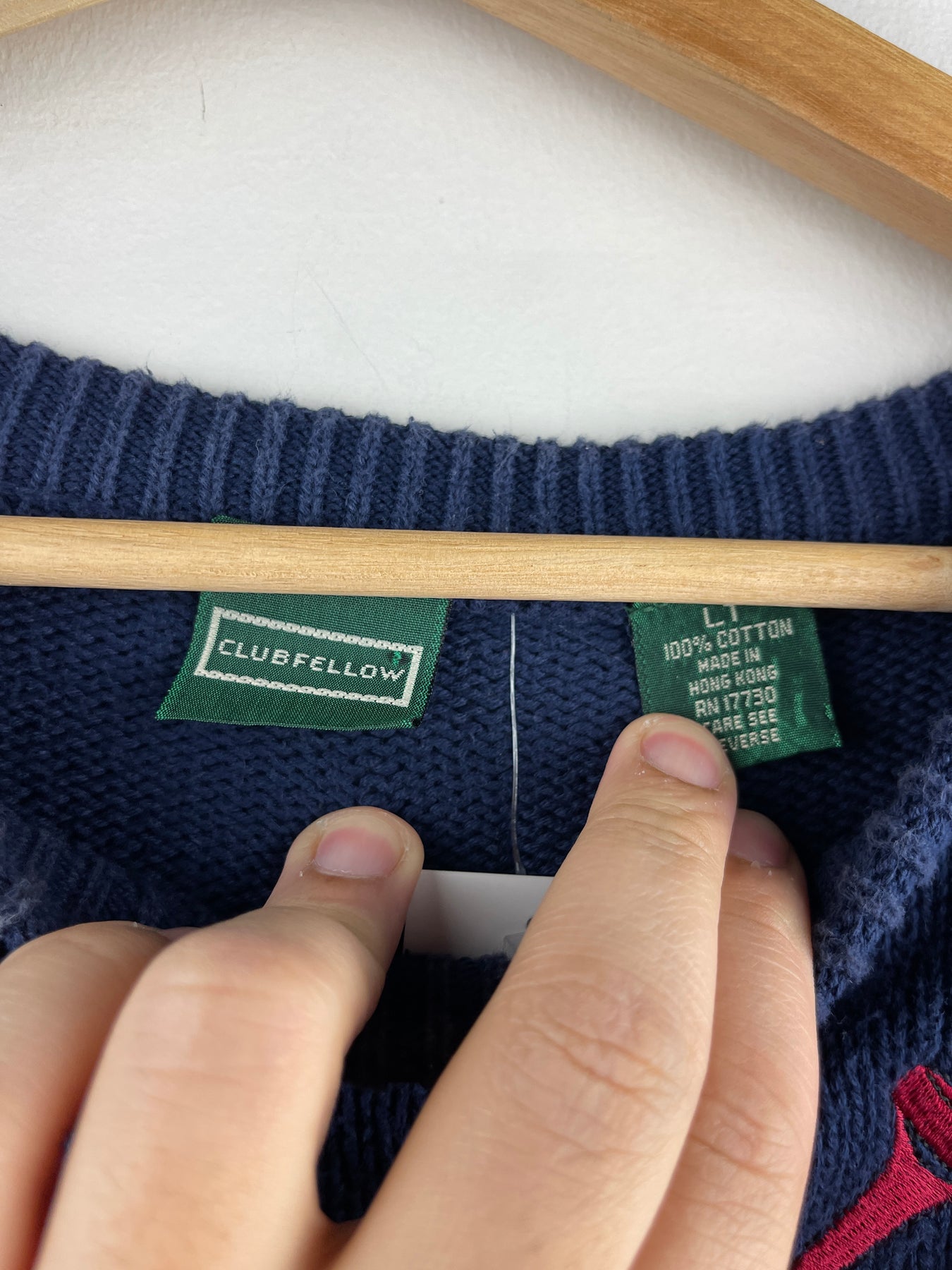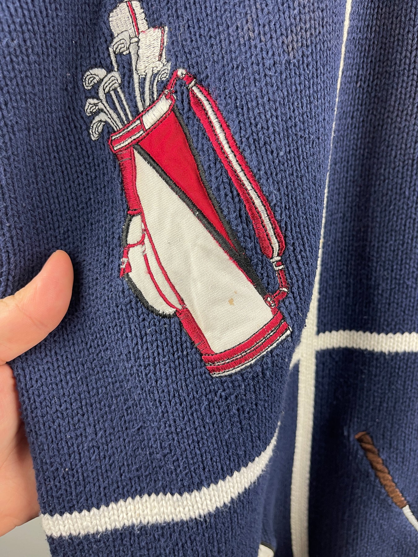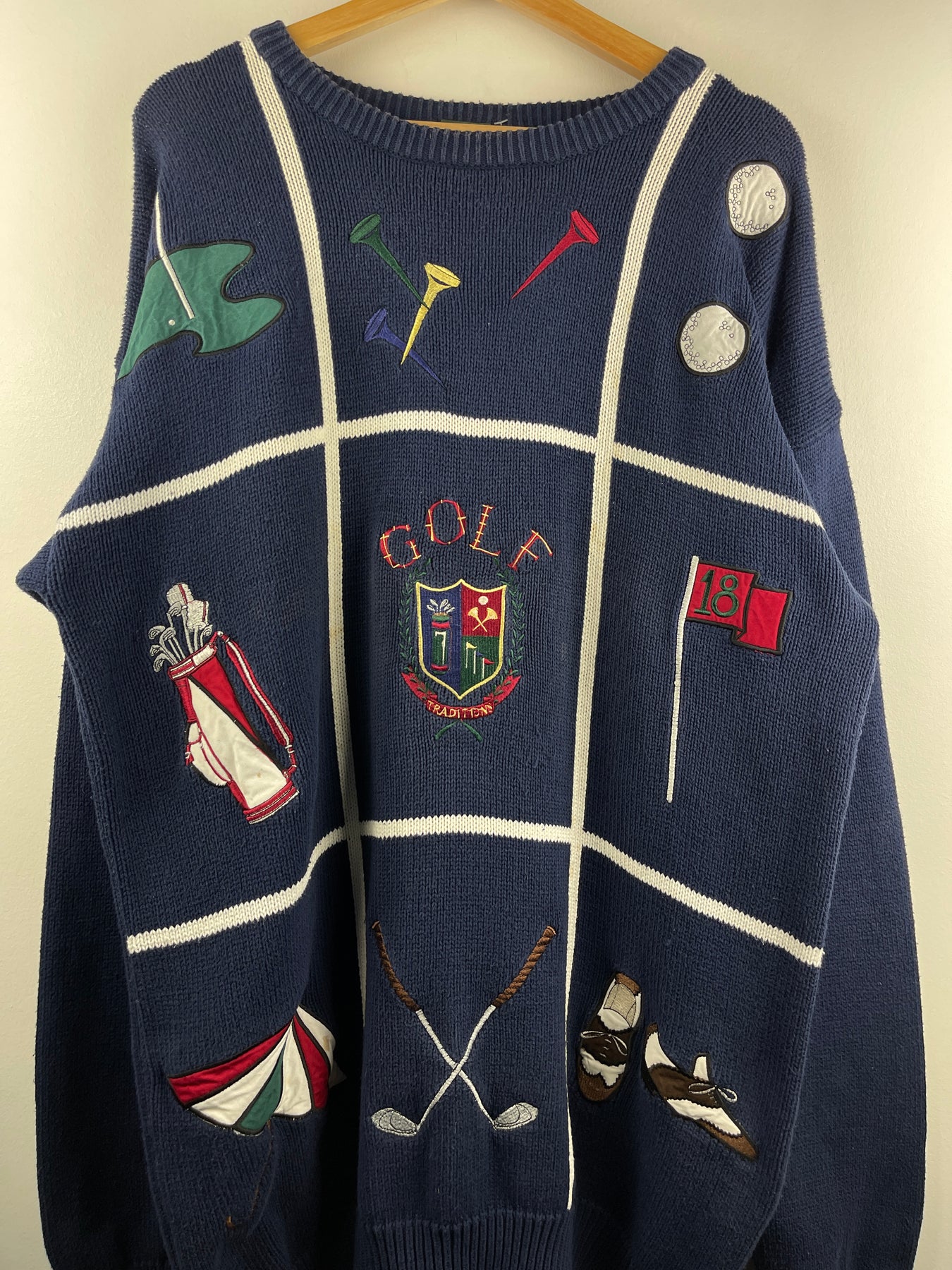 Vintage 90s Golf Traditions Embroidered Navy Knit Sweater