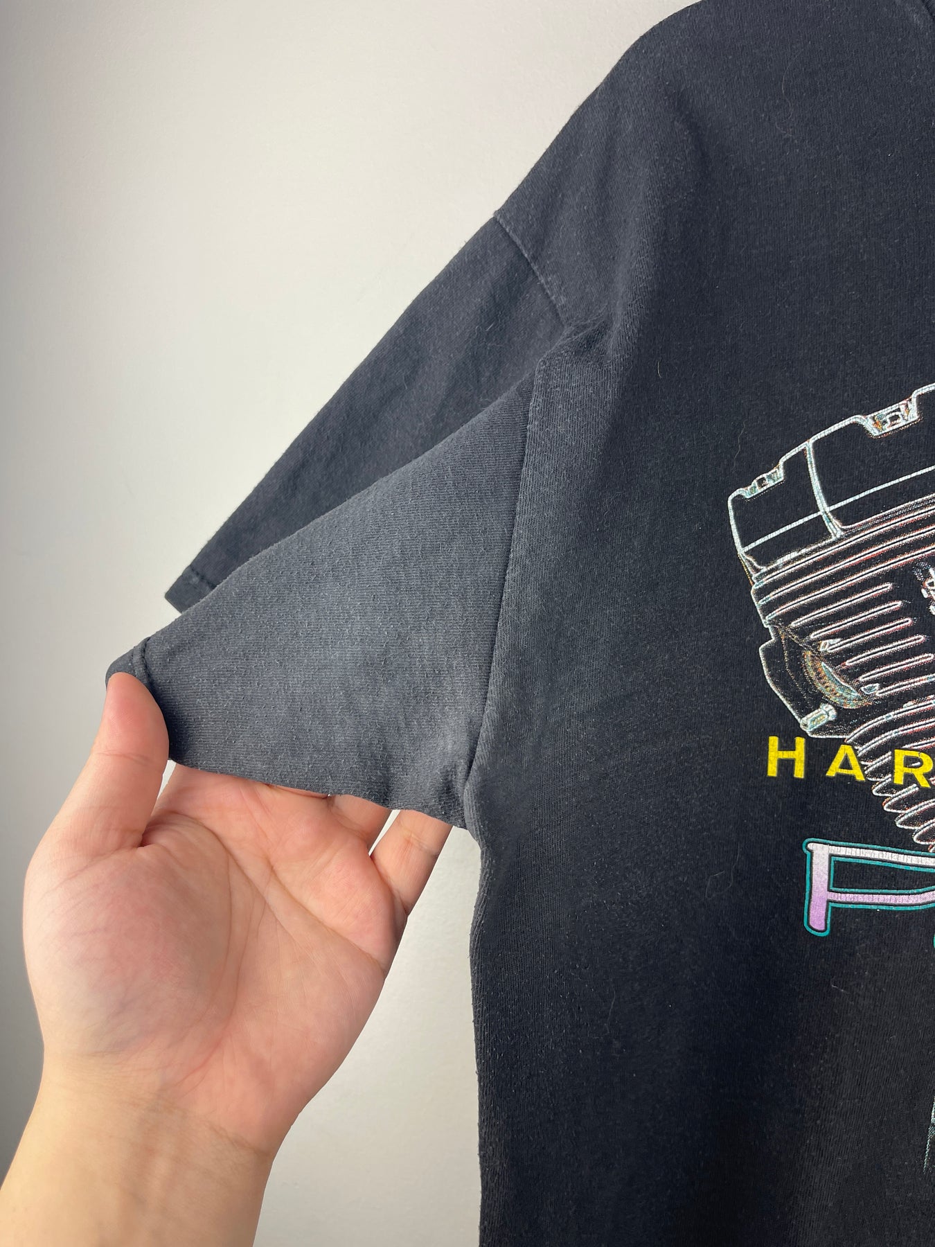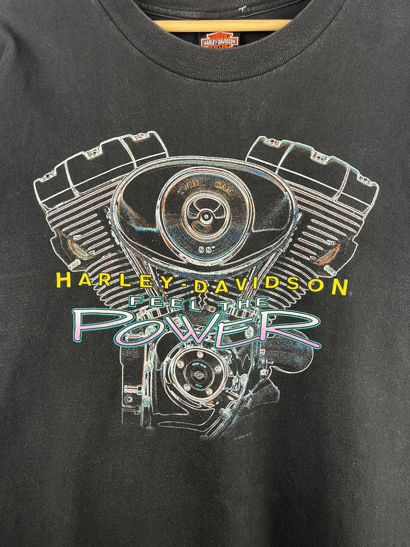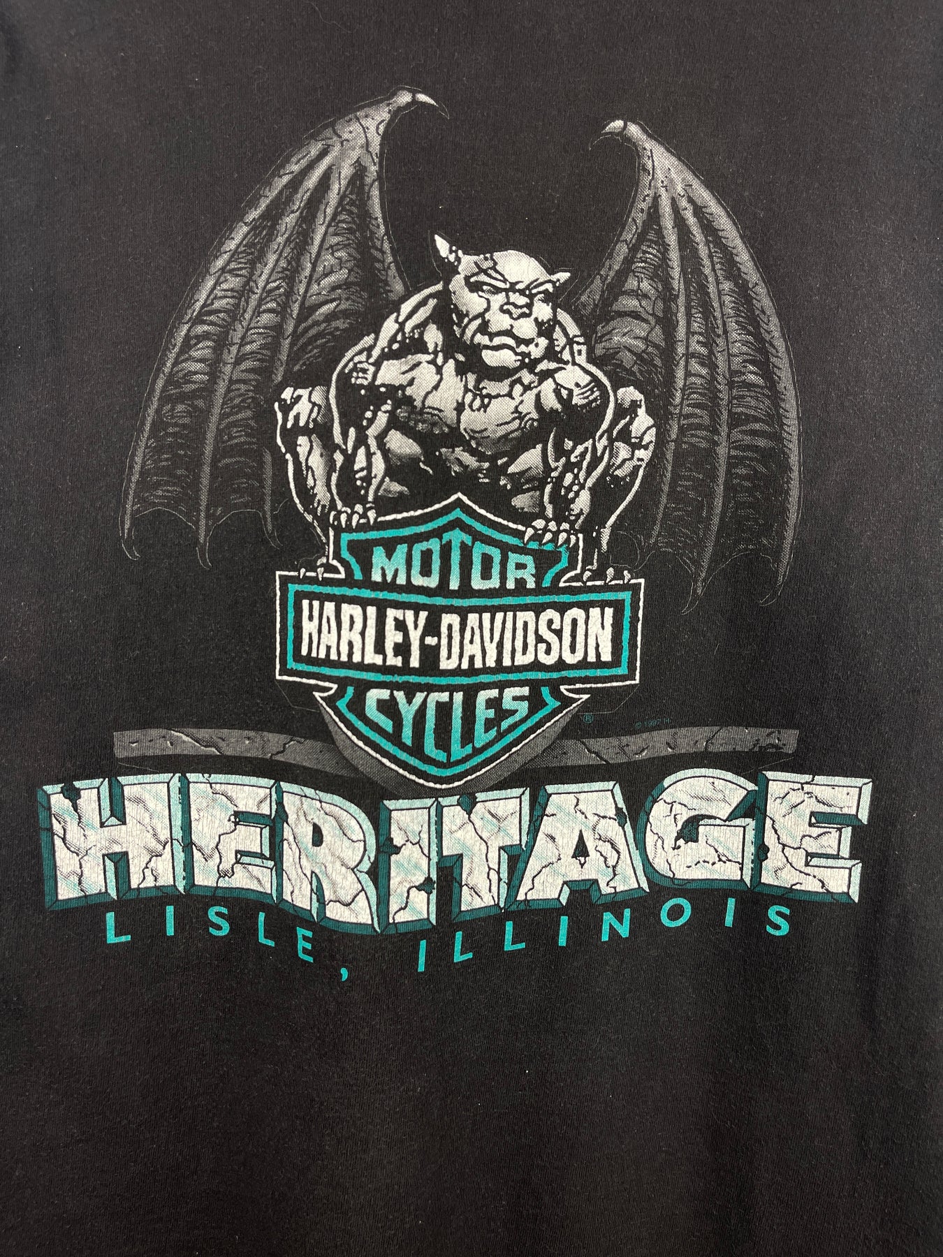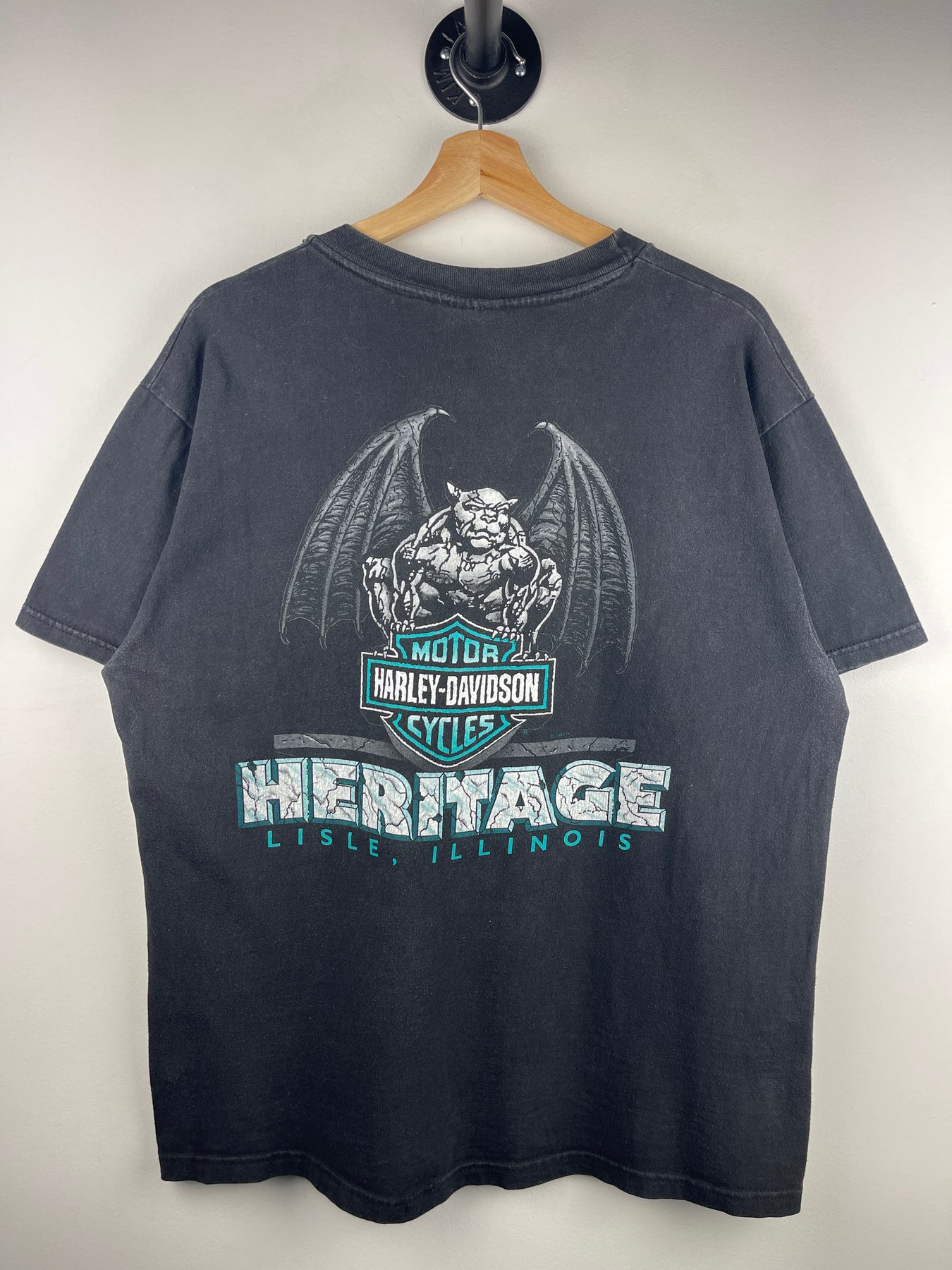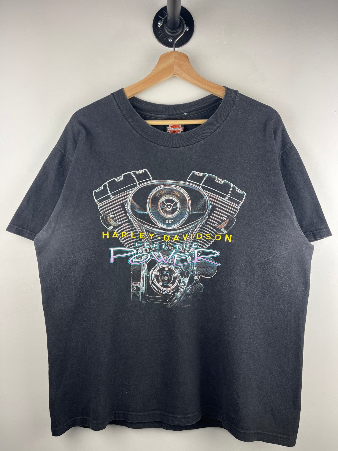 Vintage 90s Harley Davidson Gargoyle Feel The Power Engine Black Tee