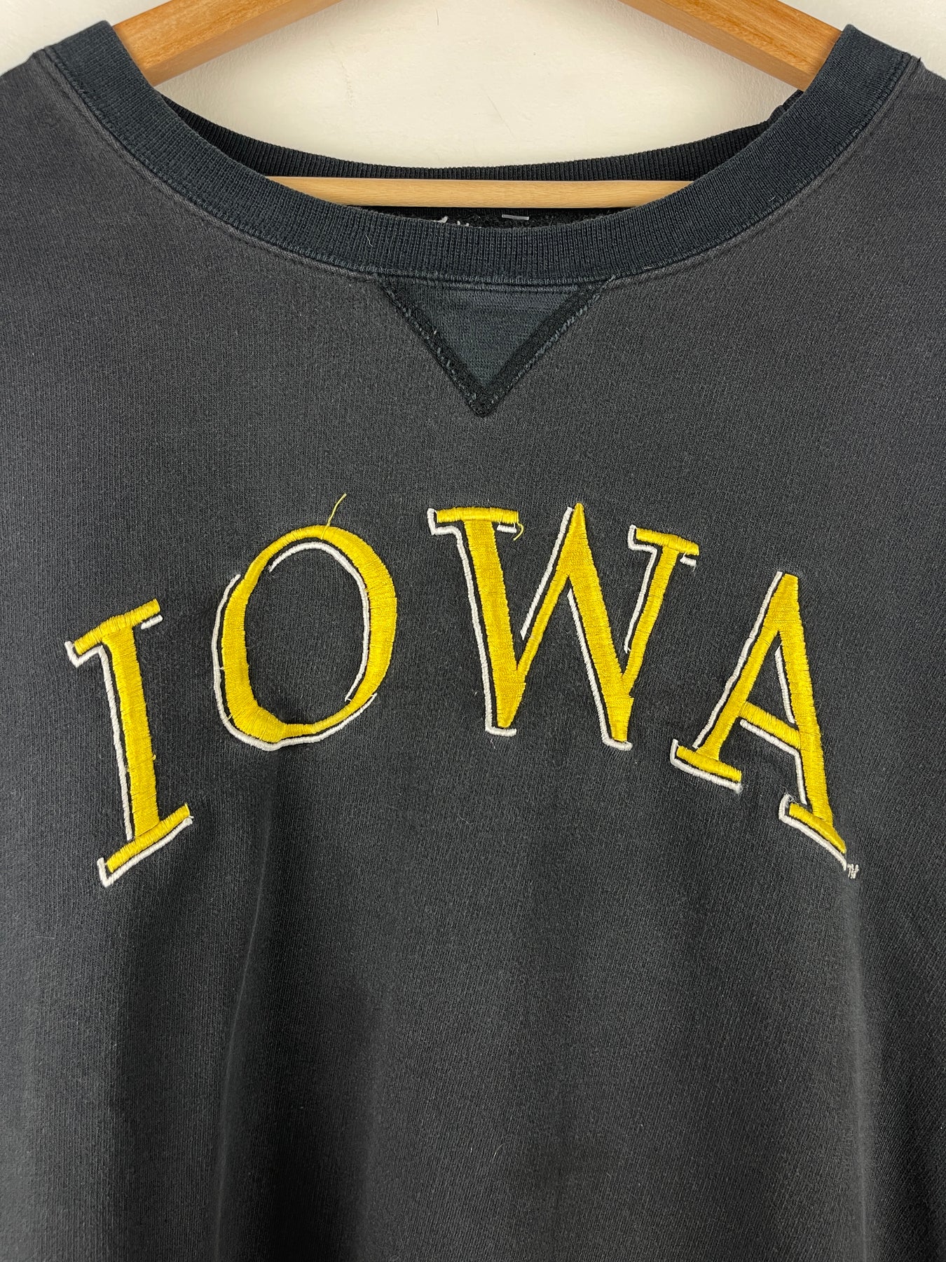 Vintage 90s Iowa Hawkeyes Embroidered Black Crewneck