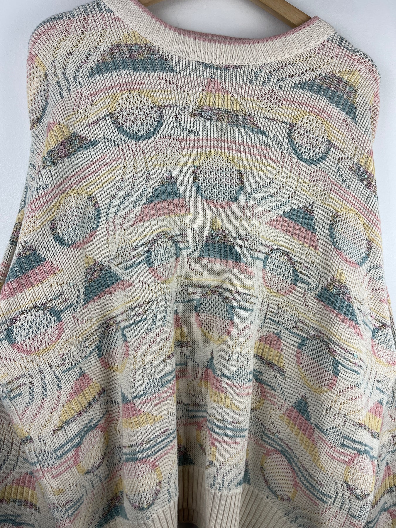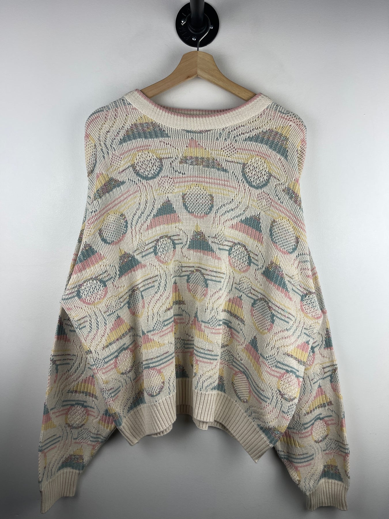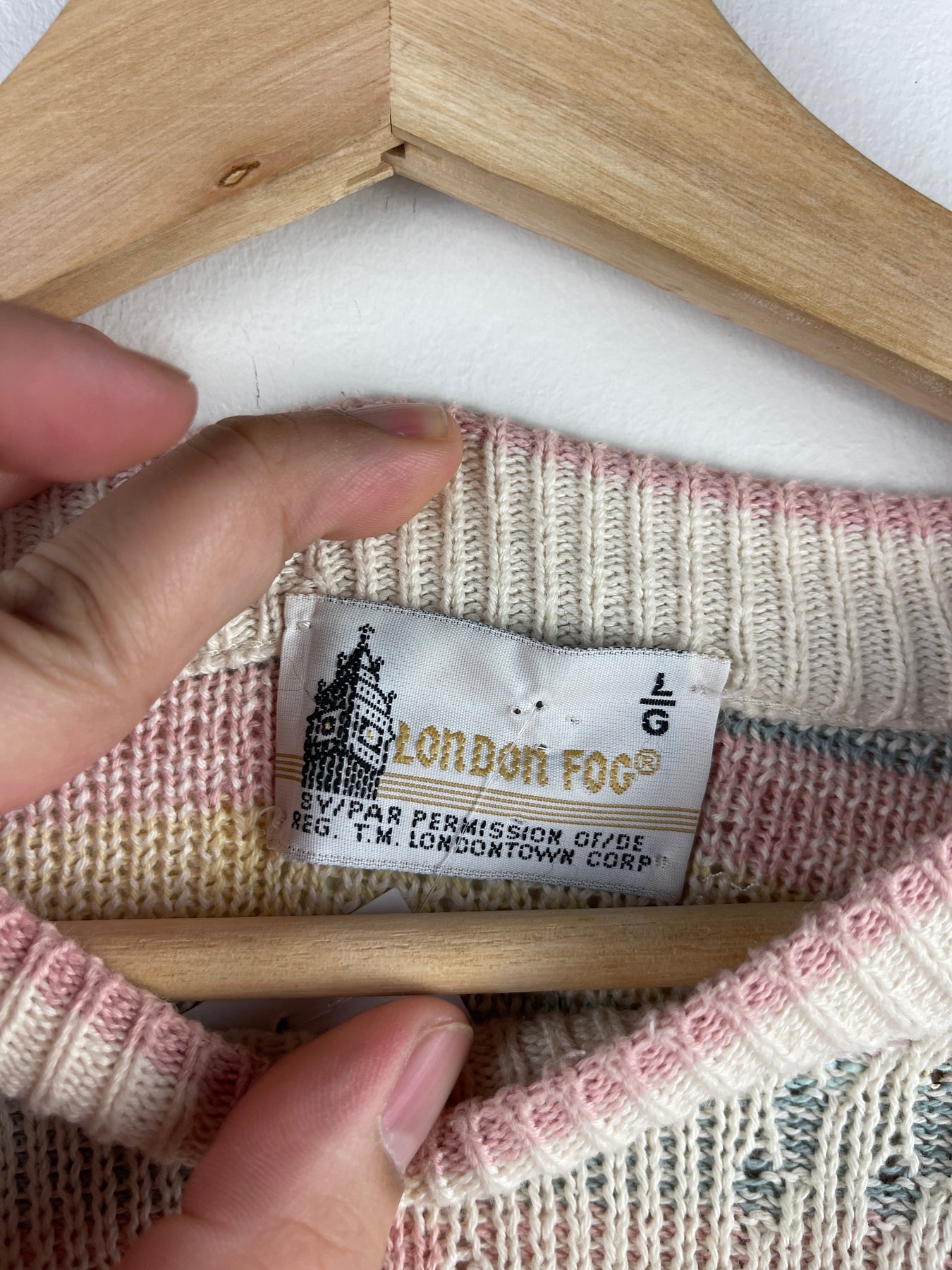 Vintage 90s London Fog Pattern Pastel Knit Crewneck