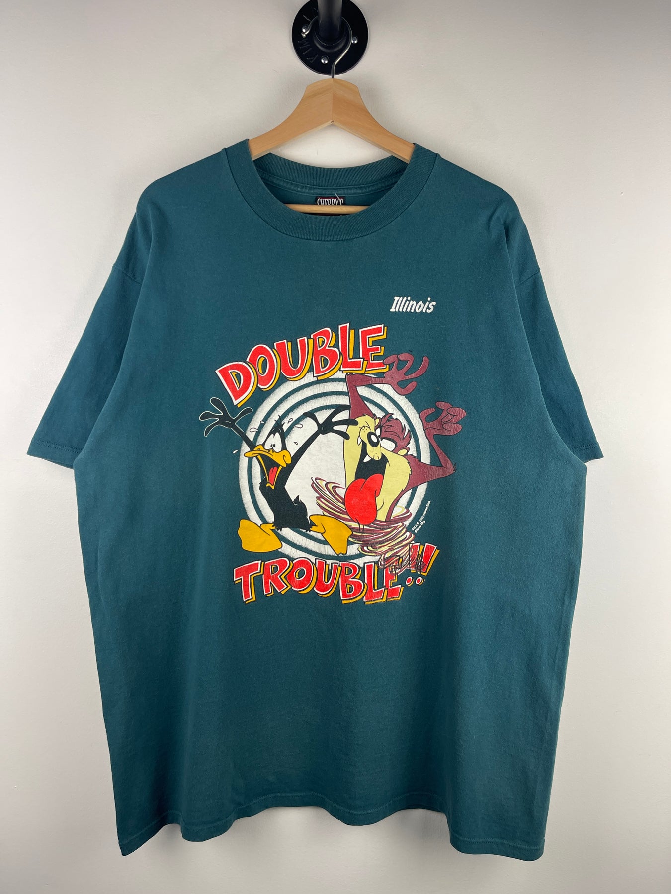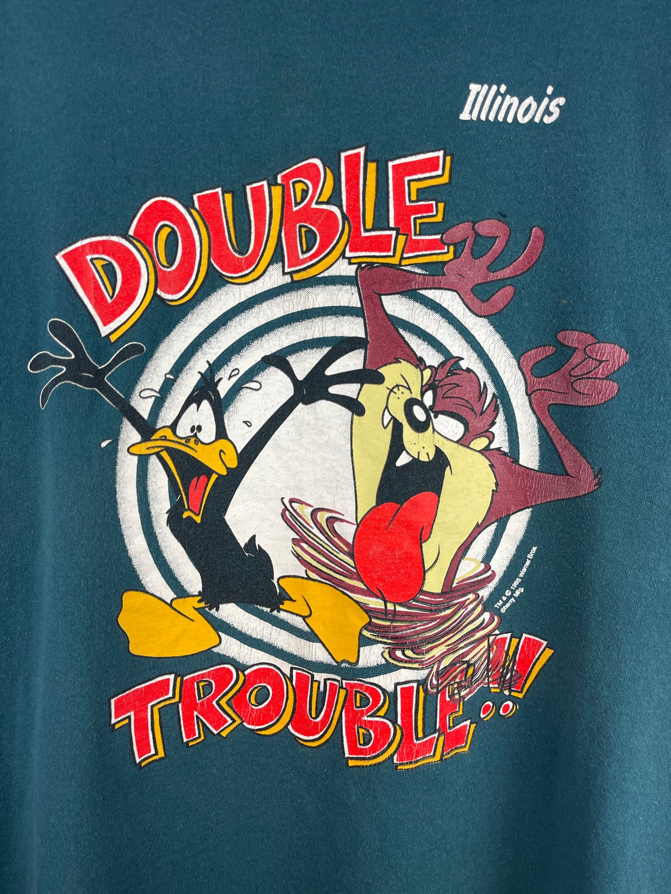 Vintage 90s Looney Tunes Double Trouble Taz & Daffy Duck Green Tee