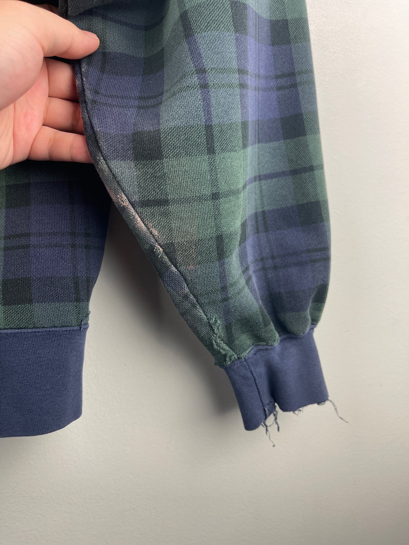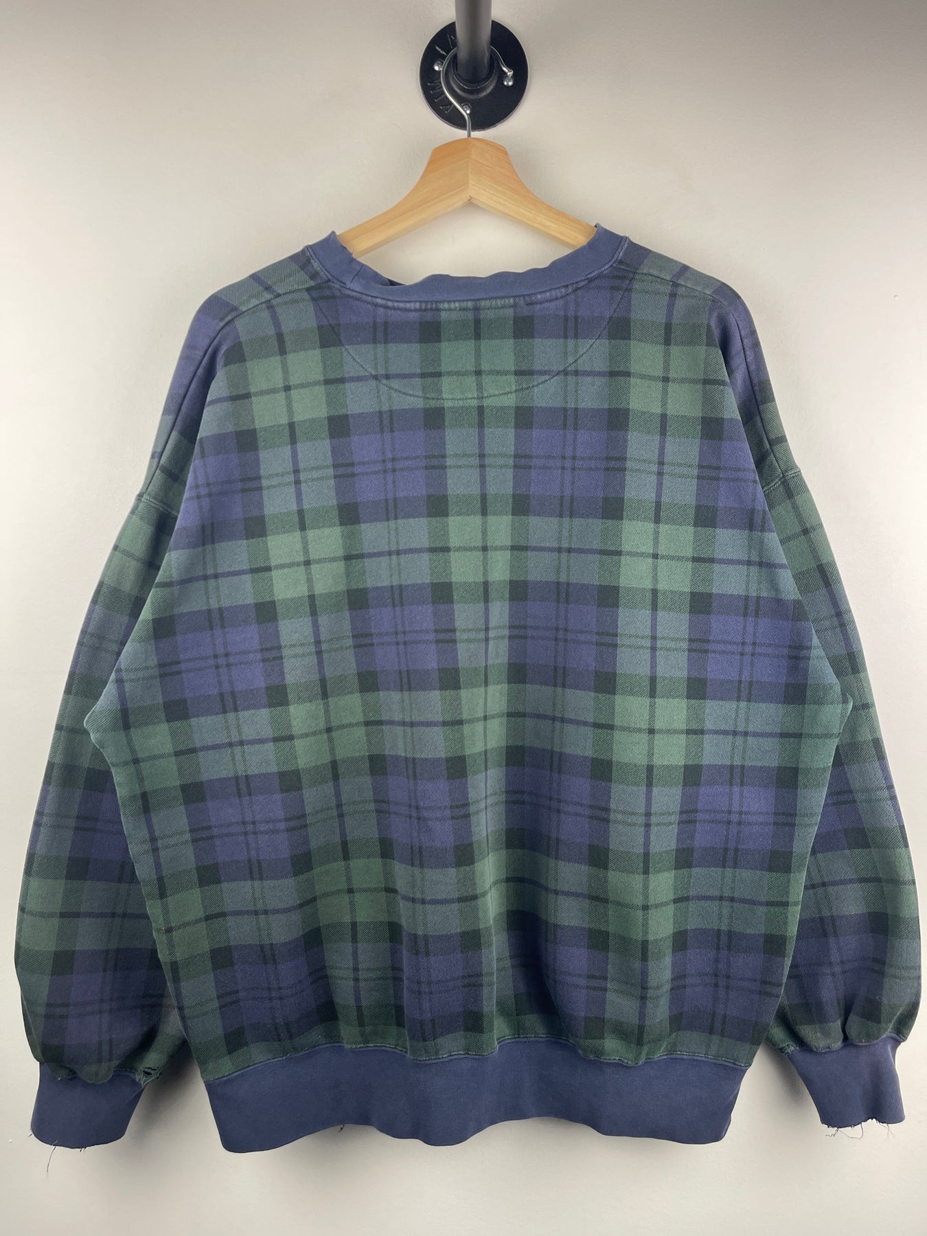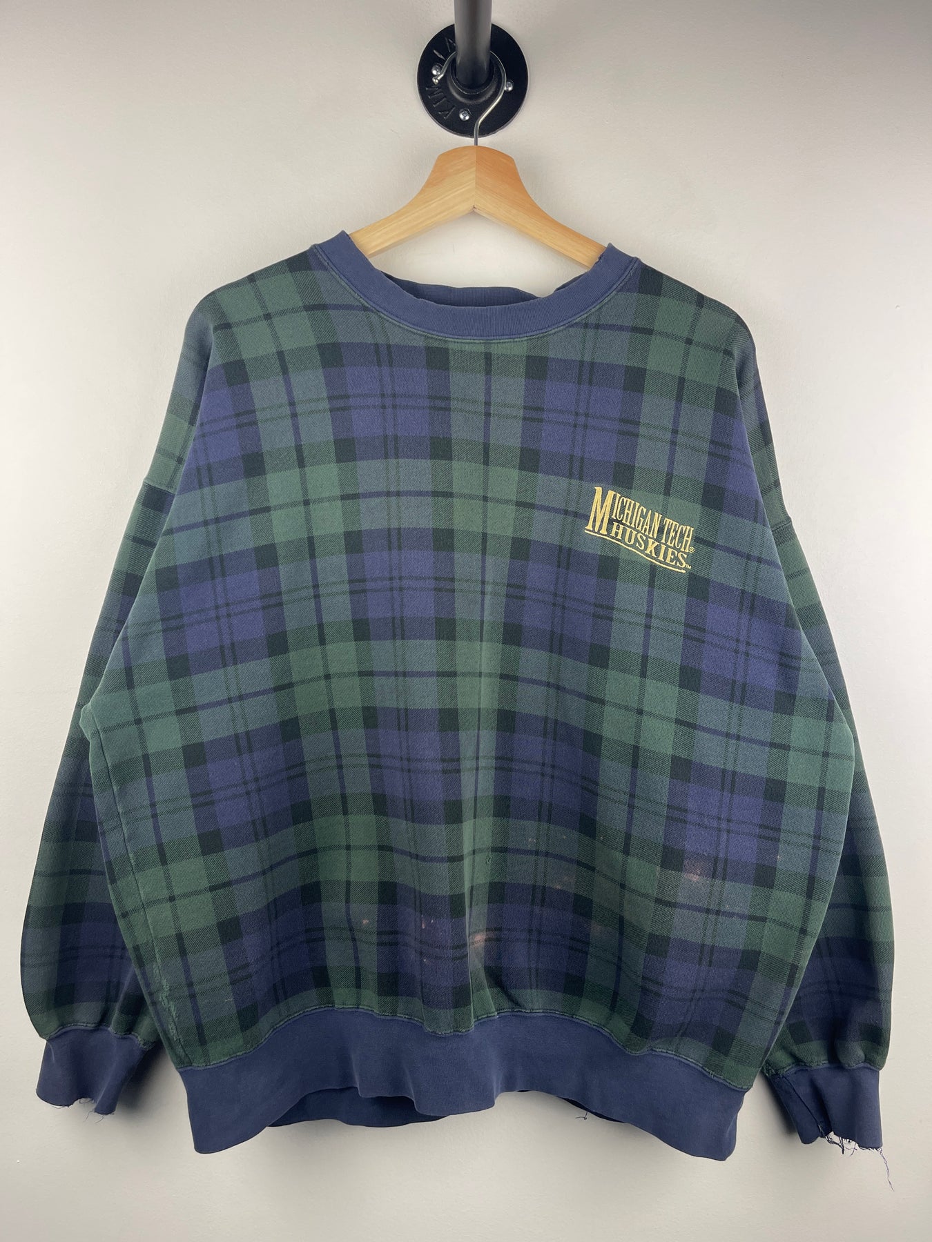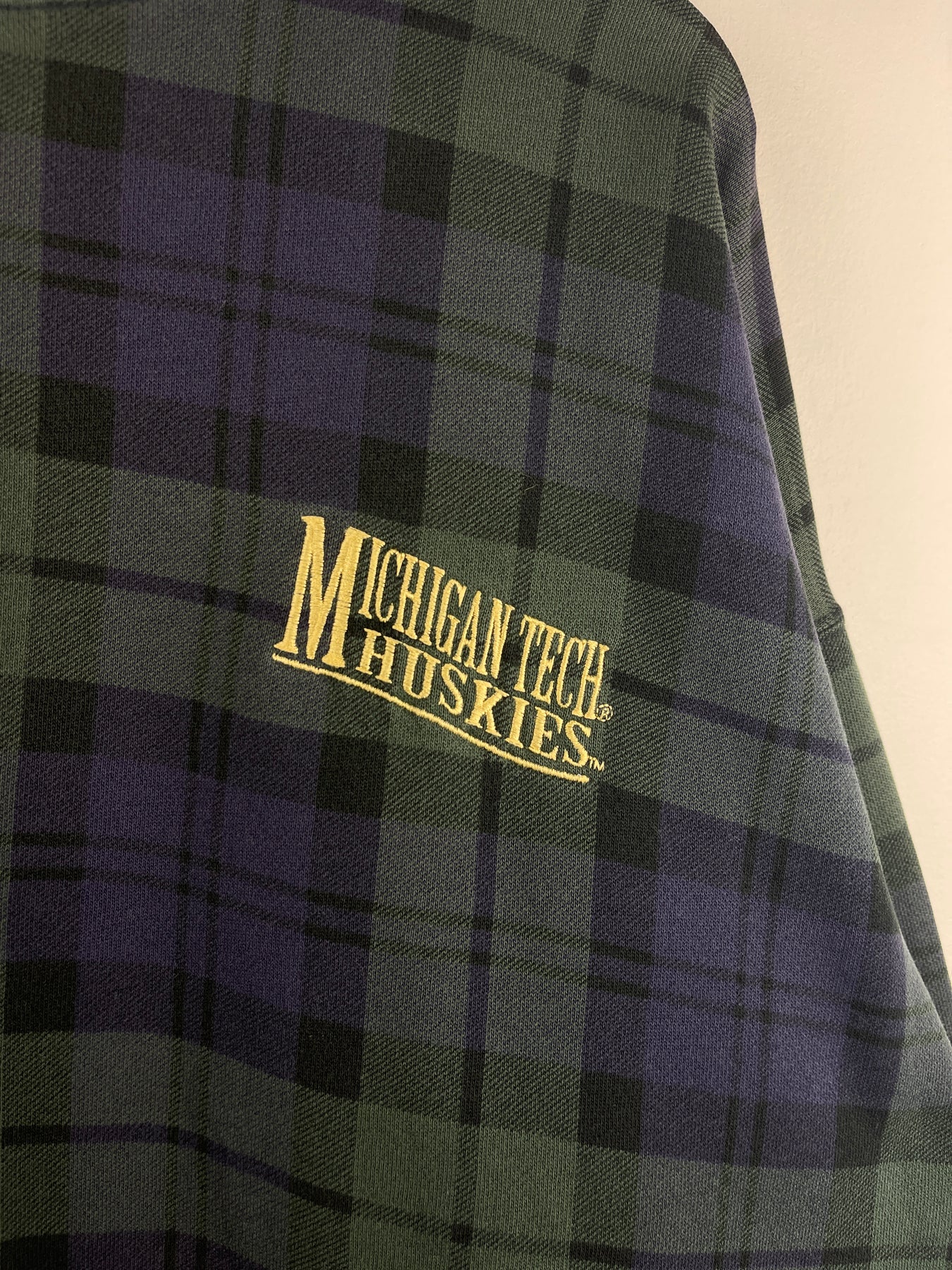 Vintage 90s Michigan Tech Huskies Plaid Navy & Green Crewneck