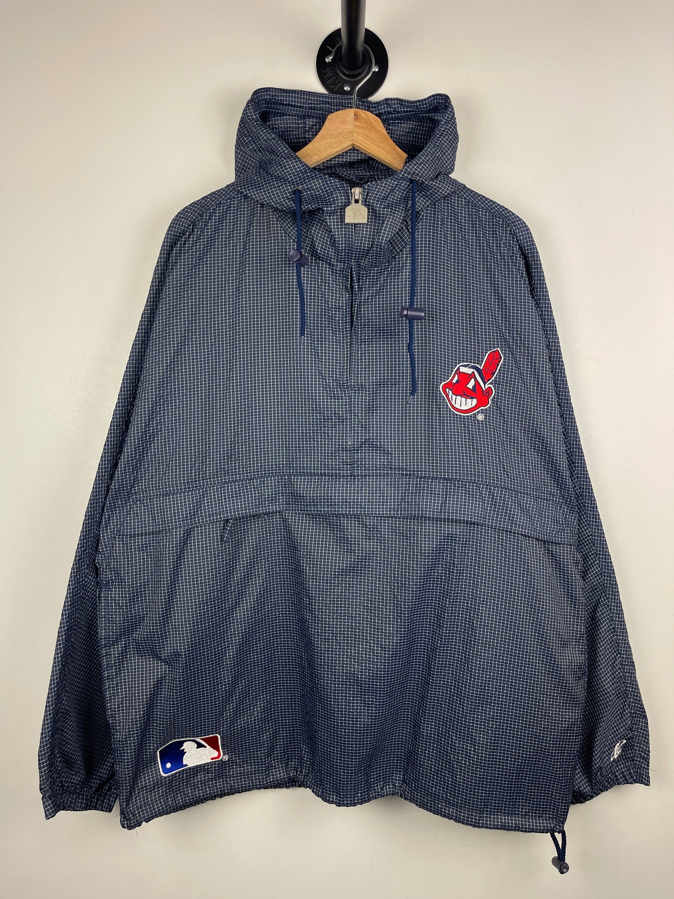 Vintage 90s MLB Logo Athletic Cleveland Indians Navy Quarter Zip Windbreaker