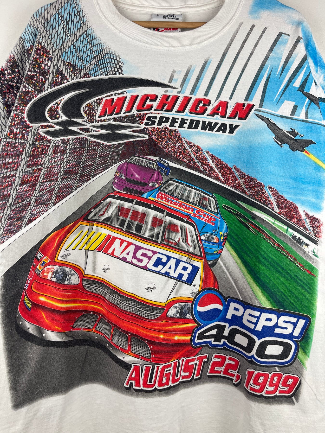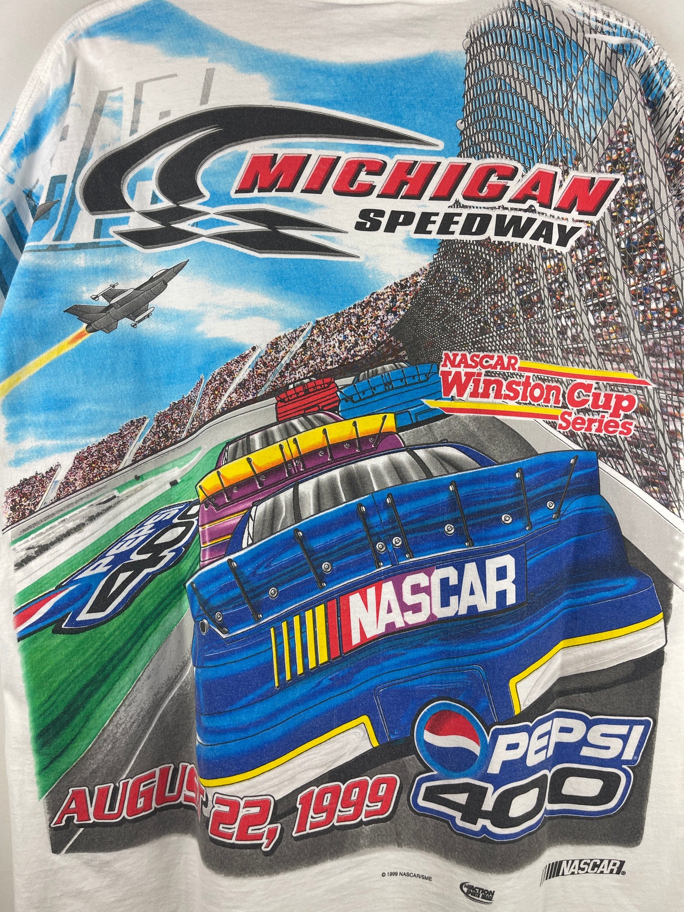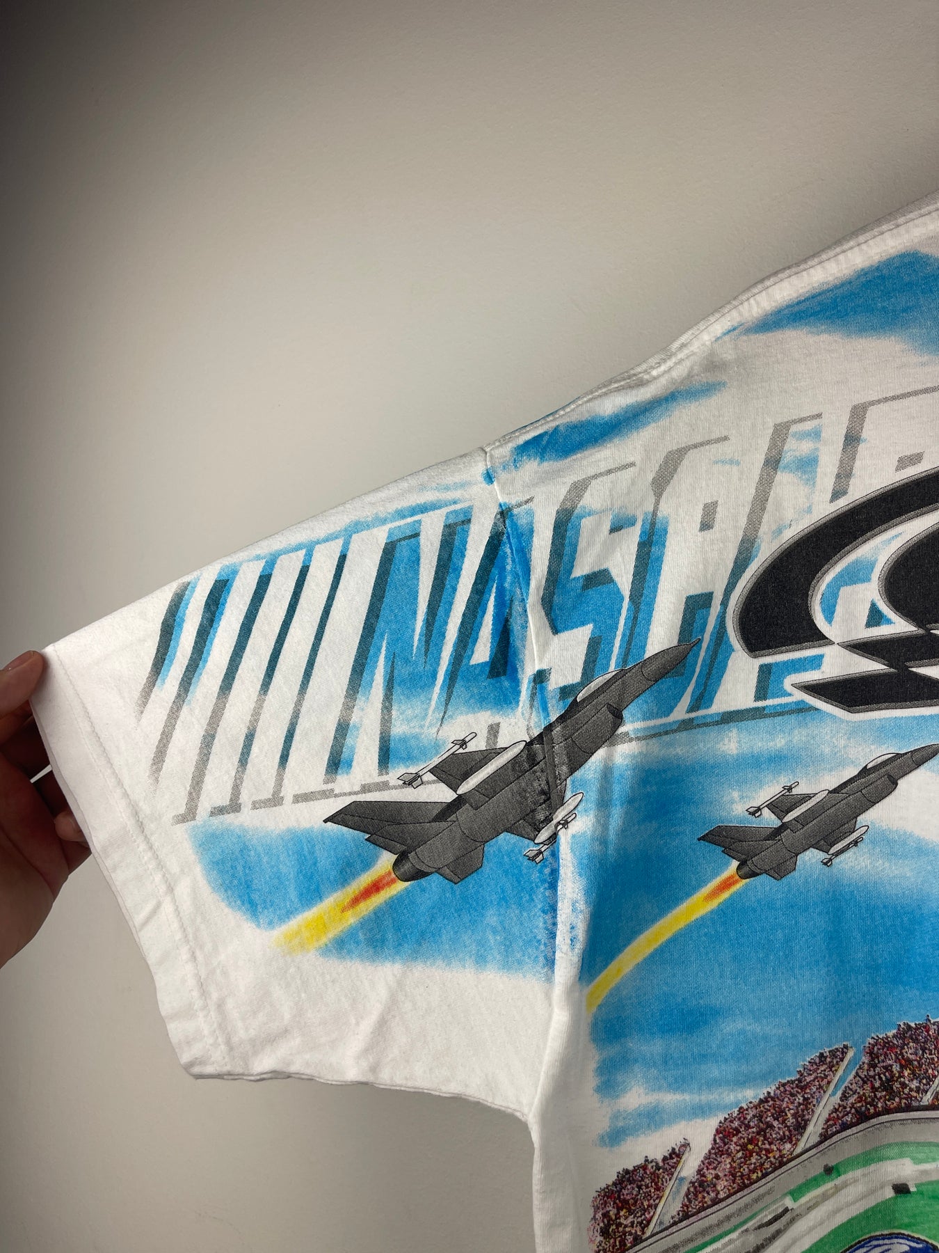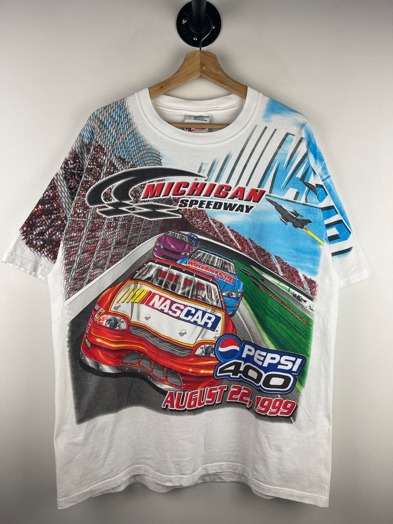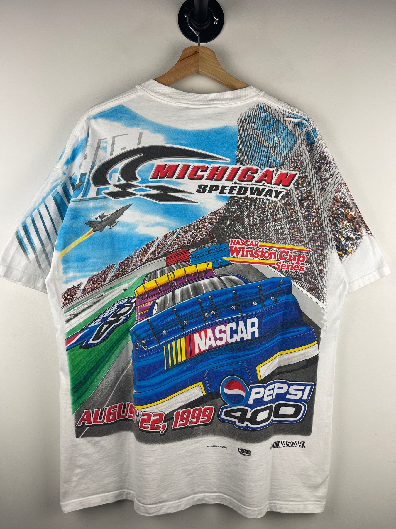 Vintage 90s Nascar Chase Pepsi 400 All Over Print White Tee