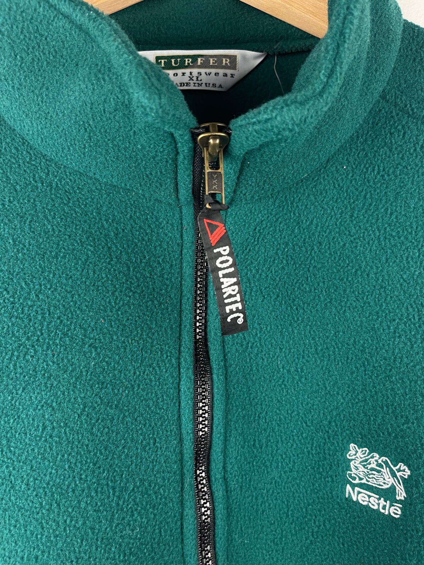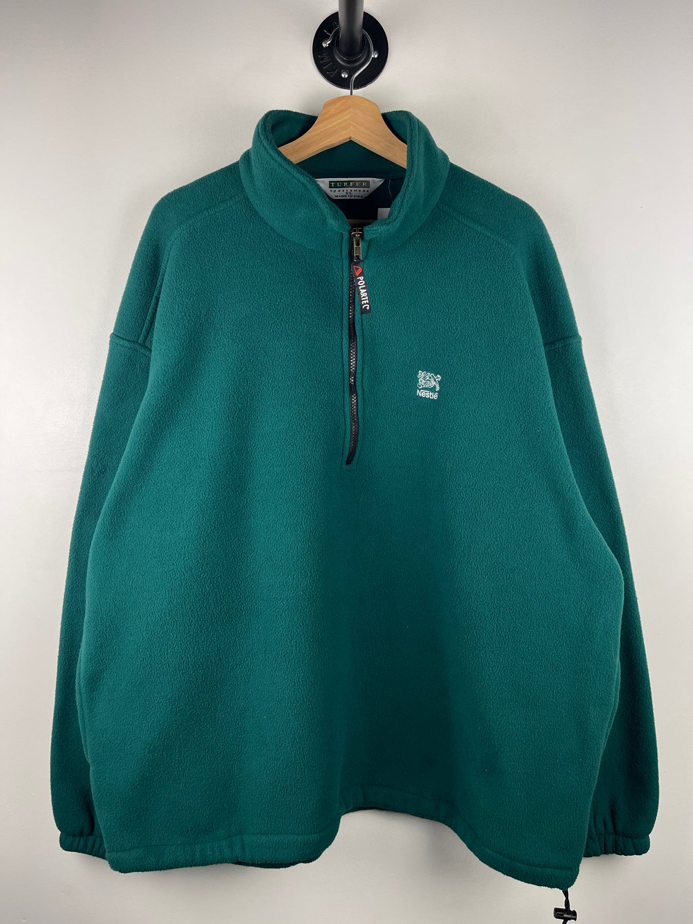 Vintage 90s Nestle Polartec Green Quarter Zip Fleece Sweater