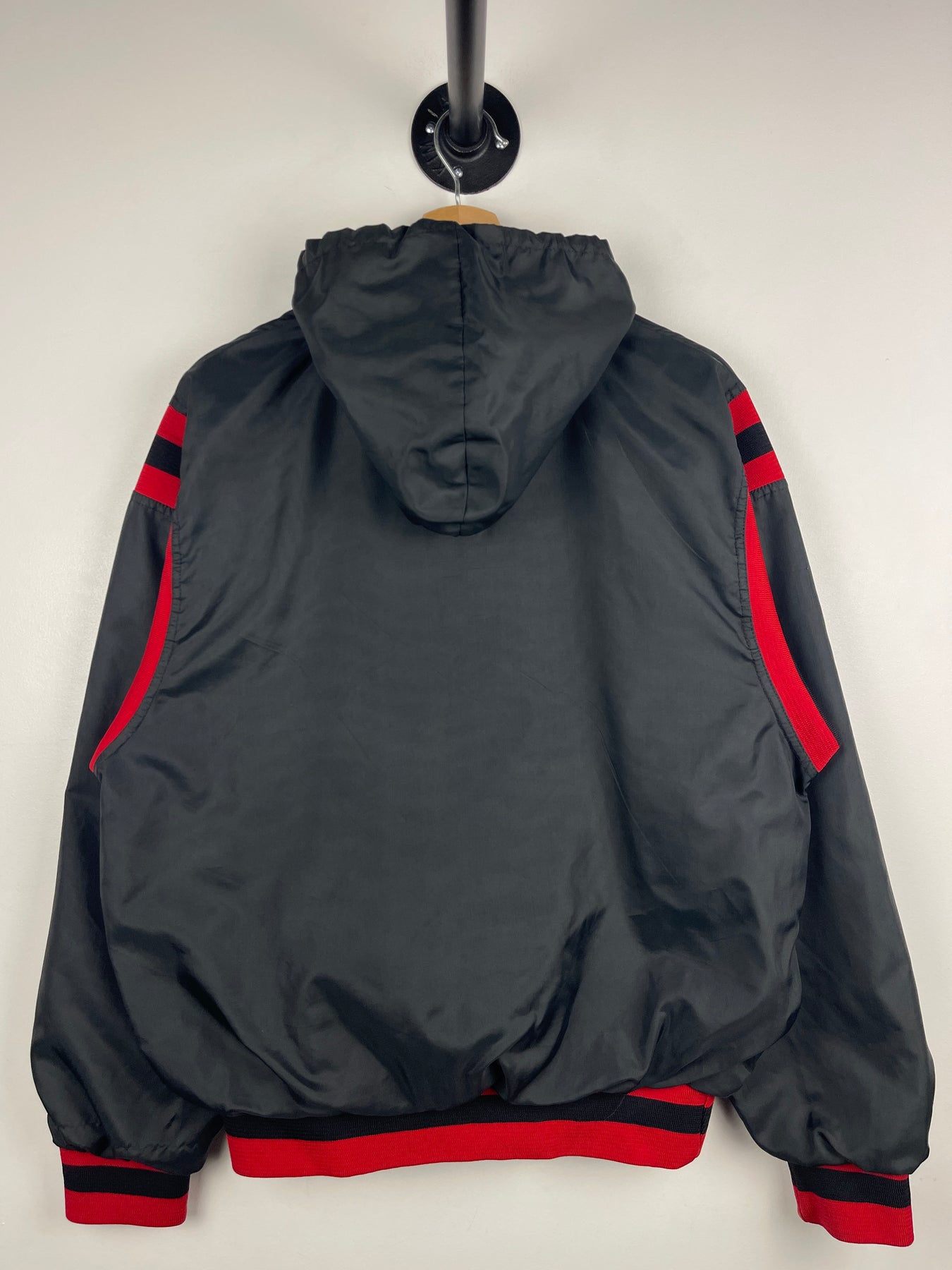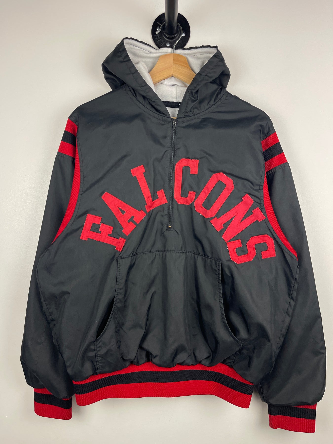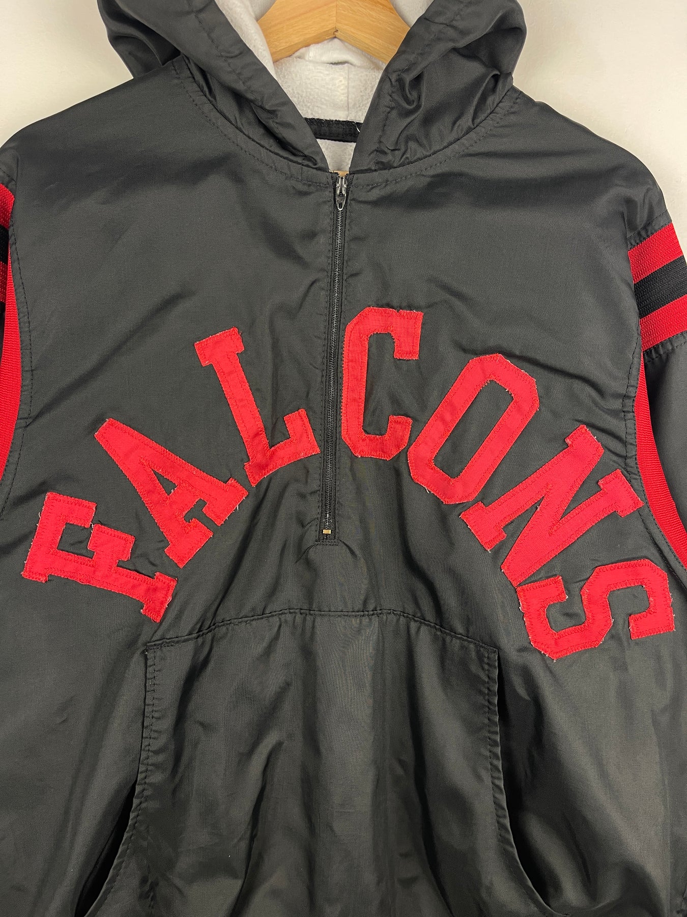 Vintage 90s NFL Betlin Atlanta Falcons Black & Red Half Zip Hooded Windbreaker