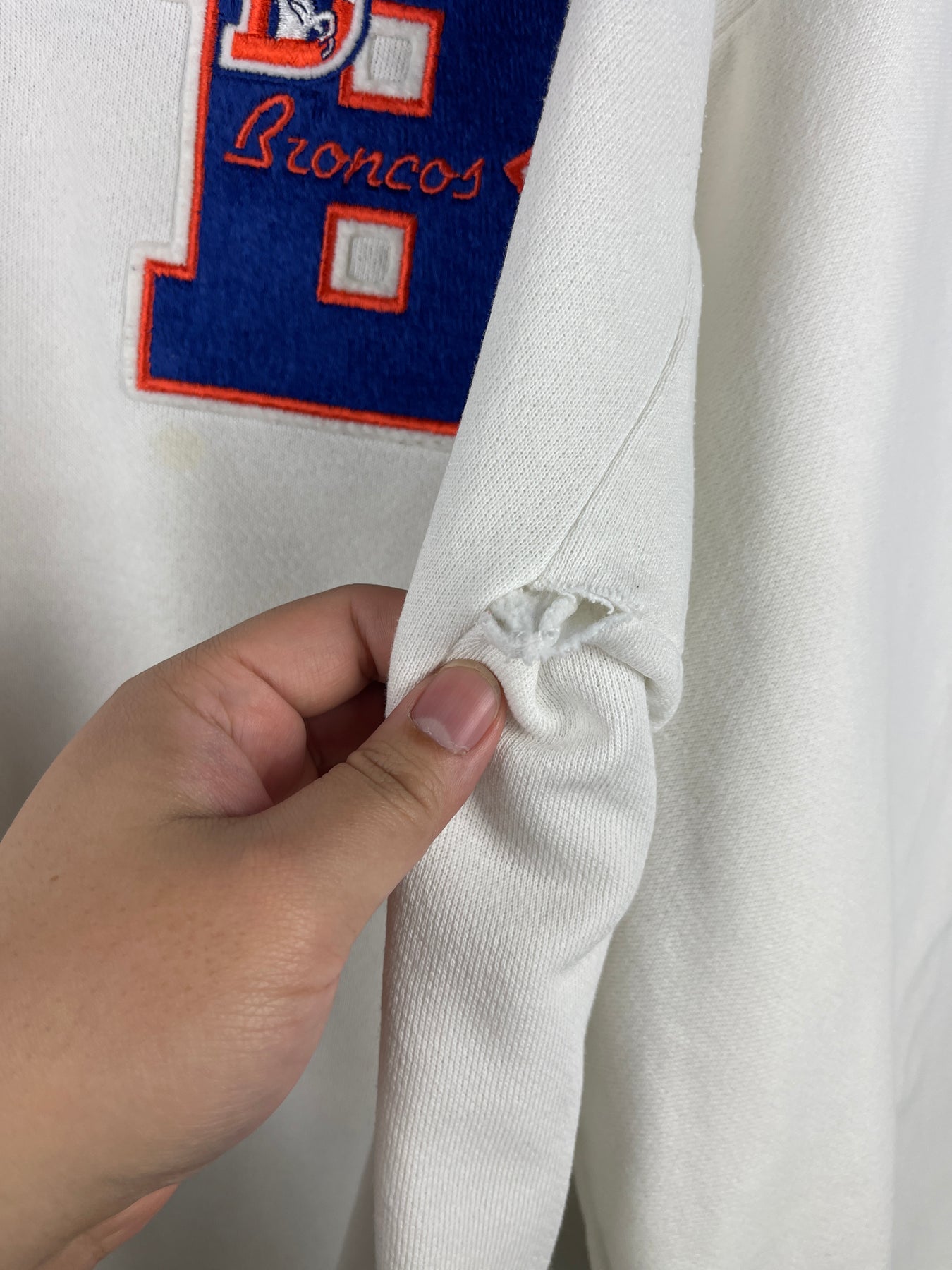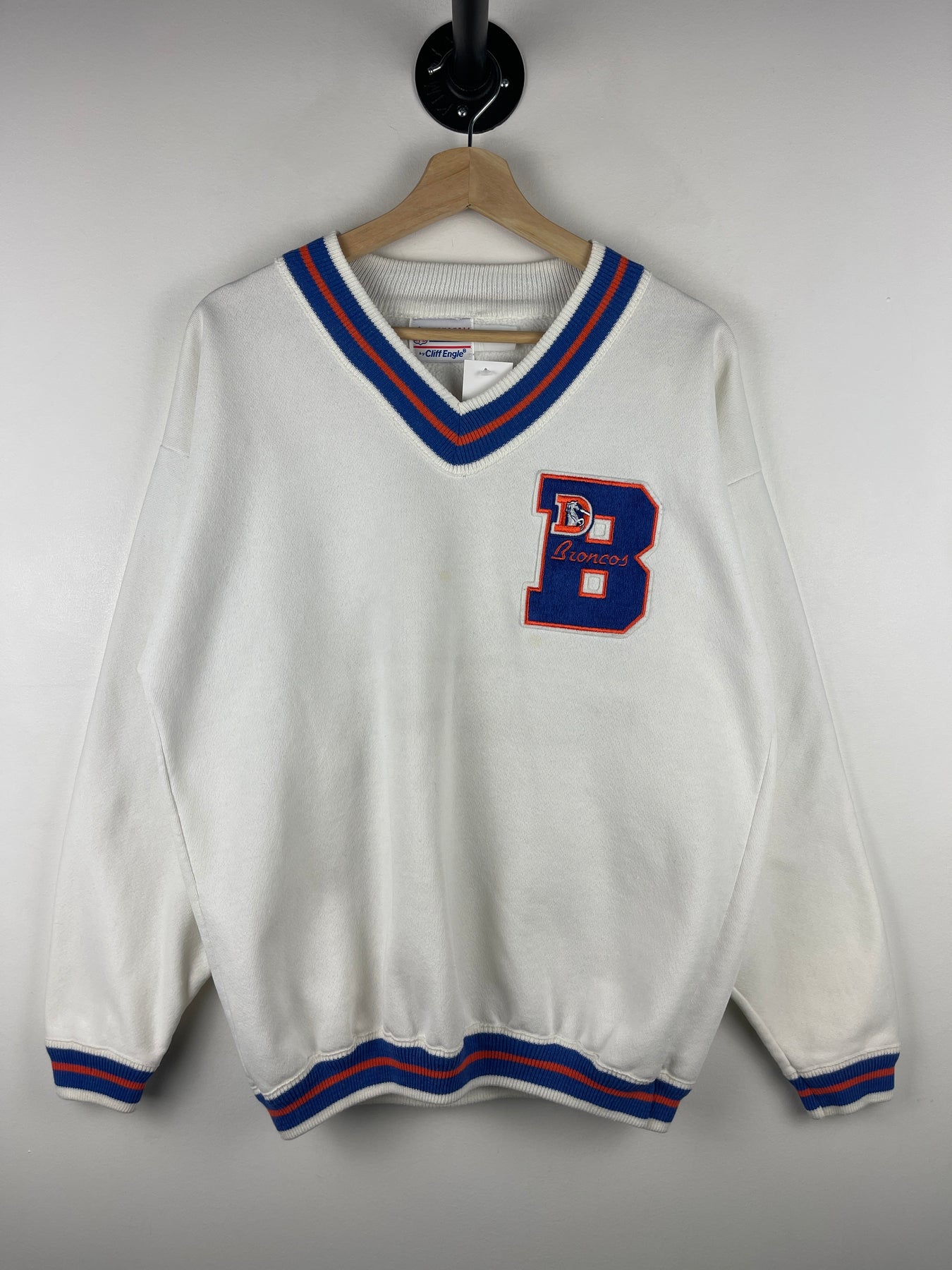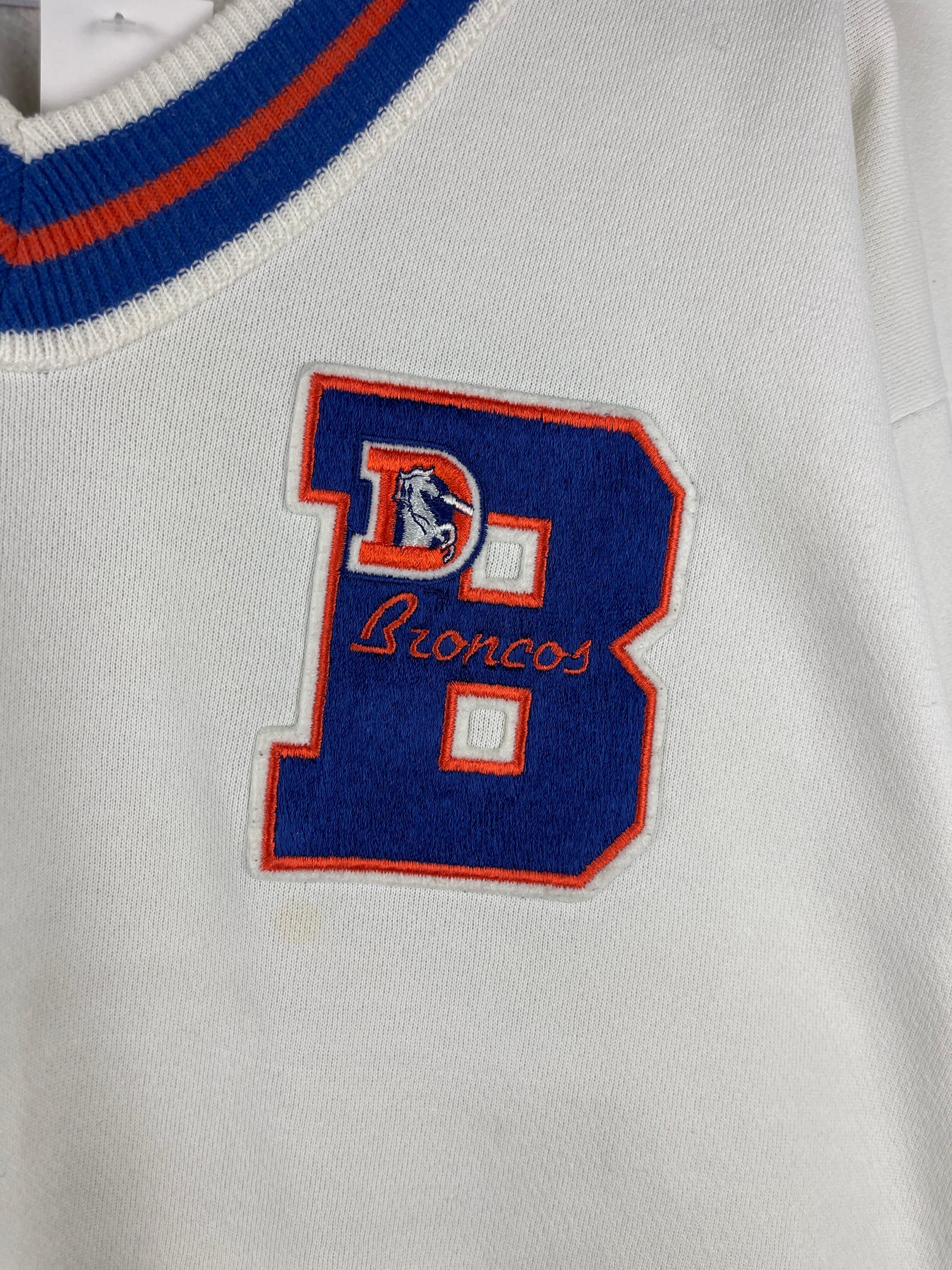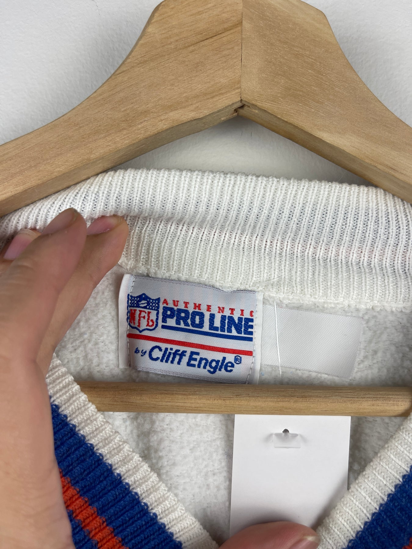 Vintage 90s NFL Cliff Engle Denver Broncos Embroidered White Crewneck