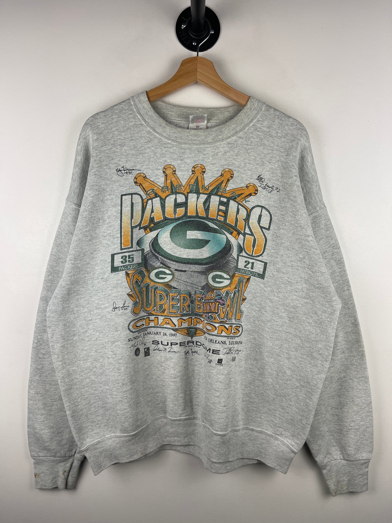 Vintage 90s NFL Green Bay Packers Superbowl Champions Grey Crewneck