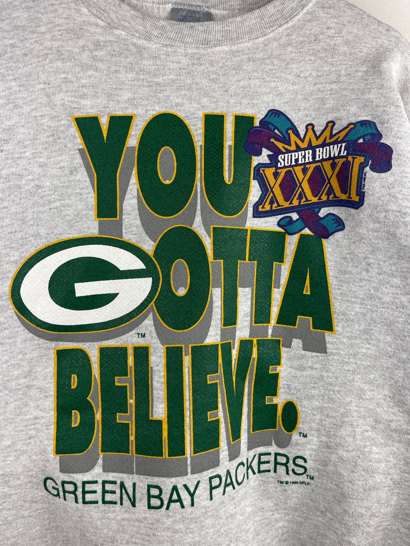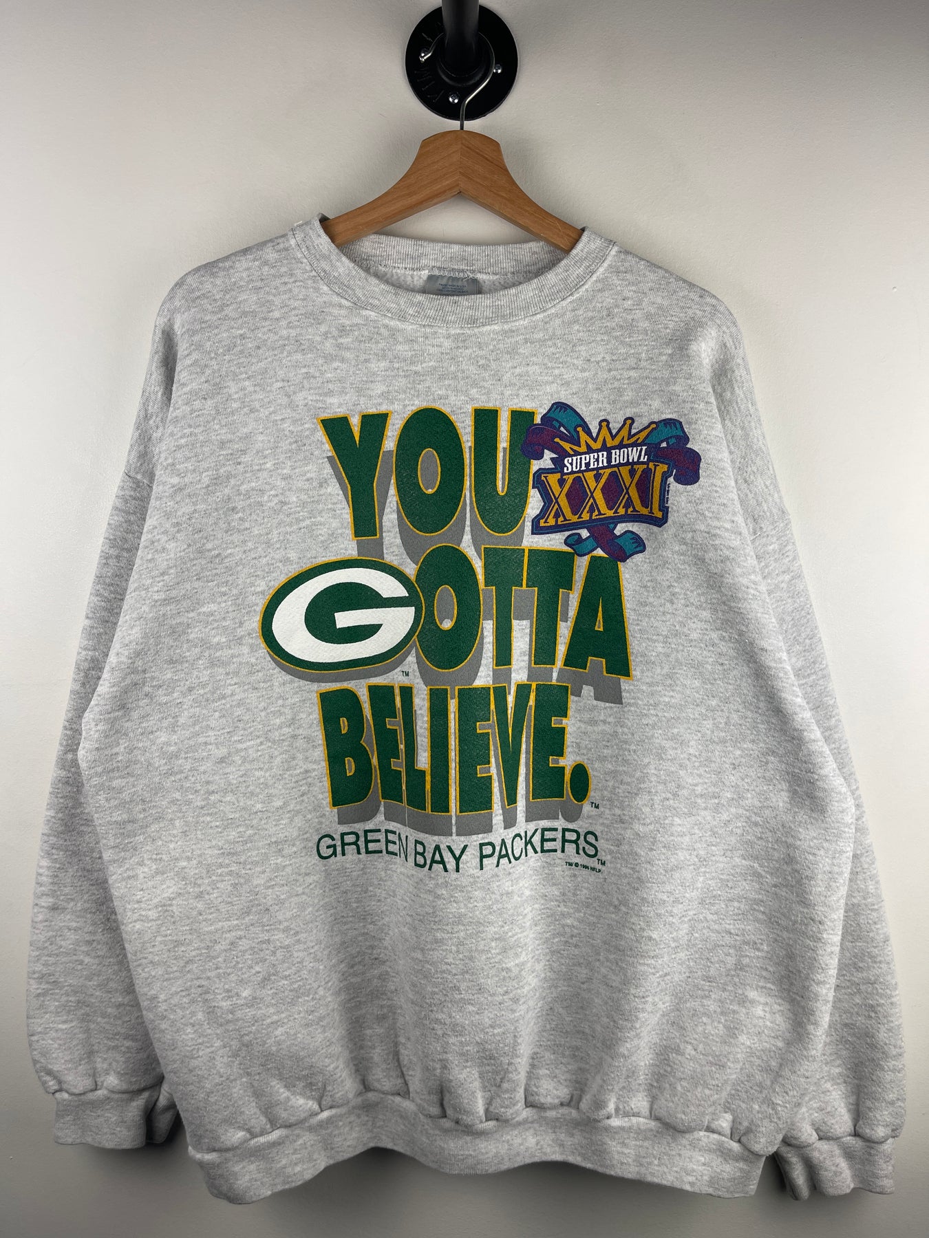 Vintage 90s NFL Logo 7 Green Bay Packers You Gotta Believe Grey Crewneck