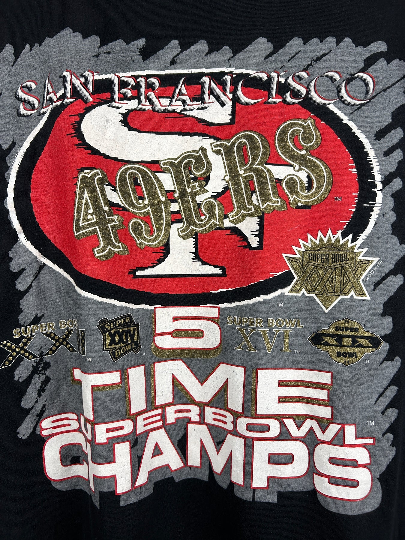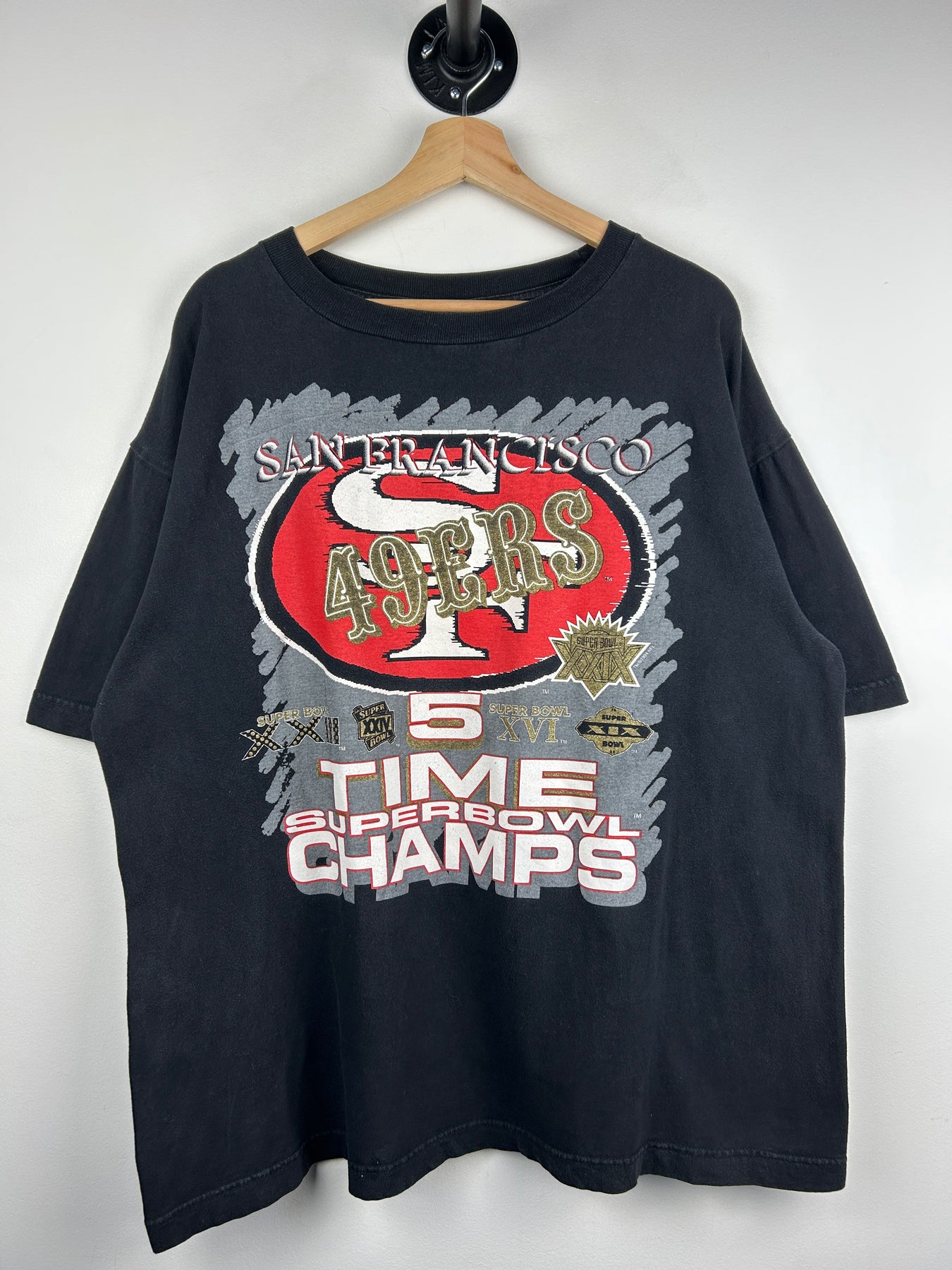 Vintage 90s NFL San Francisco 49ers 5 Time Superbowl Champions Black Tee