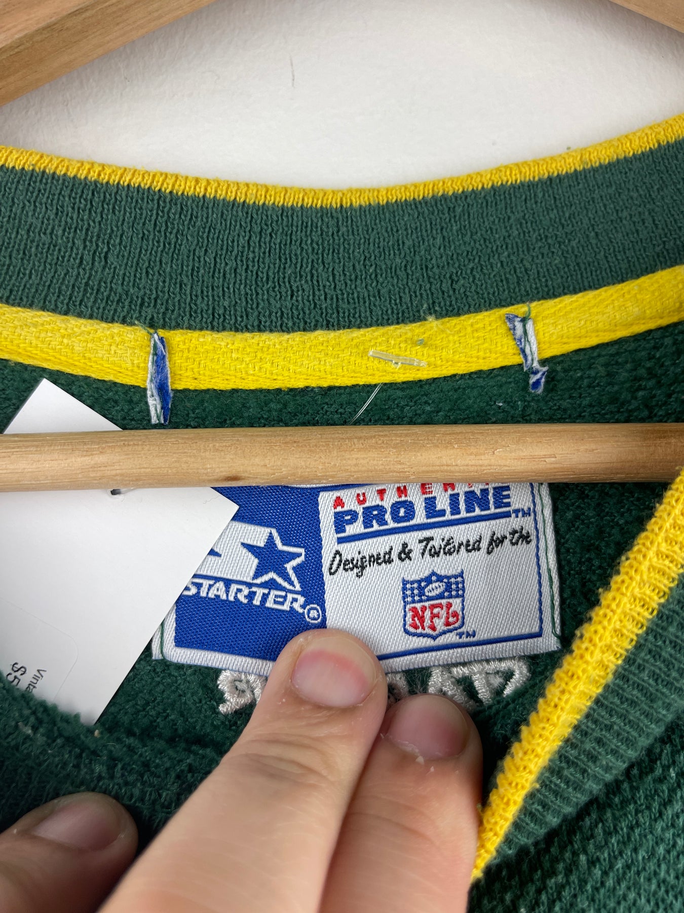 Vintage 90s NFL Starter Green Bay Packers Script Tail Sweep Embroidered Green Crewneck